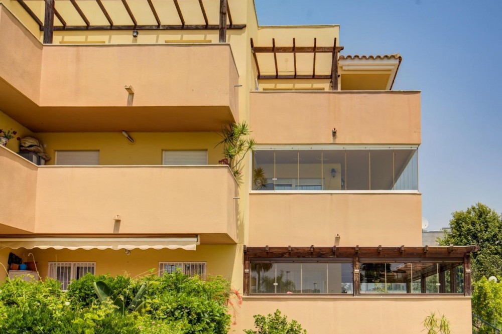 - Magnificent property for sale in Los Prados del Golf, La Cala de Mijas. We present this wonderful property for sale located in one of the most sought after areas of the Costa del Sol: La Cala de Mijas, in the exclusive urbanization Los Prados del Golf. A privileged enclave that combines tranquillity, comfort and proximity to all services. The property is distributed on one floor and has an excellent south-east orientation. Upon entering, we access a hall that leads to the separate kitchen, bright and functional, with an adjoining laundry room. Next, we find the master suite, equipped with built-in wardrobe, en-suite bathroom with bathtub and a cosy enclosed terrace with airtight double-glazed windows, currently converted into a spacious and elegant dressing room. Opposite the master bedroom, there is a second complete bathroom with shower, as well as the second bedroom, also with built-in wardrobe and another enclosed terrace with double glazing, ideal as a reading area, study or rest area. The spacious living-dining room is the heart of the property, a warm and cosy atmosphere that connects with a magnificent enclosed terrace with a sliding glass system, which allows it to be completely open to enjoy the Mediterranean climate all year round. The property has been partially refurbished, including the change of floors and the installation of high quality enclosures on the three terraces. The kitchen and bathrooms have been kept in their original state, but with impeccable care and maintenance. Among its extras, the property has centralised air conditioning, storage room, private parking space, communal swimming pool, large garden areas and paddle tennis court exclusively for residents. The development is located just a few minutes' walk from the beach and surrounded by all services: supermarkets, restaurants, schools, health centres and leisure areas. It also enjoys excellent road connections, just a few minutes from Fuengirola and Marbella. Ideal as a primary residence, second home or investment with high returns on long-term or holiday rentals. The community allows tourist rentals. Don't miss the opportunity to live in one of the most desirable corners of the Costa del Sol! In compliance with the Decree of the Junta de Andalucía 2182005 of the 11th of October 2005, we inform the client that the notary fees, registration fees, ITP (Property Transfer Tax) are not included in the price. The consumer has the right to receive a copy of the corresponding abbreviated information document of the property (“DIA”).