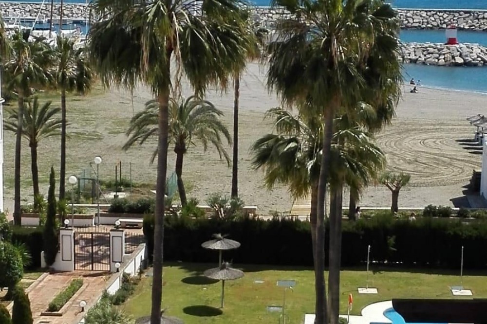 - Middle Floor Apartment, La Duquesa, Costa del Sol. 1 Bedroom, 1 Bathroom, Built 60 m², Terrace 10 m². Setting : Beachfront, Beachside, Close To Golf, Close To Port, Close To Shops, Close To Sea, Close To Town, Close To Schools, Close To Forest, Close To Marina, Urbanisation, Front Line Beach Complex. Orientation : North East. Condition : Good. Pool : Communal. Climate Control : Air Conditioning, Hot A/C, Cold A/C. Views : Sea, Panoramic, Garden, Pool. Features : Covered Terrace, Lift, Private Terrace, Storage Room, Utility Room, Ensuite Bathroom, Access for people with reduced mobility, Marble Flooring, Double Glazing, Fiber Optic. Furniture : Fully Furnished. Kitchen : Fully Fitted. Garden : Communal. Security : Gated Complex, Entry Phone, 24 Hour Security. Parking : Underground, Private. Utilities : Electricity, Drinkable Water, Telephone. Category : Beachfront, Distressed, Holiday Homes, Investment, Contemporary.