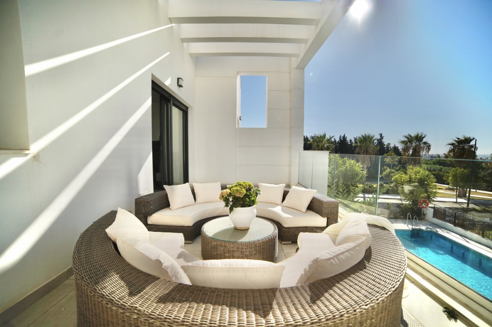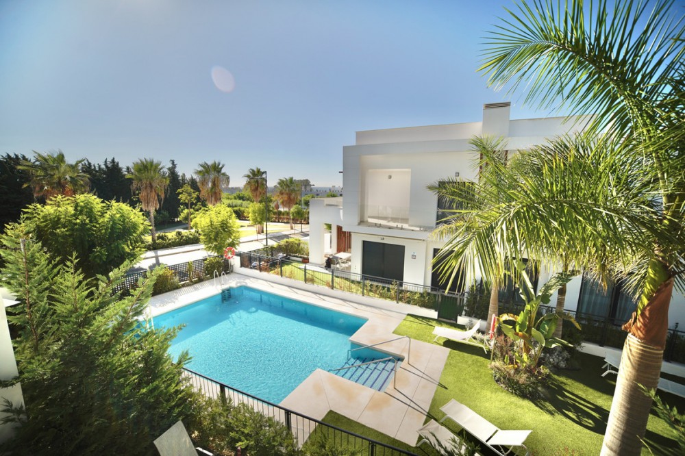 - This townhouse in Los Miradores del Sol, Bel-Air Estepona, is one of the very best units in the community, built in 2022 and presented in excellent condition with high-quality materials throughout. It offers a smart layout and generously sized bedrooms. The ground floor has an open plan kitchen and living area that flows naturally out to the south-facing terrace, ideal for everyday living and social gatherings. A guest bathroom is also located on this level. On the first floor you will find three spacious bedrooms. The master bedroom features an ensuite bathroom, a walk-in closet, and access to its own private terrace. The two additional bedrooms are generously sized, both with excellent storage, and they share a family bathroom. The highlight of the property is the large rooftop solarium – a private oasis with stunning sea views and sun all day long. With plenty of space for a dining area, lounge, and outdoor kitchen, it is the perfect place for relaxing, entertaining, and enjoying Marbella’s sunsets. The property also includes garage parking and storage rooms. The community of Los Miradores del Sol offers a swimming pool and landscaped gardens for residents. With close proximity to beaches, golf courses, restaurants, supermarkets, and shopping, this is an ideal home for those who want to combine modern living with the Mediterranean lifestyle.