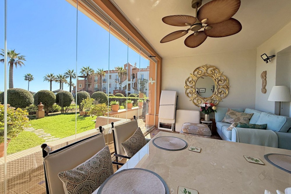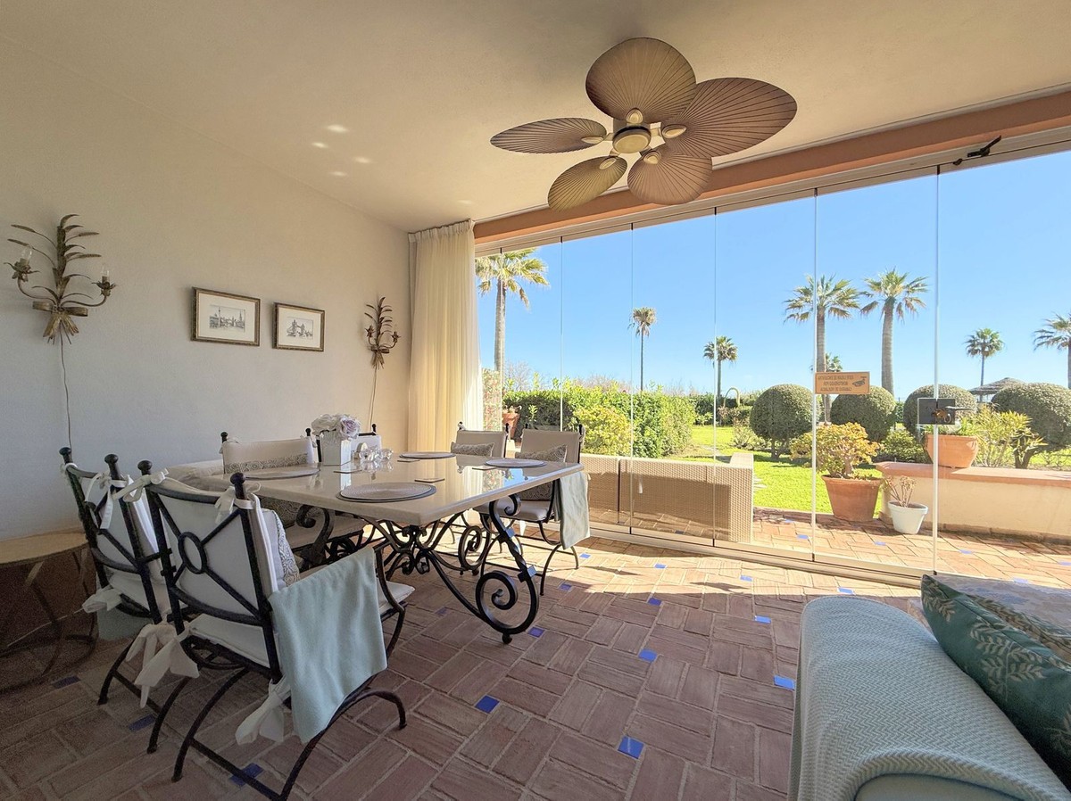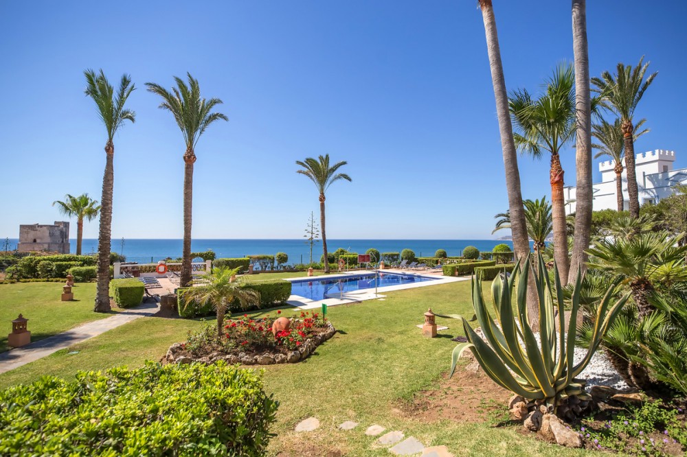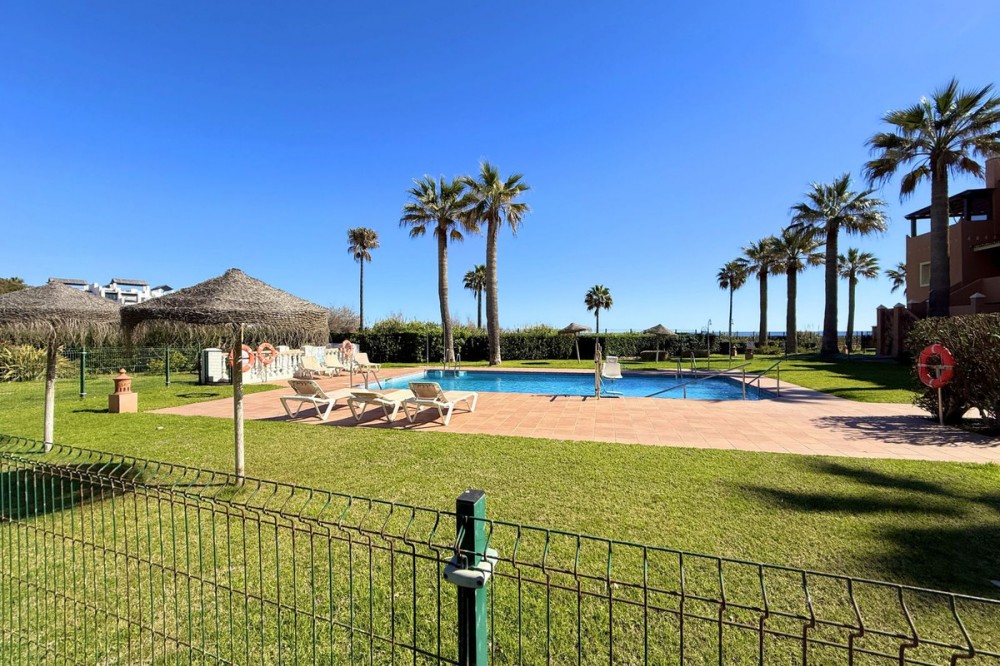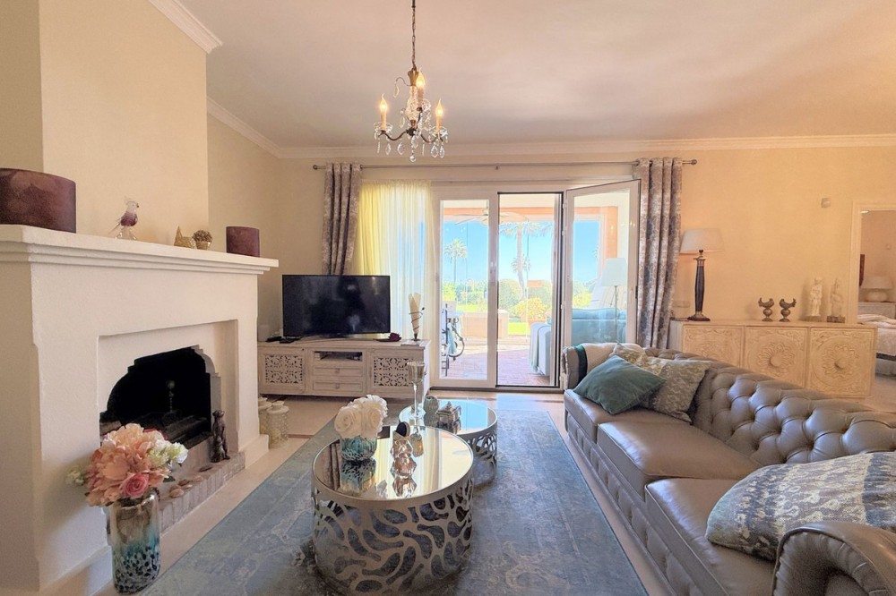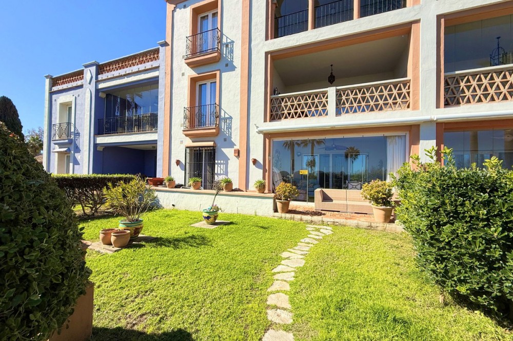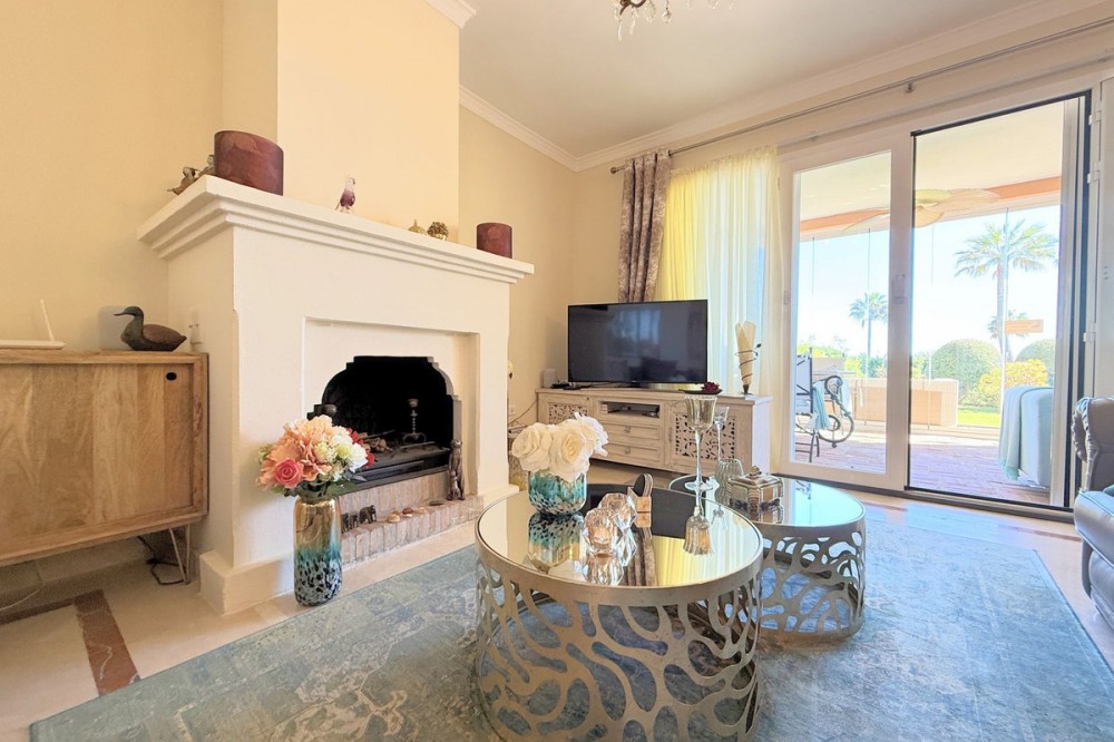 - Magnificent apartment in a luxury complex on the beachfront, with a terrace and private garden, located in Casares Playa, within a prestigious development featuring a charming Moorish design inspired by the essence of Al-Andalus. Enjoy direct access to the promenade and the stunning local beaches, with a wide selection of restaurants, beach bars, and leisure areas. Situated in a privileged location between Estepona and Puerto de la Duquesa, just a five-minute drive from both, it offers the perfect combination of exclusivity, comfort, and Mediterranean lifestyle. Its south-facing orientation ensures abundant natural light throughout the day, creating a warm and welcoming atmosphere in every room. Recently renovated, the property stands out for its careful decoration and excellent condition, ready to move in. The kitchen, updated in 2023, features Siemens appliances, ivory-colored marble floors, and all windows fitted with mosquito screens. The apartment is all on one level, with two spacious and bright bedrooms designed for maximum comfort and rest. A cozy living-dining area with a fireplace opens onto the enclosed glass terrace overlooking the garden, the communal pool, and the beach. The development offers 24-hour security, ensuring peace of mind and privacy, as well as exclusive amenities such as two magnificent pools, one of them heated, allowing year-round enjoyment. The property also includes 2 underground parking spaces and 2 storage rooms, providing convenience and extra storage. Its strategic location makes it ideal as a permanent residence or an investment, with high potential for both holiday and long-term rentals. Close to prestigious golf courses, such as Finca Cortesín, as well as marinas, restaurants, and all necessary services, this property represents a unique opportunity. If you are looking for an exclusive apartment on the beachfront, with all the comforts in one of the most sought-after areas of the coast, don’t miss this opportunity.