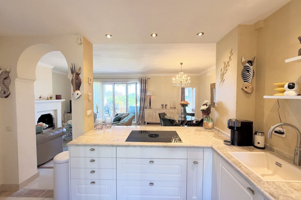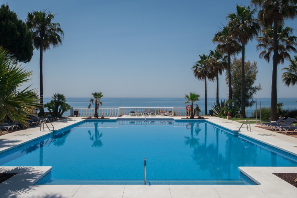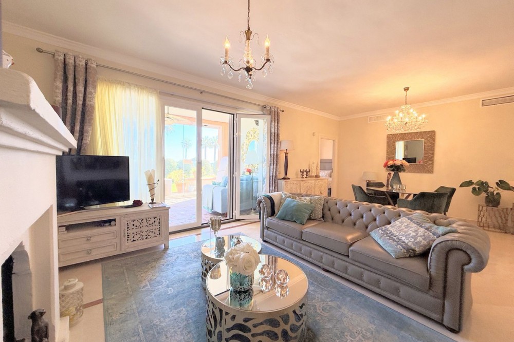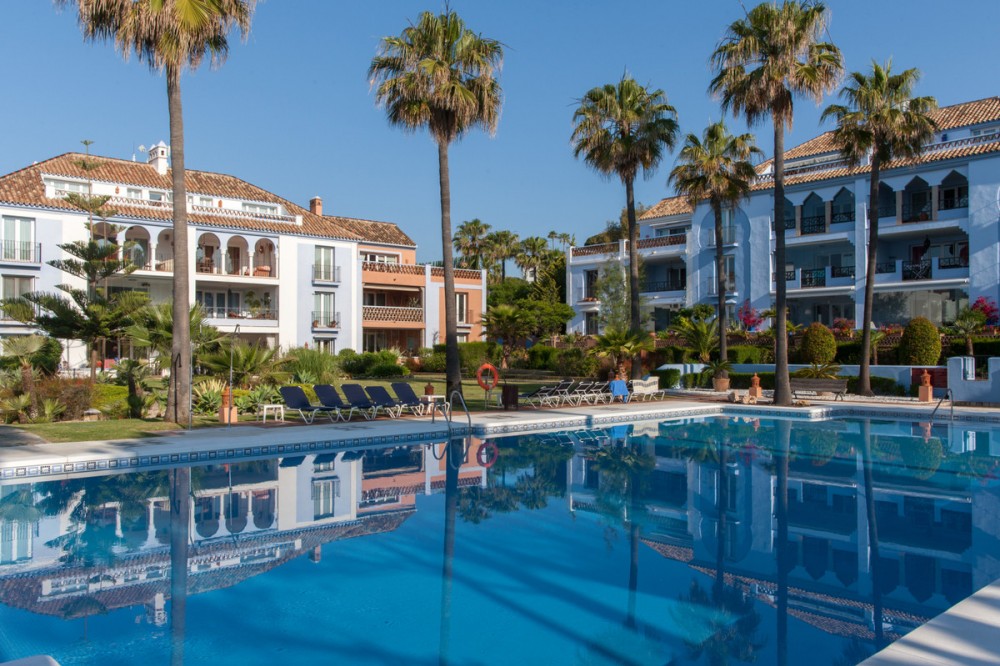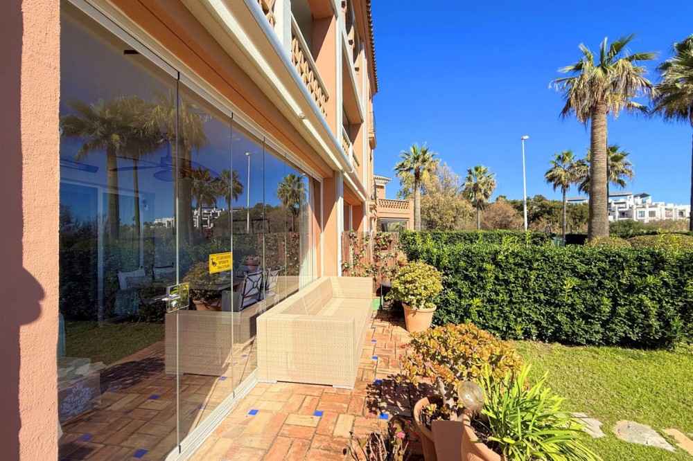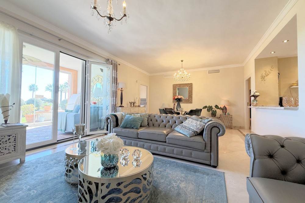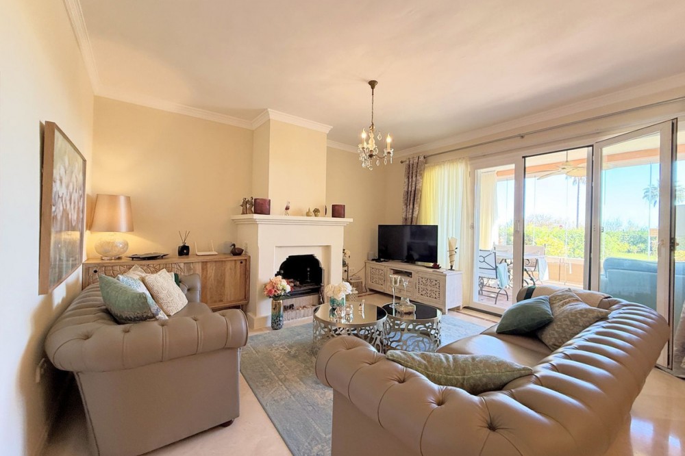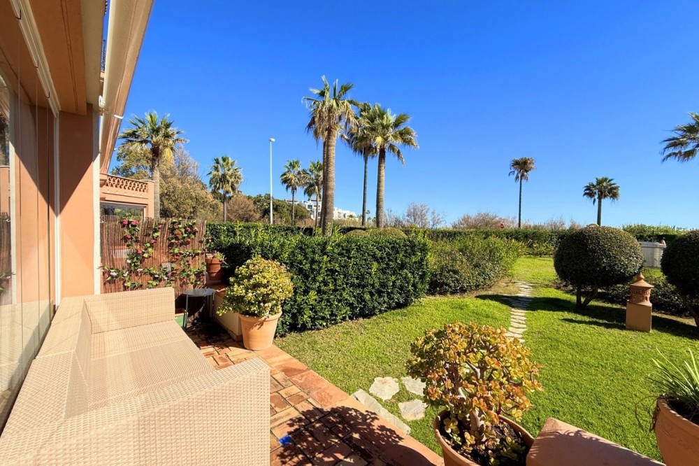 - Magnificent apartment in a luxury complex on the beachfront, with a terrace and private garden, located in Casares Playa, within a prestigious development featuring a charming Moorish design inspired by the essence of Al-Andalus. Enjoy direct access to the promenade and the stunning local beaches, with a wide selection of restaurants, beach bars, and leisure areas. Situated in a privileged location between Estepona and Puerto de la Duquesa, just a five-minute drive from both, it offers the perfect combination of exclusivity, comfort, and Mediterranean lifestyle. Its south-facing orientation ensures abundant natural light throughout the day, creating a warm and welcoming atmosphere in every room. Recently renovated, the property stands out for its careful decoration and excellent condition, ready to move in. The kitchen, updated in 2023, features Siemens appliances, ivory-colored marble floors, and all windows fitted with mosquito screens. The apartment is all on one level, with two spacious and bright bedrooms designed for maximum comfort and rest. A cozy living-dining area with a fireplace opens onto the enclosed glass terrace overlooking the garden, the communal pool, and the beach. The development offers 24-hour security, ensuring peace of mind and privacy, as well as exclusive amenities such as two magnificent pools, one of them heated, allowing year-round enjoyment. The property also includes 2 underground parking spaces and 2 storage rooms, providing convenience and extra storage. Its strategic location makes it ideal as a permanent residence or an investment, with high potential for both holiday and long-term rentals. Close to prestigious golf courses, such as Finca Cortesín, as well as marinas, restaurants, and all necessary services, this property represents a unique opportunity. If you are looking for an exclusive apartment on the beachfront, with all the comforts in one of the most sought-after areas of the coast, don’t miss this opportunity.