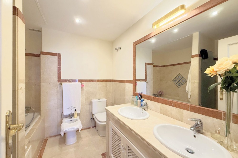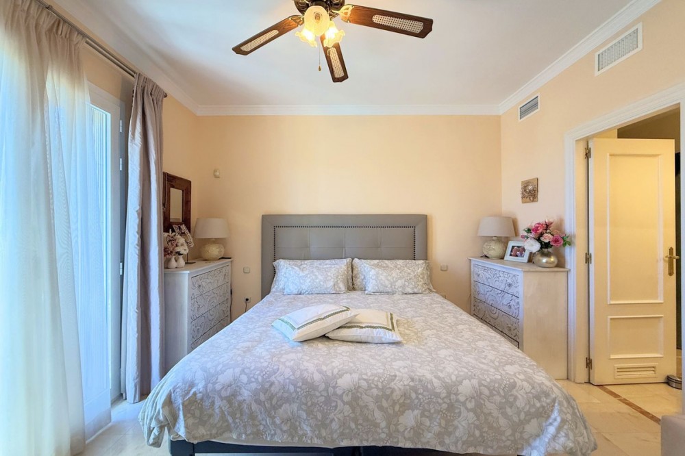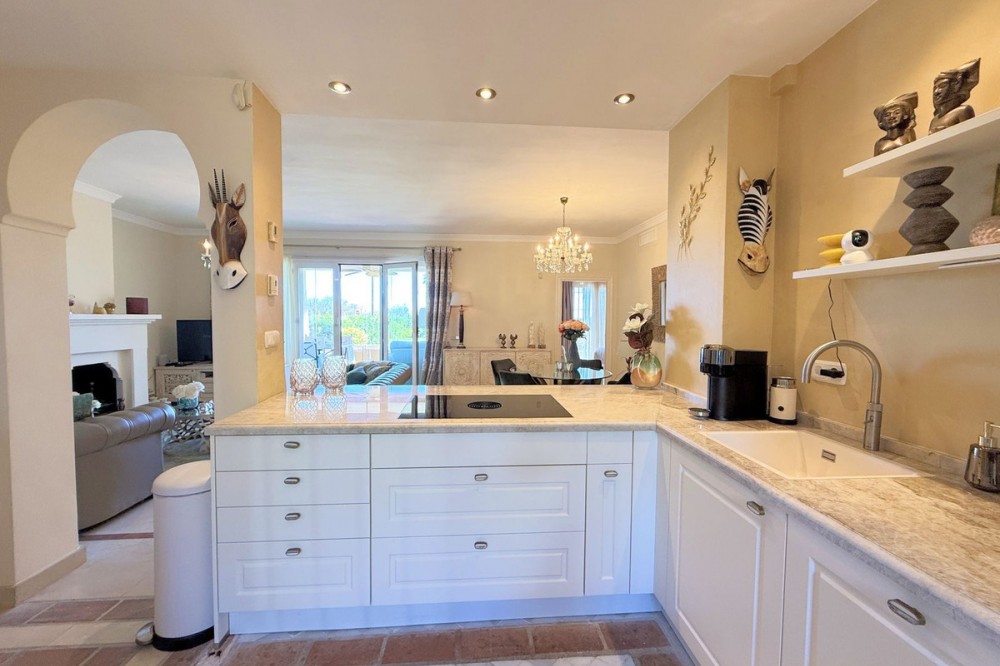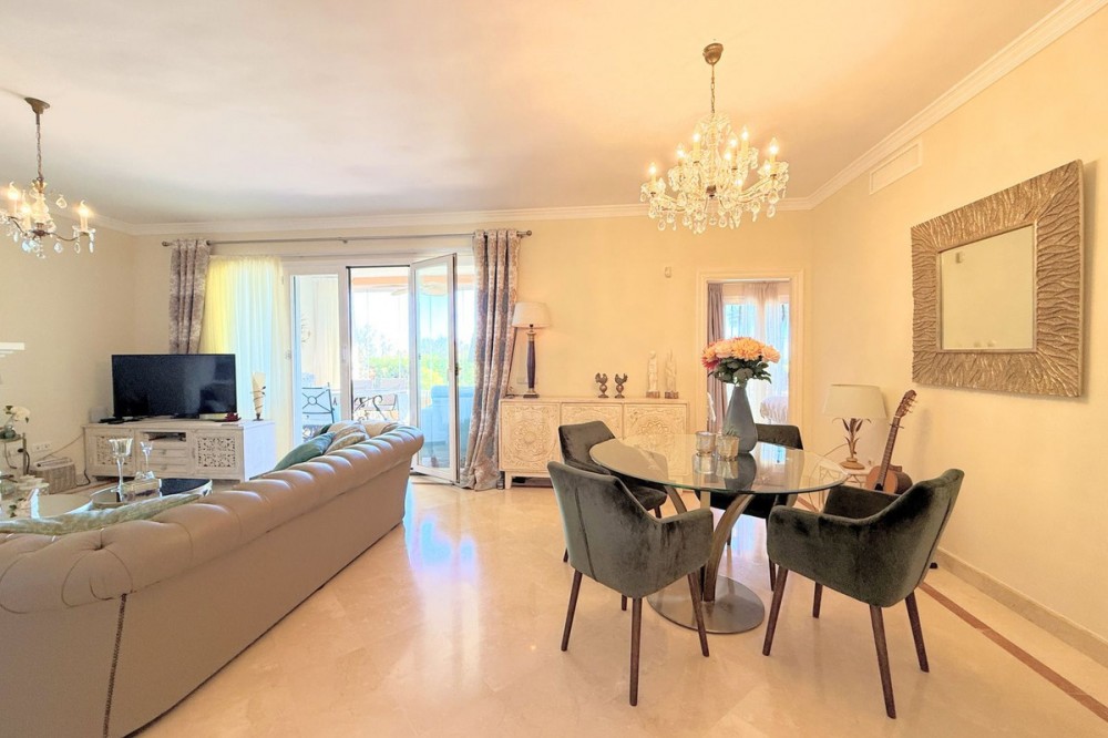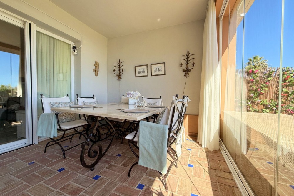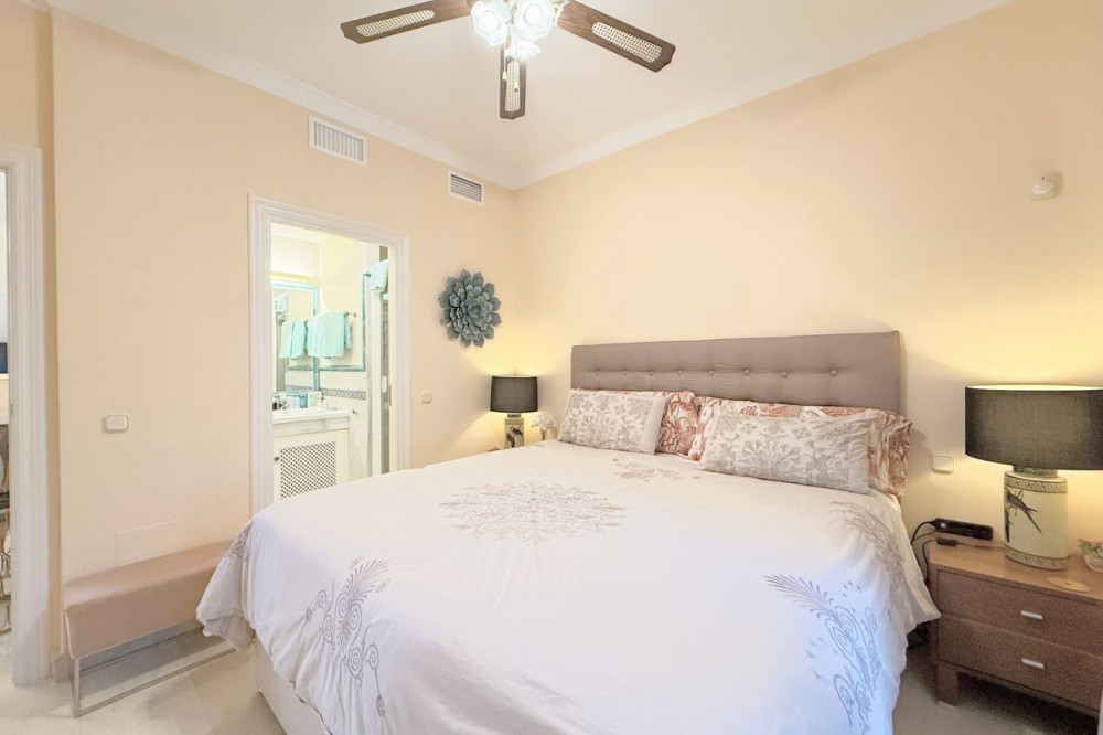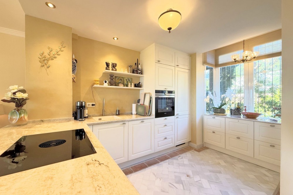 - Magnificent apartment in a luxury complex on the beachfront, with a terrace and private garden, located in Casares Playa, within a prestigious development featuring a charming Moorish design inspired by the essence of Al-Andalus. Enjoy direct access to the promenade and the stunning local beaches, with a wide selection of restaurants, beach bars, and leisure areas. Situated in a privileged location between Estepona and Puerto de la Duquesa, just a five-minute drive from both, it offers the perfect combination of exclusivity, comfort, and Mediterranean lifestyle. Its south-facing orientation ensures abundant natural light throughout the day, creating a warm and welcoming atmosphere in every room. Recently renovated, the property stands out for its careful decoration and excellent condition, ready to move in. The kitchen, updated in 2023, features Siemens appliances, ivory-colored marble floors, and all windows fitted with mosquito screens. The apartment is all on one level, with two spacious and bright bedrooms designed for maximum comfort and rest. A cozy living-dining area with a fireplace opens onto the enclosed glass terrace overlooking the garden, the communal pool, and the beach. The development offers 24-hour security, ensuring peace of mind and privacy, as well as exclusive amenities such as two magnificent pools, one of them heated, allowing year-round enjoyment. The property also includes 2 underground parking spaces and 2 storage rooms, providing convenience and extra storage. Its strategic location makes it ideal as a permanent residence or an investment, with high potential for both holiday and long-term rentals. Close to prestigious golf courses, such as Finca Cortesín, as well as marinas, restaurants, and all necessary services, this property represents a unique opportunity. If you are looking for an exclusive apartment on the beachfront, with all the comforts in one of the most sought-after areas of the coast, don’t miss this opportunity.