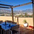 - Luxury Penthouse with Private Lift & Panoramic Wrap-Around Terrace – Mijas Costa Step into luxury with this stunning penthouse offering private lift access and a spectacular wrap-around terrace of 187 m², providing sun all day and breathtaking panoramic views of the sea, mountains, and surrounding area. The interior features a modern fully fitted kitchen, a separate dining area, and a spacious lounge with fireplace that opens directly onto the terrace. There are 3 double bedrooms and 2 bathrooms, including a master suite with en-suite bathroom and a private sauna. Designed for comfort and style, the property combines elegant finishes such as marble and wood flooring with all modern conveniences. This exceptional home includes a large enclosed private garage, with space for multiple vehicles, and is set within a gated community with communal pool and sunbathing lawns. Offered mostly furnished (with only a few personal items excluded), it is ready to enjoy immediately. Key Features: Private lift access directly into the penthouse 3 Double bedrooms | 2 Bathrooms (one en-suite with sauna) 147 m² built + 187 m² wrap-around terrace with all-day sun Spacious lounge with fireplace + separate dining room Panoramic sea, mountain & urban views Large private garage with multiple parking spaces Gated complex with pool and green areas Quality finishes: marble & wood floors, double glazing, air conditioning A rare opportunity to own a one-of-a-kind penthouse that truly has it all—space, privacy, views, and luxury living in Mijas Costa. Penthouse, Mijas Costa, Costa del Sol. 3 Bedrooms, 2 Bathrooms, Built 147 m², Terrace 187 m². Setting : Town, Commercial Area, Close To Shops, Close To Schools, Urbanisation. Orientation : North, East, South. Condition : Excellent. Pool : Communal. Climate Control : Air Conditioning, Fireplace. Views : Sea, Mountain, Panoramic, Urban. Features : Lift, Fitted Wardrobes, Near Transport, Private Terrace, Solarium, Sauna, Ensuite Bathroom, Wood Flooring, Access for people with reduced mobility, Marble Flooring, Double Glazing. Furniture : Fully Furnished. Kitchen : Fully Fitted. Security : Gated Complex, Entry Phone. Parking : Underground, Garage, More Than One, Private. Utilities : Electricity, Drinkable Water. Category : Holiday Homes, Investment, Resale.