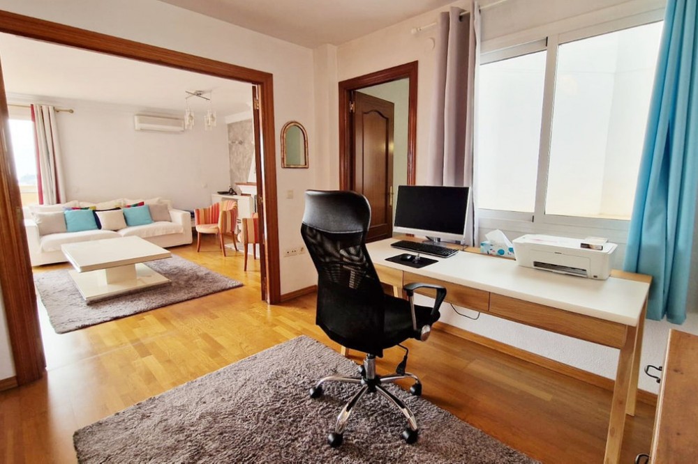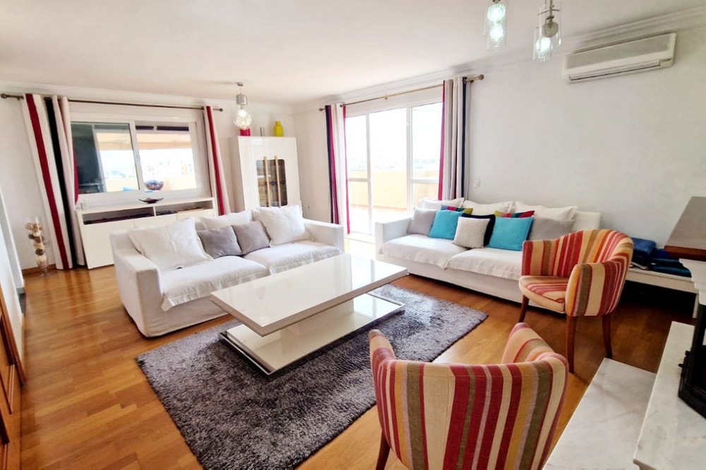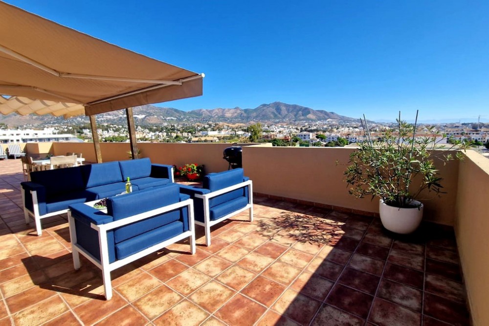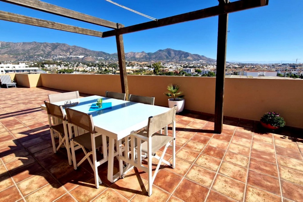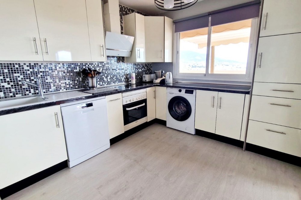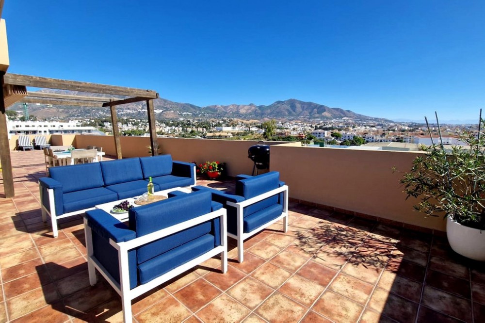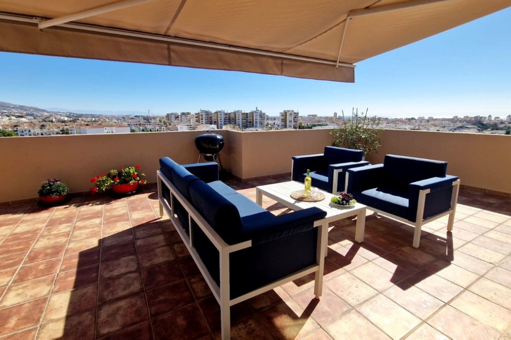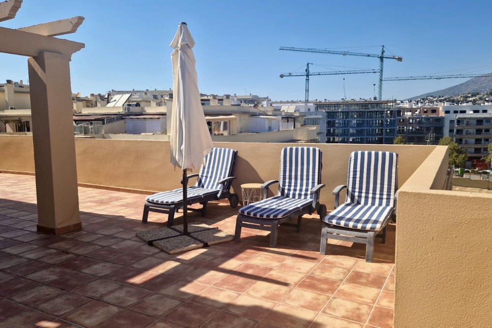 - Luxury Penthouse with Private Lift & Panoramic Wrap-Around Terrace – Mijas Costa Step into luxury with this stunning penthouse offering private lift access and a spectacular wrap-around terrace of 187 m², providing sun all day and breathtaking panoramic views of the sea, mountains, and surrounding area. The interior features a modern fully fitted kitchen, a separate dining area, and a spacious lounge with fireplace that opens directly onto the terrace. There are 3 double bedrooms and 2 bathrooms, including a master suite with en-suite bathroom and a private sauna. Designed for comfort and style, the property combines elegant finishes such as marble and wood flooring with all modern conveniences. This exceptional home includes a large enclosed private garage, with space for multiple vehicles, and is set within a gated community with communal pool and sunbathing lawns. Offered mostly furnished (with only a few personal items excluded), it is ready to enjoy immediately. Key Features: Private lift access directly into the penthouse 3 Double bedrooms | 2 Bathrooms (one en-suite with sauna) 147 m² built + 187 m² wrap-around terrace with all-day sun Spacious lounge with fireplace + separate dining room Panoramic sea, mountain & urban views Large private garage with multiple parking spaces Gated complex with pool and green areas Quality finishes: marble & wood floors, double glazing, air conditioning A rare opportunity to own a one-of-a-kind penthouse that truly has it all—space, privacy, views, and luxury living in Mijas Costa. Penthouse, Mijas Costa, Costa del Sol. 3 Bedrooms, 2 Bathrooms, Built 147 m², Terrace 187 m². Setting : Town, Commercial Area, Close To Shops, Close To Schools, Urbanisation. Orientation : North, East, South. Condition : Excellent. Pool : Communal. Climate Control : Air Conditioning, Fireplace. Views : Sea, Mountain, Panoramic, Urban. Features : Lift, Fitted Wardrobes, Near Transport, Private Terrace, Solarium, Sauna, Ensuite Bathroom, Wood Flooring, Access for people with reduced mobility, Marble Flooring, Double Glazing. Furniture : Fully Furnished. Kitchen : Fully Fitted. Security : Gated Complex, Entry Phone. Parking : Underground, Garage, More Than One, Private. Utilities : Electricity, Drinkable Water. Category : Holiday Homes, Investment, Resale.