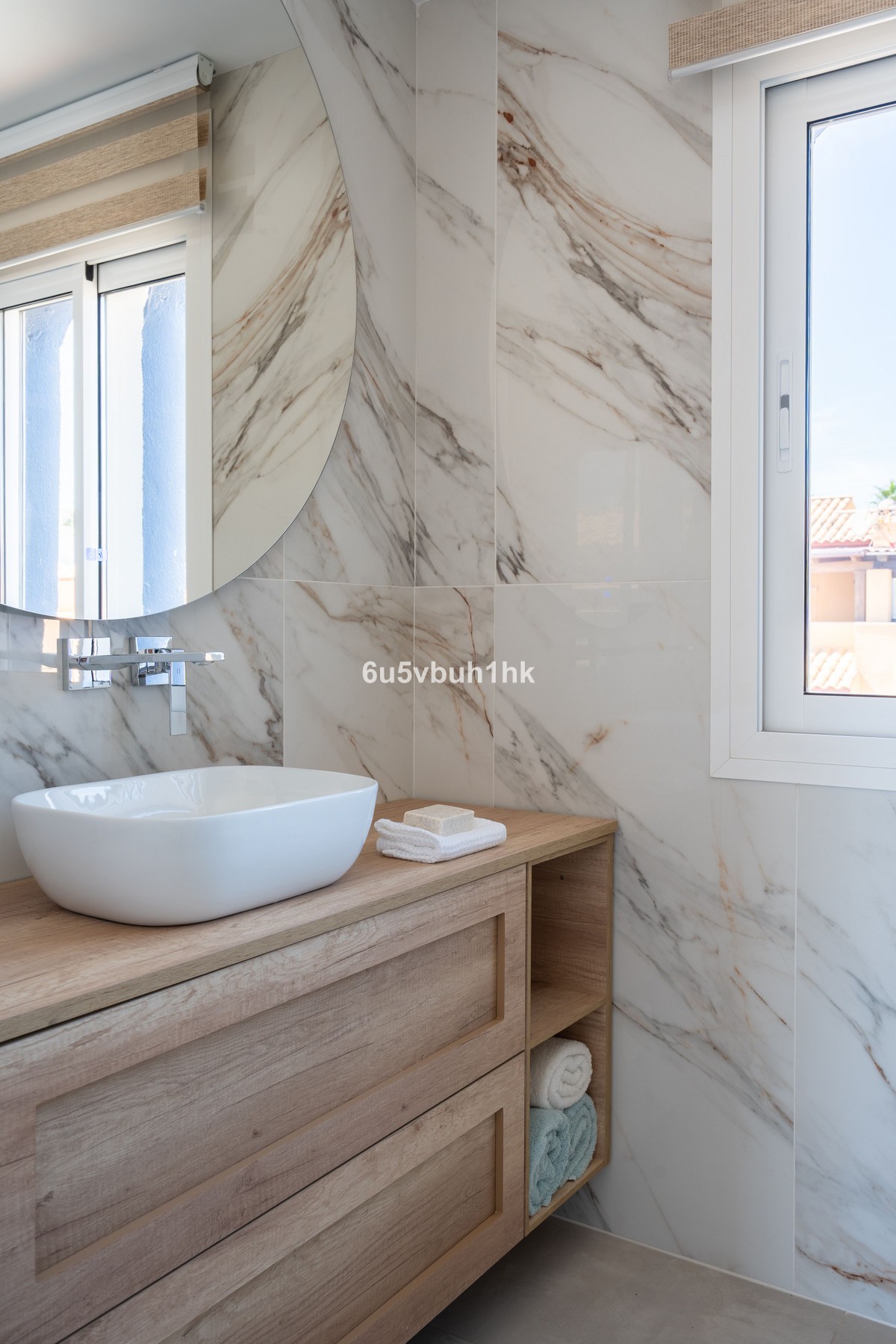 - Located in Marina de Casares, not far from Estepona Golf, within easy reach of shops, restaurants, schools, and leisure facilities. On the western edge of the Costa del Sol but still close to the vibrant cities of Marbella and Estepona. Only a short drive to the centre of Estepona and easily accessible to Malaga International Airport and Gibraltar. A well distributed bright south facing townhouse built over three floors, in a small beachfront community of houses, with direct access out to the beach through the community gate. The property has been fully reformed to a high standard with new carpentry, solar panels, security blinds, alarm and many personal touches and modern appliances. It has floor to ceiling windows, and good quality finishes throughout. The impressive front door leads into an open plan kitchen and living room area which flows out onto a private patio with direct views to the sea and a gate to the community area. The kitchen is fitted with modern appliances and is ample in size with plenty of storage space. A staircase with led lights and sensors leads up to the first floor with two ensuite bedrooms. The first bedroom is large with plenty of built in wardrobes and a terrace with stunning sea views. The ensuite bathroom is stylish and a perfect size. The second bedroom also has built in wardrobes and a modern bathroom. On the top floor is the master ensuite bedroom with built-in wardrobes and impressive sea views and a its own terrace where you can enjoy starring out to sea. This is a ready to move into home with every attention to detail and a home to be enjoyed, with unbeatable views. Just step out from your living room onto the beach! Call now for viewings.