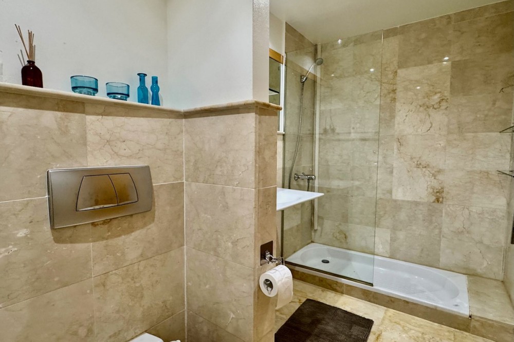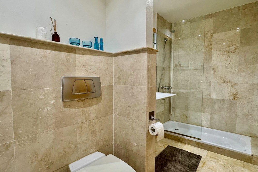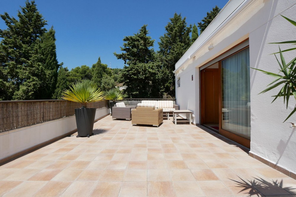 - This is a really bright, luxury & modern three bedroom penthouse apartment for sale in Marbella. All on one level this penthouses occupies the whole top floor of a building in complex just outside Marbella on the mountain in a fashionable area. Very important this apartment has unlimited hot and cold air conditioning and hot water through the community included in the price. This unit is located in the best bloque offering the cleanest panoramic views over the med and also along the coast over Marbella and Puerto Banus down towards Gibraltar. The owners of this property have made improvements in the last year, with a totally new kitchen & new furniture included in the sale. Included in the sale is two garage space and one large useful storeroom.