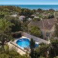 - LOCATION! LOCATION! UNIQUE opportunity to own a charming villa on a DOUBLE PLOT (1,676m²) in the very sought-after area of Marbesa, just a short walk to the beach and Simbad restaurant. Enjoy breathtaking SEA VIEWS from GROUND LEVEL! The property offers flexible living across TWO LEVELS: Independent guest level with large windows, kitchen, bedroom, and bathroom overlooking the garden and salt water pool. Main level with bright living/dining room on two levels, large kitchen, one bedroom + bathroom with a bath and master suite with ensuite bathroom (shower), bar area (easily converted to another bedroom), and covered terrace/BBQ leading to the pool, pool house & chill-out area. Outside, relax in the beautiful mature gardens, designed for the Mediterranean lifestyle. Parking: 2 large covered garages with windows & direct access to the property. 1 uncovered space + room for 3 additional cars behind the garden. This is a well-maintained hidden gem with incredible potential—perfect as a family home, holiday retreat, or investment. A must-see! Call us for a viewing today! It will be sold in no time!Detached Villa, Marbesa, Costa del Sol. 3 Bedrooms, 3 Bathrooms, Built 398 m², Garden/Plot 1676 m². Setting : Beachside, Close To Shops, Close To Sea, Close To Schools. Orientation : East, South East, South, South West, West. Condition : Good. Pool : Private. Climate Control : Air Conditioning. Views : Sea, Panoramic, Pool. Features : Covered Terrace, Fitted Wardrobes, Private Terrace, Guest Apartment, Double Glazing. Furniture : Optional. Kitchen : Fully Fitted. Garden : Private, Landscaped, Easy Maintenance. Parking : Garage, Covered, Open, More Than One, Private.
