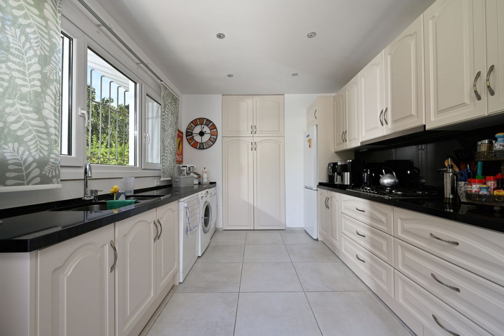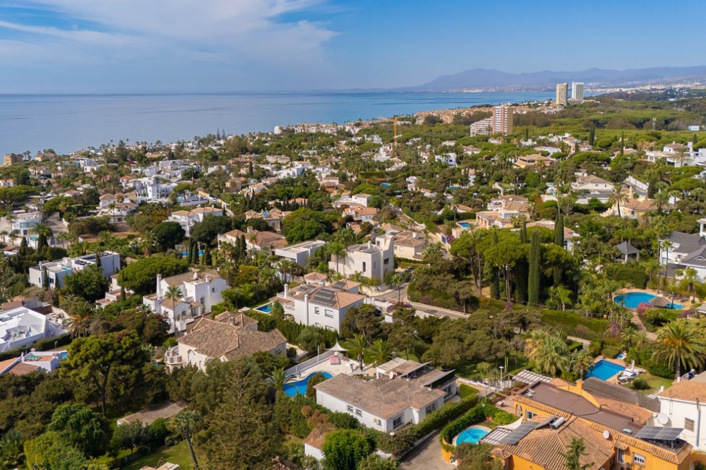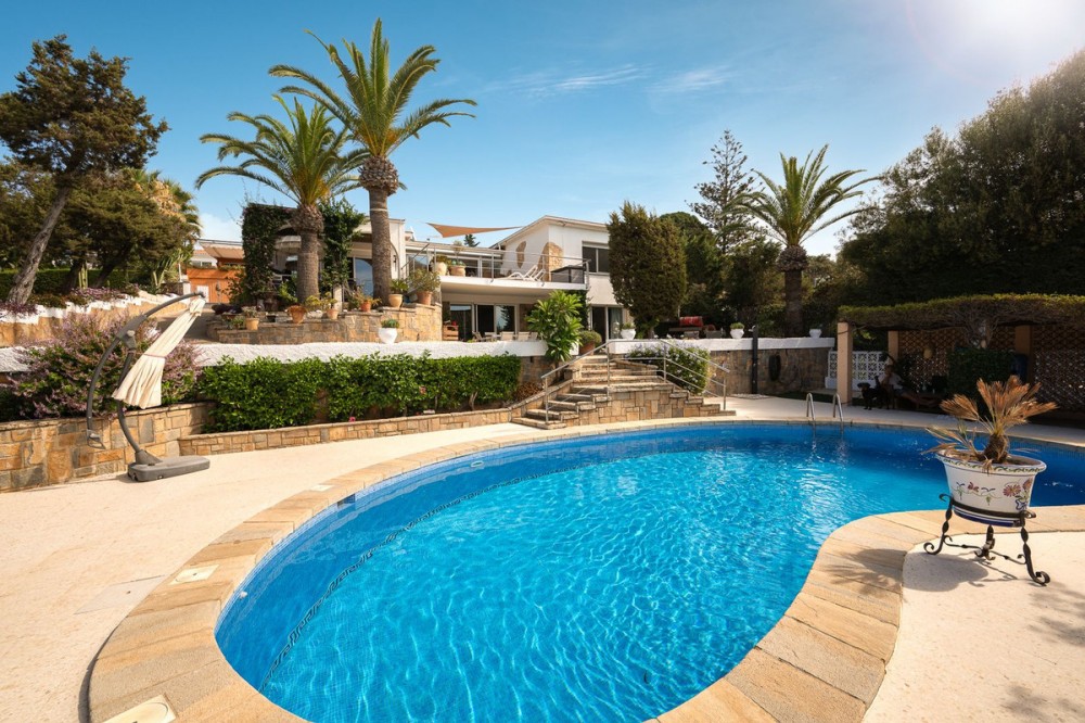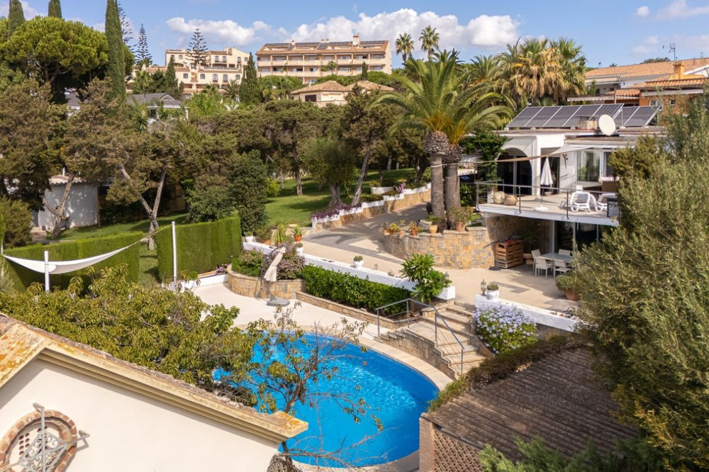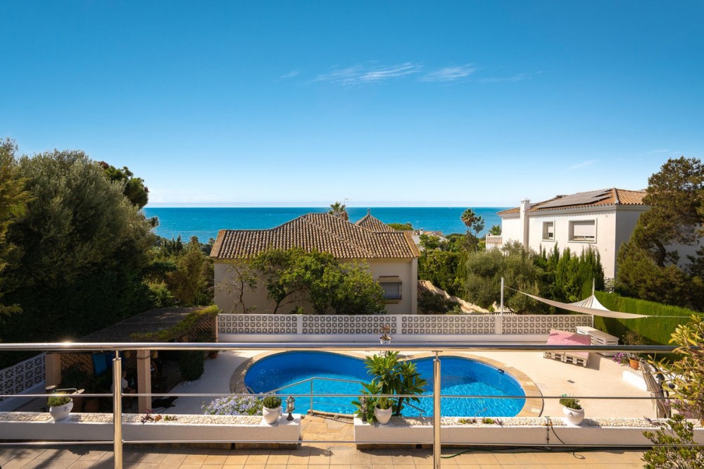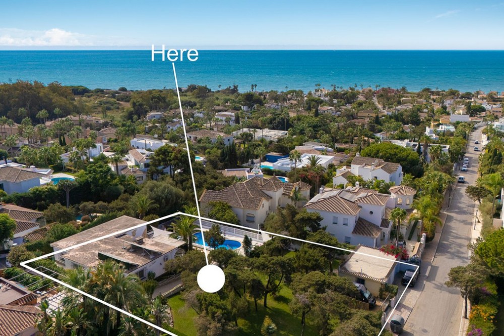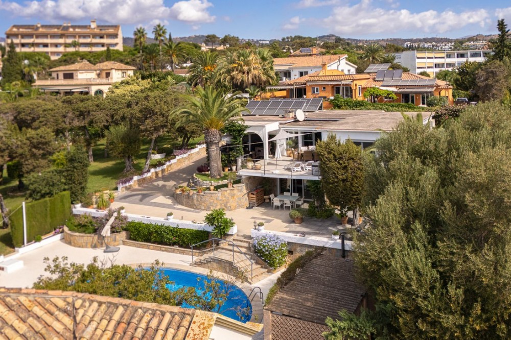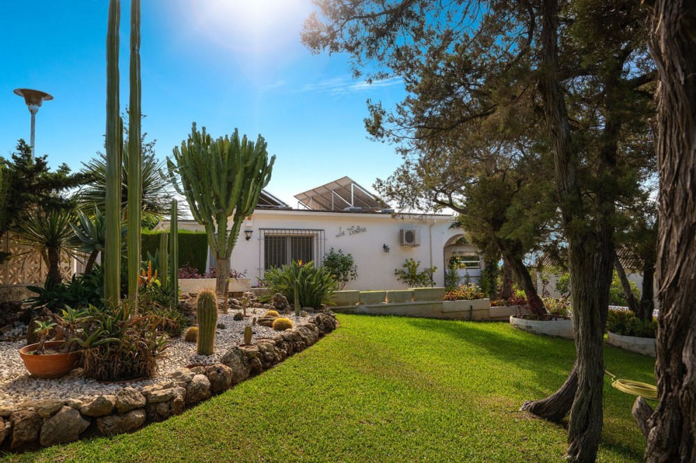 - LOCATION! LOCATION! UNIQUE opportunity to own a charming villa on a DOUBLE PLOT (1,676m²) in the very sought-after area of Marbesa, just a short walk to the beach and Simbad restaurant. Enjoy breathtaking SEA VIEWS from GROUND LEVEL! The property offers flexible living across TWO LEVELS: Independent guest level with large windows, kitchen, bedroom, and bathroom overlooking the garden and salt water pool. Main level with bright living/dining room on two levels, large kitchen, one bedroom + bathroom with a bath and master suite with ensuite bathroom (shower), bar area (easily converted to another bedroom), and covered terrace/BBQ leading to the pool, pool house & chill-out area. Outside, relax in the beautiful mature gardens, designed for the Mediterranean lifestyle. Parking: 2 large covered garages with windows & direct access to the property. 1 uncovered space + room for 3 additional cars behind the garden. This is a well-maintained hidden gem with incredible potential—perfect as a family home, holiday retreat, or investment. A must-see! Call us for a viewing today! It will be sold in no time!Detached Villa, Marbesa, Costa del Sol. 3 Bedrooms, 3 Bathrooms, Built 398 m², Garden/Plot 1676 m². Setting : Beachside, Close To Shops, Close To Sea, Close To Schools. Orientation : East, South East, South, South West, West. Condition : Good. Pool : Private. Climate Control : Air Conditioning. Views : Sea, Panoramic, Pool. Features : Covered Terrace, Fitted Wardrobes, Private Terrace, Guest Apartment, Double Glazing. Furniture : Optional. Kitchen : Fully Fitted. Garden : Private, Landscaped, Easy Maintenance. Parking : Garage, Covered, Open, More Than One, Private.
