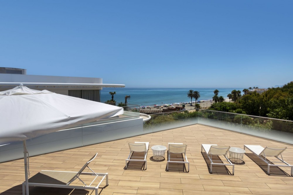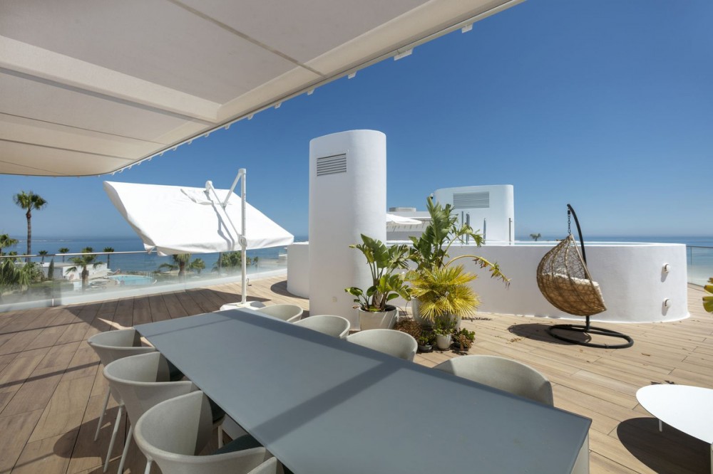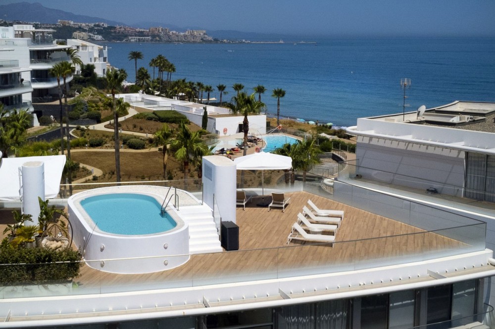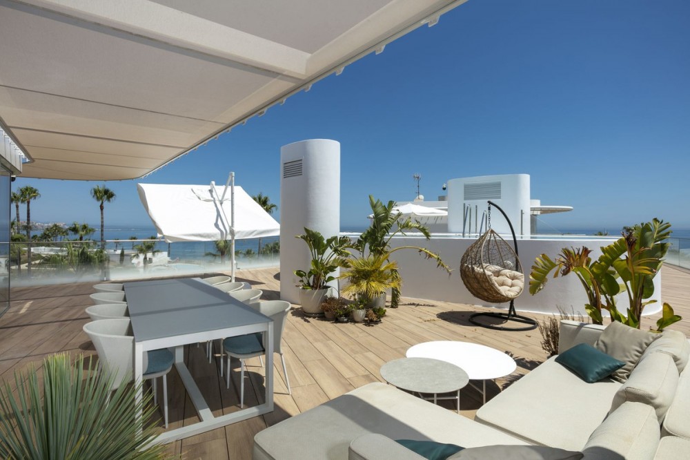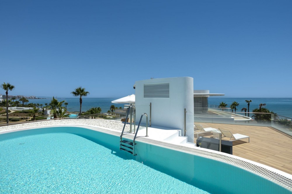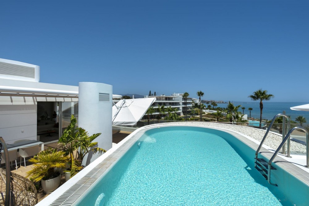 - Spectacular Beachfront Penthouse with Private Pool – Estepona This is where luxury reaches its highest expression. An extraordinary penthouse in the prestigious The Edge development, offering the perfect fusion of cutting-edge design, world-class finishes, and an unbeatable beachfront location with uninterrupted views of the Mediterranean Sea. With a total area of 493 m², the residence features spacious open-plan interiors, elegant kitchen, 3 stylish bedrooms, a rooftop solarium, and your very own private pool – all designed to maximize natural light and breathtaking sea views stretching from Gibraltar to the coasts of Africa. The Edge is more than just a residence – it is a lifestyle. Direct beach access, spectacular infinity pools, a luxury spa and gym, lush tropical gardens, and 24/7 security create an exclusive sanctuary where privacy, comfort, and sophistication coexist in perfect harmony. This penthouse is for the few who demand excellence – not just a home, but a daily inspiration and a true masterpiece of coastal living.