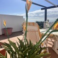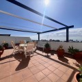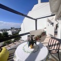 - This beautiful penthouse is located in the quiet and well-kept residence Las Jacarandas in Bel Air, within walking distance of supermarkets such as Mercadona and Lidl, and a short distance from Costalita beach. The house has a bright living room with direct access to a south facing terrace, from where you already enjoy a beautiful sea view. Via a staircase you reach the spacious roof terrace, where you will be treated to a spectacular panoramic view: on one side the Mediterranean and on the other the Sierra Bermeja and the iconic mountain La Concha. At this solarium there is also a practical storage room. The penthouse offers 2 bedrooms and 2 bathrooms, as well as a fully installed kitchen with access to a cozy terrace overlooking the lush communal gardens and pool. An underground parking lot is included. The residence is very quiet and security is provided in the evening. Holiday rentals are not allowed, making this the ideal place for those looking for peace, comfort and security, yet wanting to live close to all amenities.