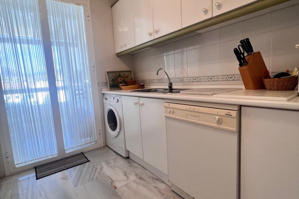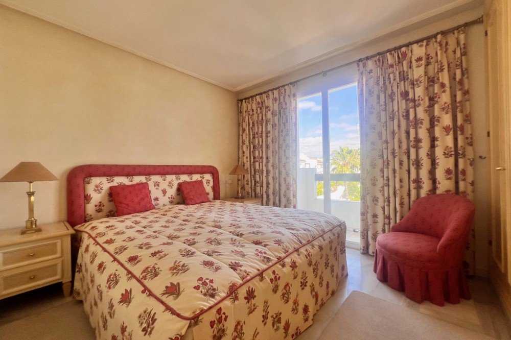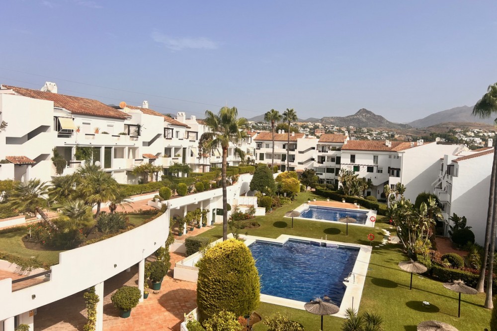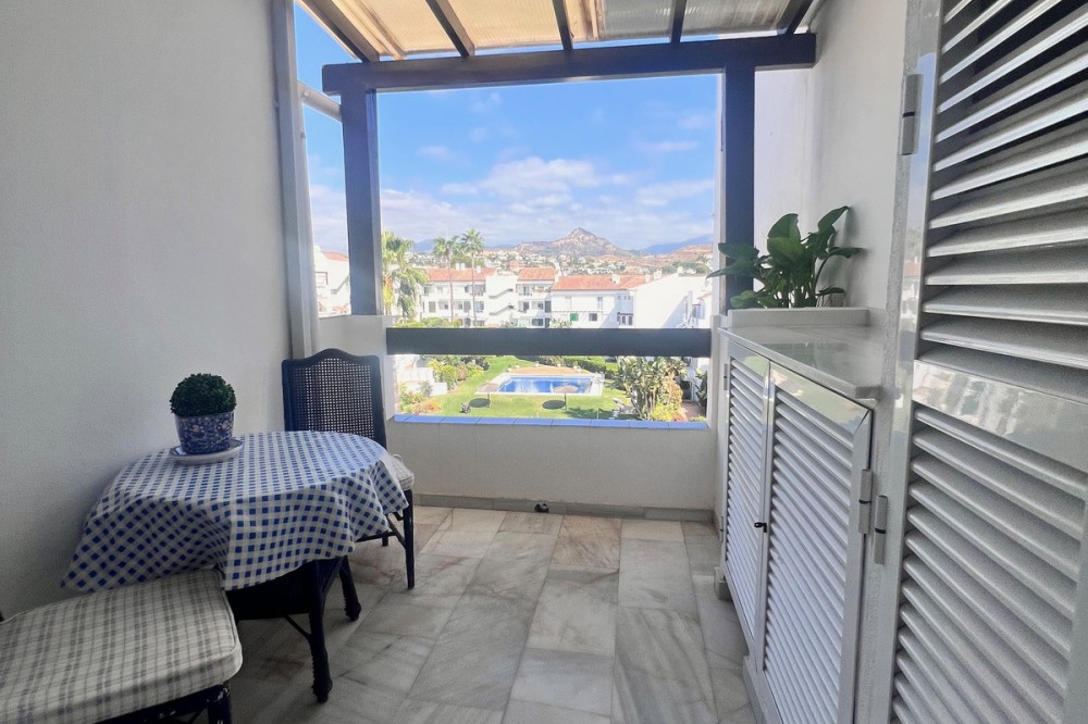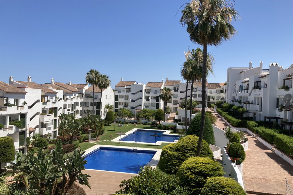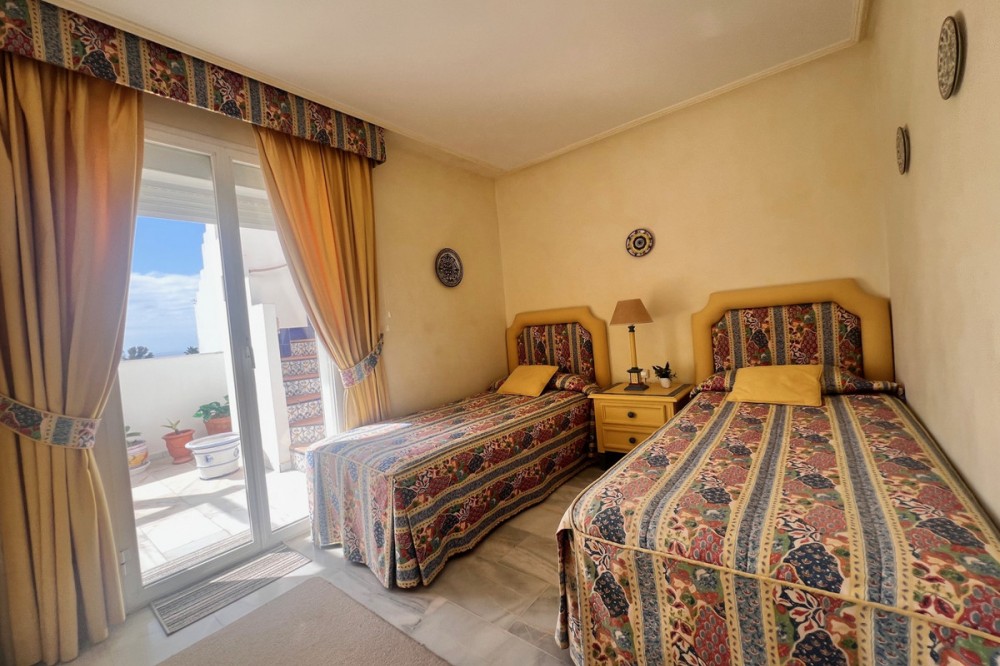 - This beautiful penthouse is located in the quiet and well-kept residence Las Jacarandas in Bel Air, within walking distance of supermarkets such as Mercadona and Lidl, and a short distance from Costalita beach. The house has a bright living room with direct access to a south facing terrace, from where you already enjoy a beautiful sea view. Via a staircase you reach the spacious roof terrace, where you will be treated to a spectacular panoramic view: on one side the Mediterranean and on the other the Sierra Bermeja and the iconic mountain La Concha. At this solarium there is also a practical storage room. The penthouse offers 2 bedrooms and 2 bathrooms, as well as a fully installed kitchen with access to a cozy terrace overlooking the lush communal gardens and pool. An underground parking lot is included. The residence is very quiet and security is provided in the evening. Holiday rentals are not allowed, making this the ideal place for those looking for peace, comfort and security, yet wanting to live close to all amenities.