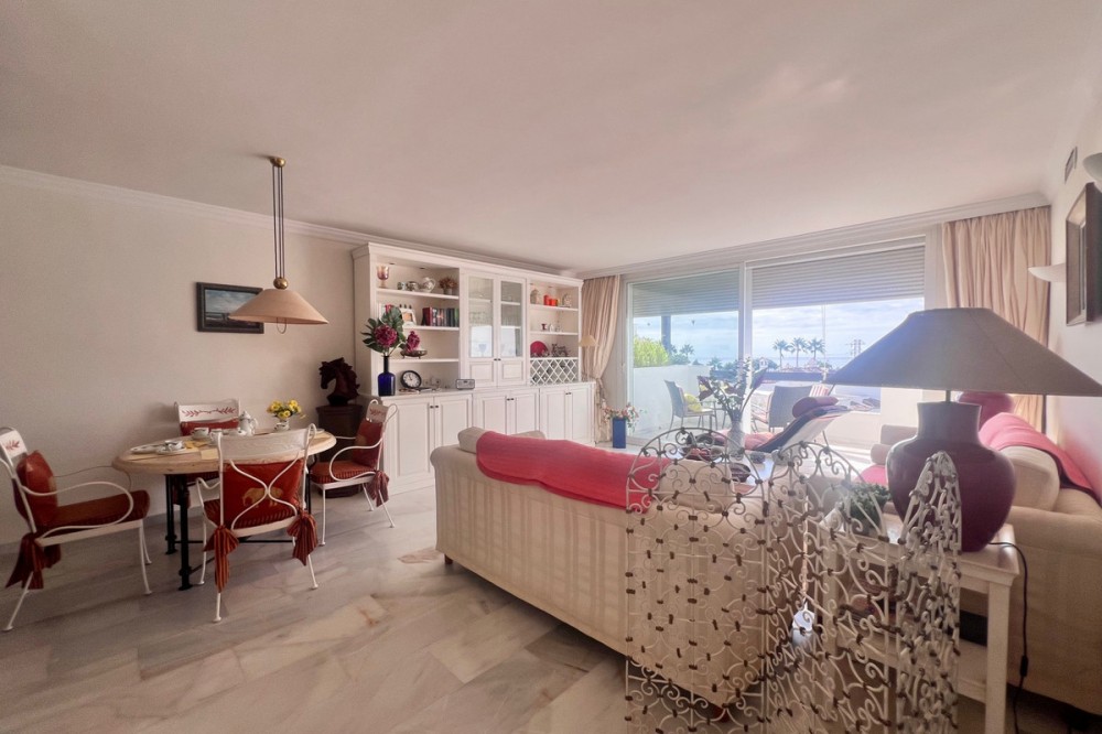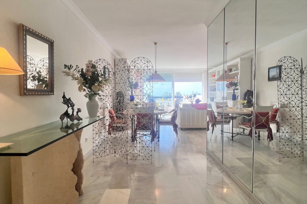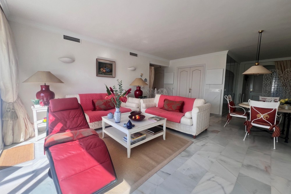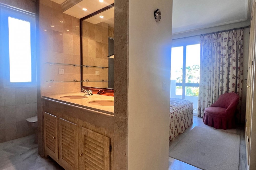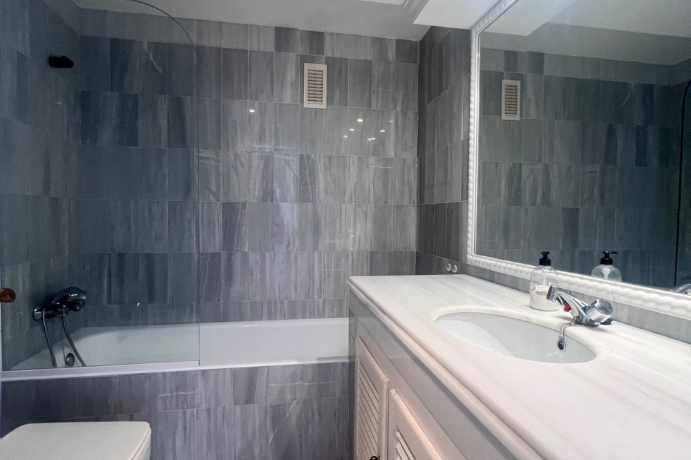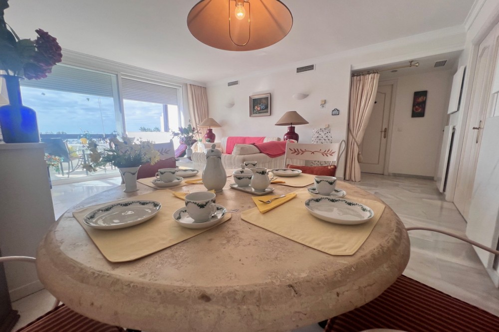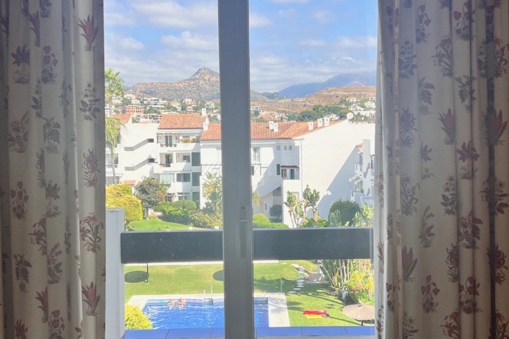 - This beautiful penthouse is located in the quiet and well-kept residence Las Jacarandas in Bel Air, within walking distance of supermarkets such as Mercadona and Lidl, and a short distance from Costalita beach. The house has a bright living room with direct access to a south facing terrace, from where you already enjoy a beautiful sea view. Via a staircase you reach the spacious roof terrace, where you will be treated to a spectacular panoramic view: on one side the Mediterranean and on the other the Sierra Bermeja and the iconic mountain La Concha. At this solarium there is also a practical storage room. The penthouse offers 2 bedrooms and 2 bathrooms, as well as a fully installed kitchen with access to a cozy terrace overlooking the lush communal gardens and pool. An underground parking lot is included. The residence is very quiet and security is provided in the evening. Holiday rentals are not allowed, making this the ideal place for those looking for peace, comfort and security, yet wanting to live close to all amenities.