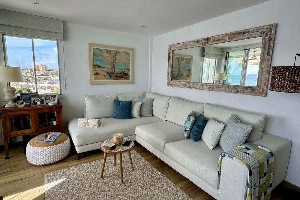 - FRONT LINE BEACH / ALOUD HOLIDAY RENTALS . Spectacular apartment on the beachfront between the Riviera del Sol and Miraflores developments in a residential area right on the coastal promenade and magnificent beach with a large garden area, a large swimming pool, and private communal parking. The apartment is unique, with two bedrooms and two bathrooms, completely renovated and refurbished, with a high-quality island kitchen, fully furnished, and a terrace that feels like you're on a balcony overlooking the sea. Additionally, with an extra, the community accepts holiday rentals, a magnificent plus to make this gem profitable.