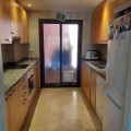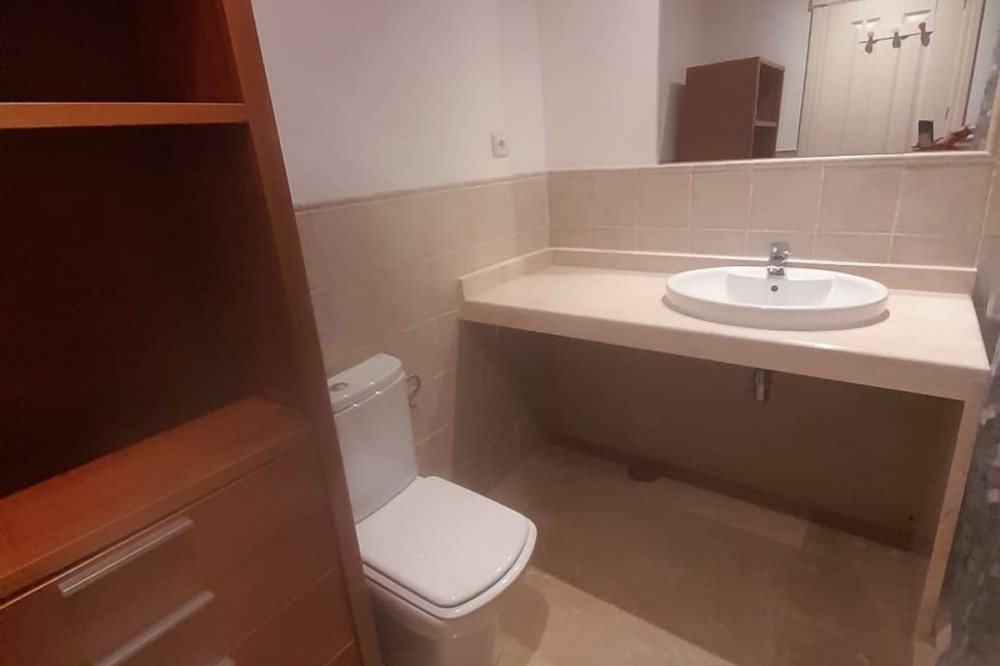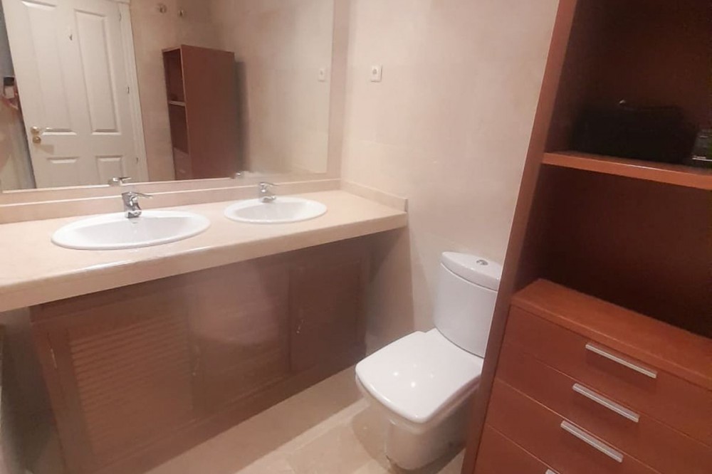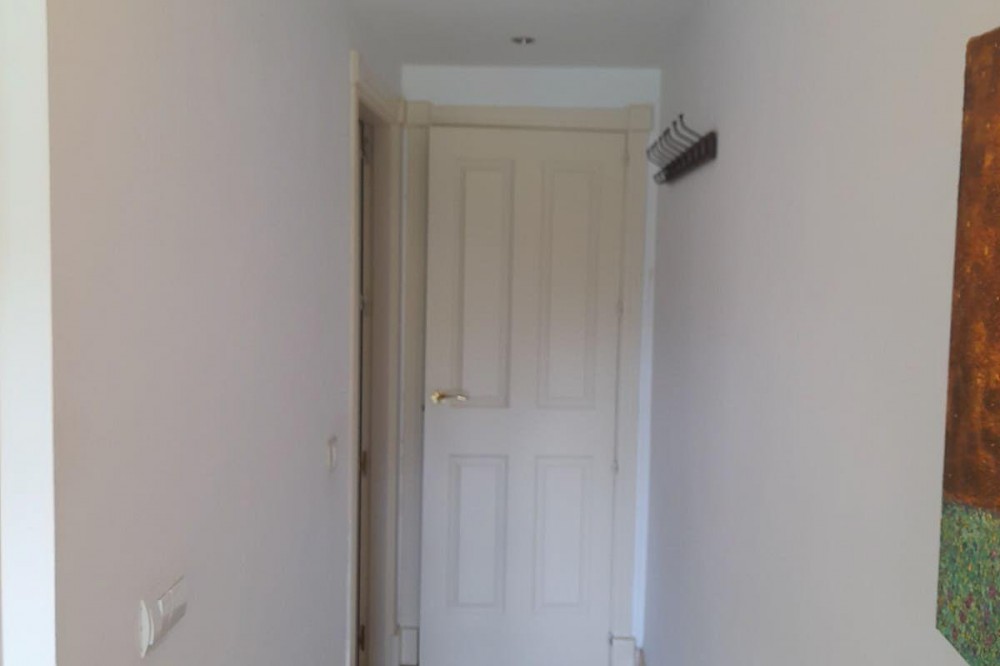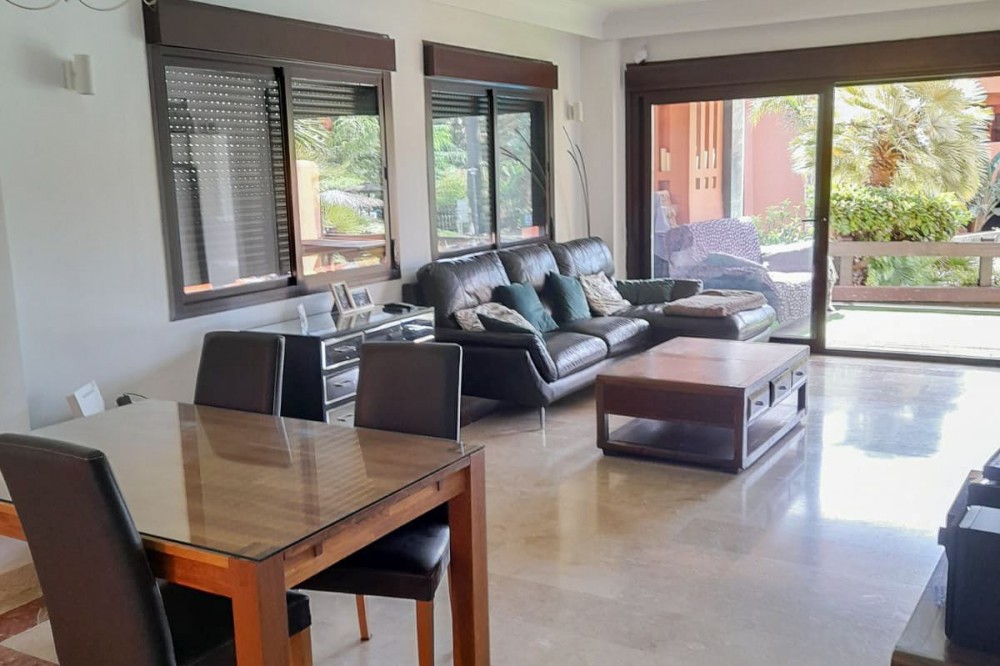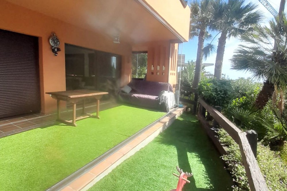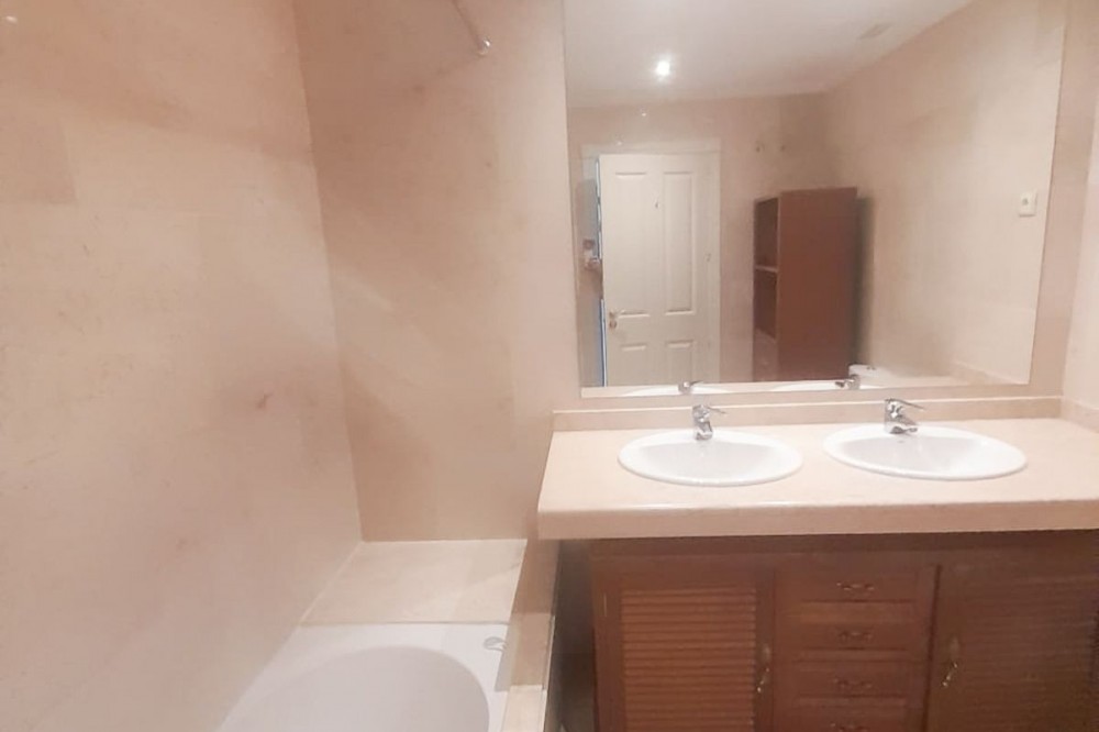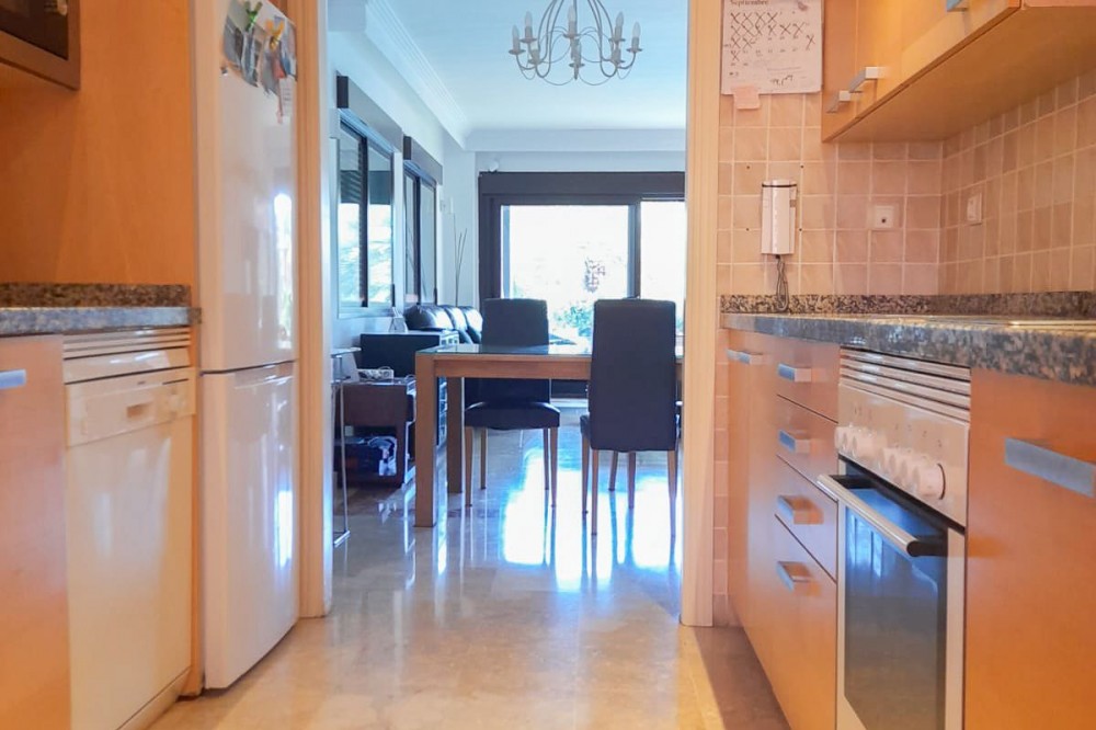 - In the Buenas Noches area, near Casares Playa and Estepona We present this spacious and very bright ground floor apartment. Upon entering, we find an entrance hall that leads to a separate kitchen with a laundry room and to a very open living-dining room thanks to a large window that connects to the generous terrace, with partial sea views, from which there is direct access to the communal pool. The living room also has two additional windows on the side, providing natural light throughout the day. The property has two double bedrooms: the master bedroom with en-suite bathroom, fitted wardrobe, and access to the terrace overlooking the pool; the second bedroom also has a fitted wardrobe. The exterior carpentry is aluminum, and the doors are lacquered in white. It includes a convenient parking space with room for a large car and motorcycle, as well as a storage room. The terrace has been glazed with the Lumon system, allowing it to be enjoyed all year round.