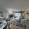 - This beautiful ground floor is located in a beautiful urbanization with beautifully maintained gardens, a large swimming pool and a children's pool. The flat is located on the first floor and has a spacious living room with a partially open kitchen. There are two spacious bedrooms and two modern bathrooms. The interior has a very modern look and the spacious terrace offers beautiful views of the gardens and swimming pool. The location is very central, between San Pedro and Estepona, making it ideal for both permanent living and holiday accommodation. The price includes a storage room and an underground parking garage. In addition, new furniture is included in the sales price.