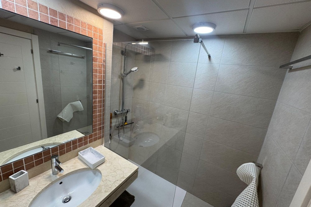 - This beautiful ground floor is located in a beautiful urbanization with beautifully maintained gardens, a large swimming pool and a children's pool. The flat is located on the first floor and has a spacious living room with a partially open kitchen. There are two spacious bedrooms and two modern bathrooms. The interior has a very modern look and the spacious terrace offers beautiful views of the gardens and swimming pool. The location is very central, between San Pedro and Estepona, making it ideal for both permanent living and holiday accommodation. The price includes a storage room and an underground parking garage. In addition, new furniture is included in the sales price.