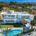 - AMAZING OPPORTUNITY - FIRST LINE BEACH - EXCLUSIVE NEIGHBORHOOD MARBELLA Spectacular opportunity to own a villa in Los Monteros, Marbella, is an exceptional property that combines luxury, modernity and spaciousness in a privileged environment. Located in this exclusive neighborhood, the villa enjoys a privileged beachfront location, offering privacy and breathtaking panoramic views of the Mediterranean Sea. This modern villa is distinguished by its contemporary architectural design, with clean lines, large windows and a focus on integrating the interior with the exterior. The façade is elegant and minimalist, using high quality materials such as glass, steel and natural stone. The property has a considerable constructed area, distributed over several floors that offer ample spaces for enjoyment and comfort. The villa features state-of-the-art home automation, a private cinema, gym, a sauna, and a jacuzzi. The property boasts 6 bedrooms and 6 bathrooms, providing ample space and luxury for a comfortable lifestyle. It has an impressive pool surrounded by a large terrace with rest areas and solarium, landscaped gardens, several terraces and patios, ideal for outdoor entertaining, with areas for dining and relaxing.There an spacious underground parking for 5 cars. It has security systems, including 24-hour surveillance and access control. The villa is close to high-end amenities such as renowned golf courses, gourmet restaurants, and is conveniently located near the renowned La Cabane Beach restaurant (Dolce & Gabbana), luxury boutiques and beach clubs. Additionally, Marbella and Puerto Banús, with its vibrant nightlife and yacht marina, are just a short drive away. Easy access to the main roads and Malaga airport, making it easy to arrive and exit the villa. In short, this villa in Los Monteros, Marbella, offers a luxurious and modern lifestyle, with all the comforts and services necessary to enjoy a comfortable and elegant life in one of the most prestigious areas of the Costa del Sol.