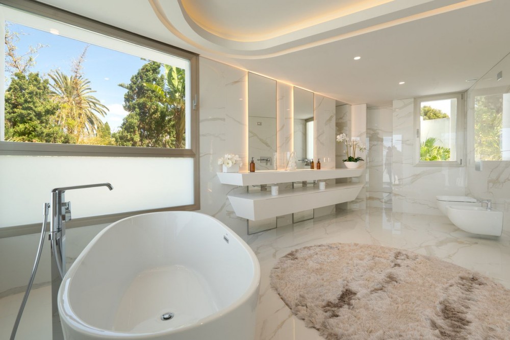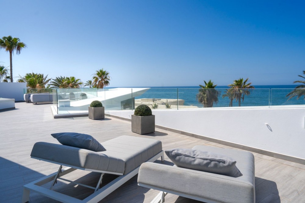 - AMAZING OPPORTUNITY - FIRST LINE BEACH - EXCLUSIVE NEIGHBORHOOD MARBELLA Spectacular opportunity to own a villa in Los Monteros, Marbella, is an exceptional property that combines luxury, modernity and spaciousness in a privileged environment. Located in this exclusive neighborhood, the villa enjoys a privileged beachfront location, offering privacy and breathtaking panoramic views of the Mediterranean Sea. This modern villa is distinguished by its contemporary architectural design, with clean lines, large windows and a focus on integrating the interior with the exterior. The façade is elegant and minimalist, using high quality materials such as glass, steel and natural stone. The property has a considerable constructed area, distributed over several floors that offer ample spaces for enjoyment and comfort. The villa features state-of-the-art home automation, a private cinema, gym, a sauna, and a jacuzzi. The property boasts 6 bedrooms and 6 bathrooms, providing ample space and luxury for a comfortable lifestyle. It has an impressive pool surrounded by a large terrace with rest areas and solarium, landscaped gardens, several terraces and patios, ideal for outdoor entertaining, with areas for dining and relaxing.There an spacious underground parking for 5 cars. It has security systems, including 24-hour surveillance and access control. The villa is close to high-end amenities such as renowned golf courses, gourmet restaurants, and is conveniently located near the renowned La Cabane Beach restaurant (Dolce & Gabbana), luxury boutiques and beach clubs. Additionally, Marbella and Puerto Banús, with its vibrant nightlife and yacht marina, are just a short drive away. Easy access to the main roads and Malaga airport, making it easy to arrive and exit the villa. In short, this villa in Los Monteros, Marbella, offers a luxurious and modern lifestyle, with all the comforts and services necessary to enjoy a comfortable and elegant life in one of the most prestigious areas of the Costa del Sol.