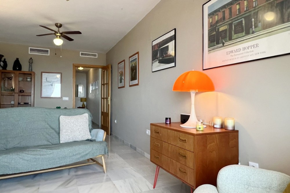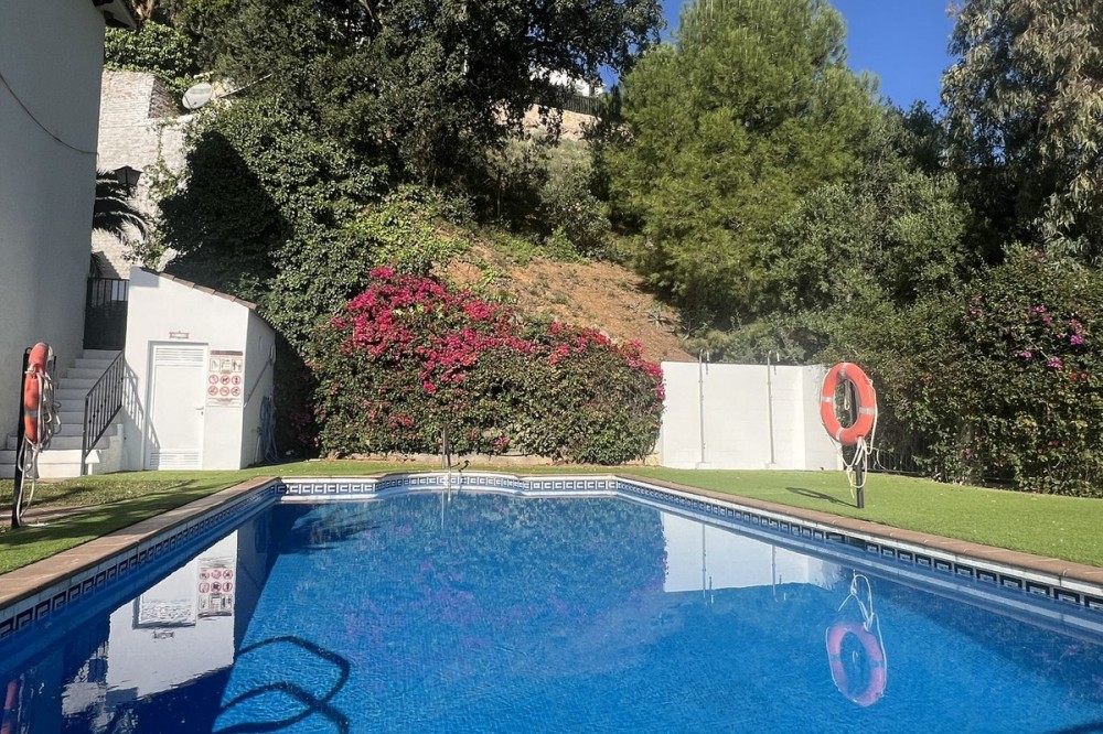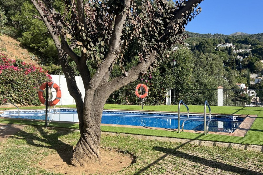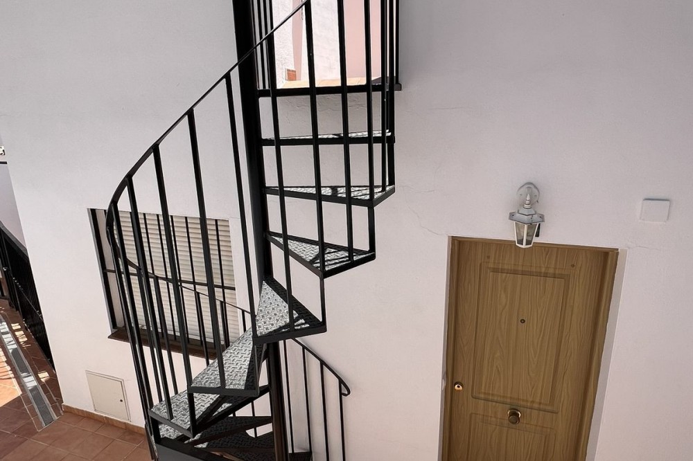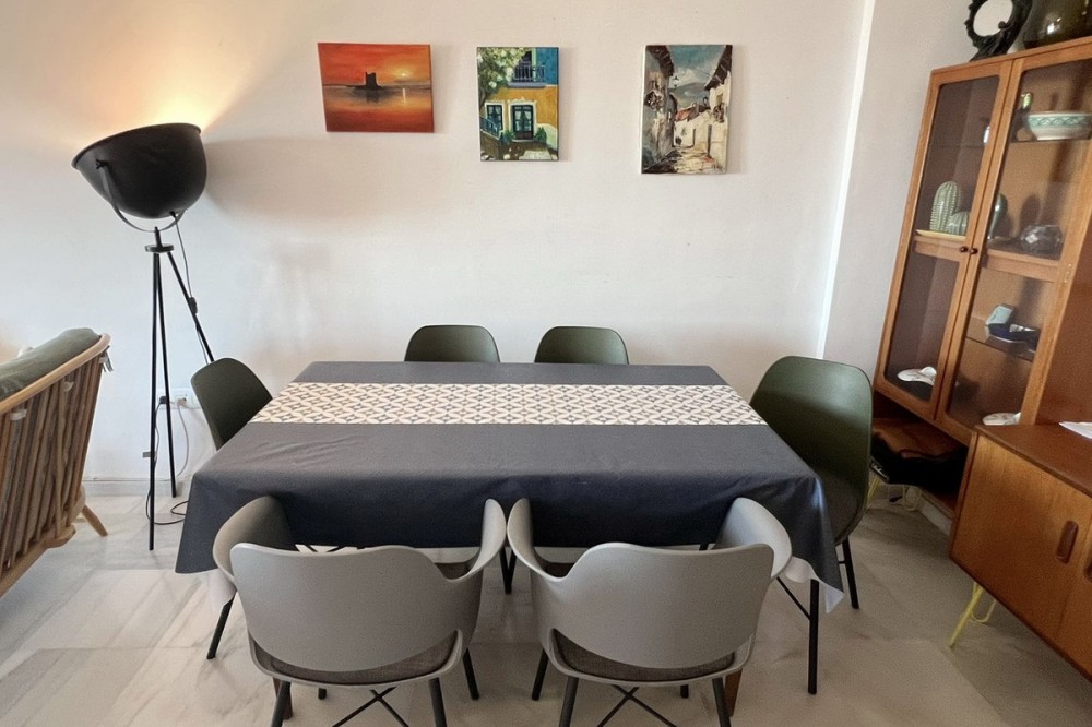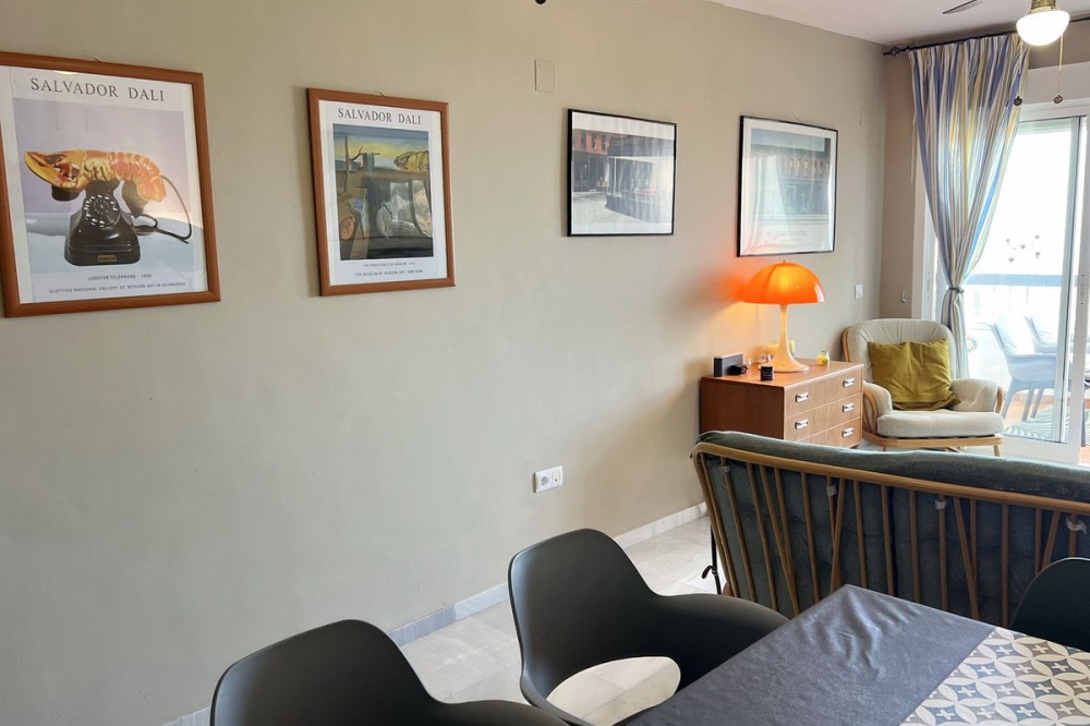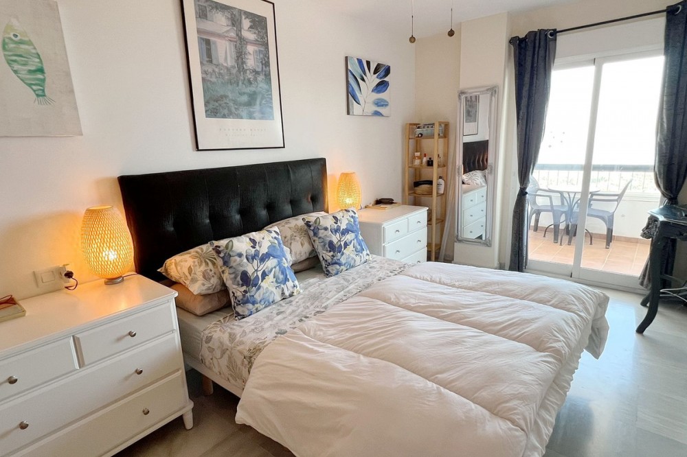 - WONDERFUL APARTMENT on the EDGE of MIJAS PUEBLO enjoying the MOST SPECTACULAR & BREATHTAKING PANORAMIC VIEWS TO THE SEA and MOUNTAINS!! Entrance hall. Lounge-dining room with A/C h+c, ceiling fan and sliding doors to enclosed sunny terrace with folding glass curtains. Shower room. Master bedroom with wardrobes and sliding doors to the enclosed terrace. This sunny enclosed terrace could be a reading room or study if needed. Double glazing. Roller blinds. Marble floors. Ceiling fans. Guest bedroom also has fitted wardrobes. Full bathroom. Fully fitted kitchen with glass-ceramic hob, fridge-freezer, oven, extractor fan and granite counter-top. Small patio has spiral stairs that lead up to huge ROOF-TOP TERRACE with those outstanding PANORAMIC views to the whole coast. There are new storage units, an outdoor shower, and space for BBQ and dining “al fresco” – a great place to chill out. Communal swimming pool, well-maintained gardens and a designated parking space. All within a peaceful gated complex only a short walk from Mijas center. Walking distance to all amenities! Near bus stop. VIEWINGS ARE HIGHLY RECOMMENED!!