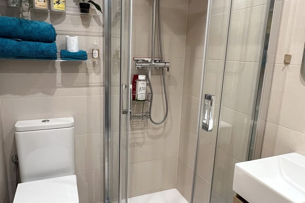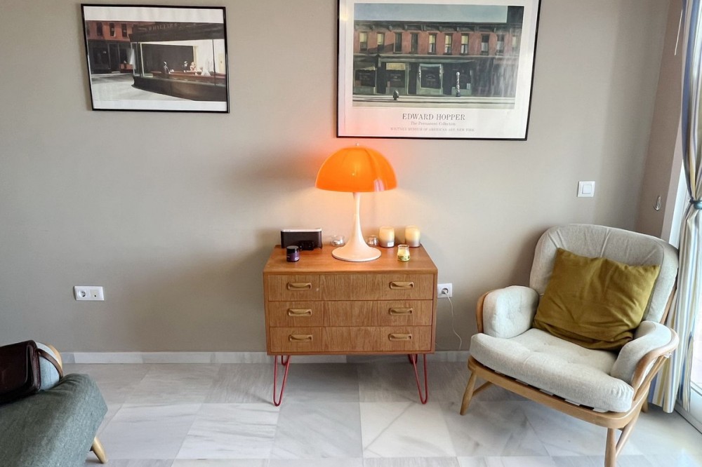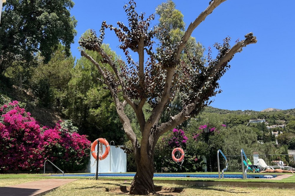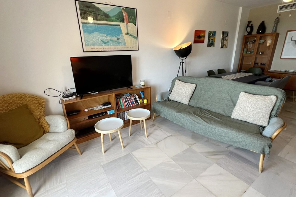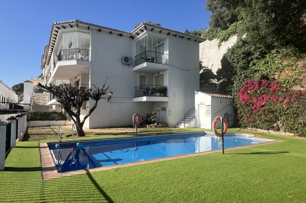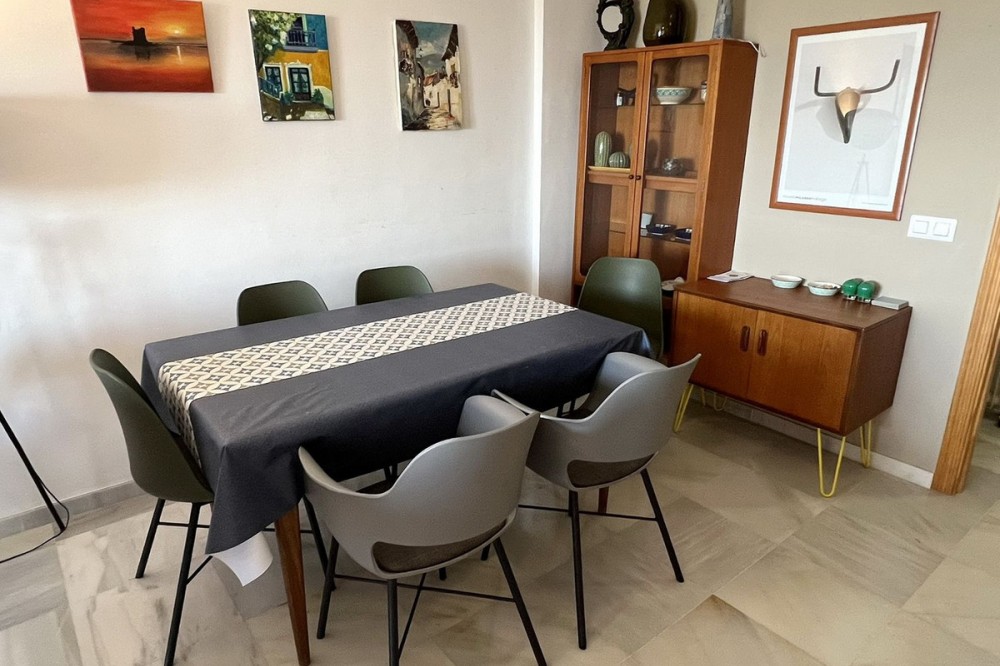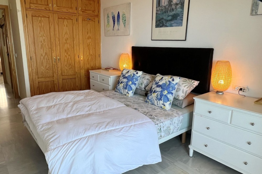 - WONDERFUL APARTMENT on the EDGE of MIJAS PUEBLO enjoying the MOST SPECTACULAR & BREATHTAKING PANORAMIC VIEWS TO THE SEA and MOUNTAINS!! Entrance hall. Lounge-dining room with A/C h+c, ceiling fan and sliding doors to enclosed sunny terrace with folding glass curtains. Shower room. Master bedroom with wardrobes and sliding doors to the enclosed terrace. This sunny enclosed terrace could be a reading room or study if needed. Double glazing. Roller blinds. Marble floors. Ceiling fans. Guest bedroom also has fitted wardrobes. Full bathroom. Fully fitted kitchen with glass-ceramic hob, fridge-freezer, oven, extractor fan and granite counter-top. Small patio has spiral stairs that lead up to huge ROOF-TOP TERRACE with those outstanding PANORAMIC views to the whole coast. There are new storage units, an outdoor shower, and space for BBQ and dining “al fresco” – a great place to chill out. Communal swimming pool, well-maintained gardens and a designated parking space. All within a peaceful gated complex only a short walk from Mijas center. Walking distance to all amenities! Near bus stop. VIEWINGS ARE HIGHLY RECOMMENED!!