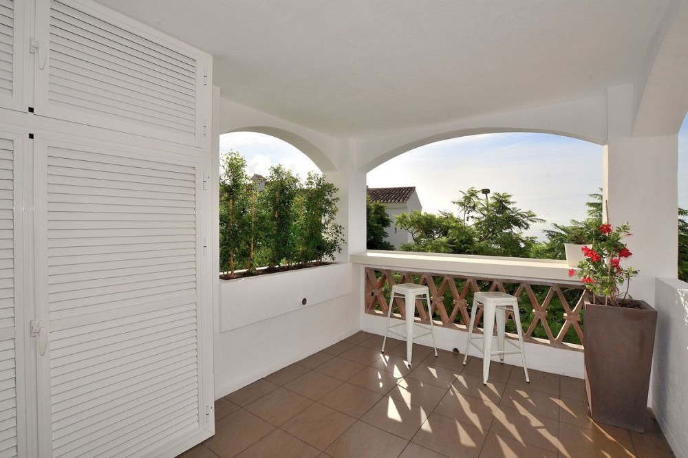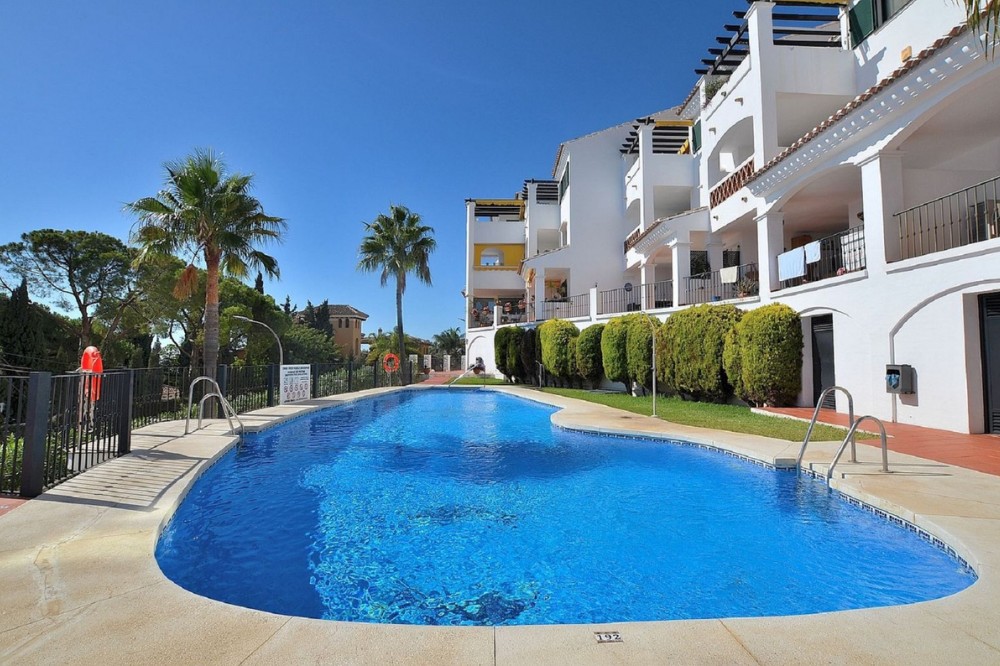 - RENOVATED apartment with SEA VIEWS, located in Benalmádena Pueblo. PRIME LOCATION at only 500 metres from the town center and several bars, restaurants and other amenites just few metres from the property. At 200 metres from a sports center that has gym, swimming pool, soccer fields, etc... 14 m2 terrace, SOUTH FACING, with beautiful sea views. Renovated apartment ready to move in. It has air conditioning in all rooms, several fitted wardrobes and a small storage on the terrace. Gated complex with communal pool and garden. Easy parking next to the complex. The layout is as follows: Hall, 2nd bedroom, bathroom. Following, corridor, kitchen, living room with access to the terrace. Finally, back to the living room, access to the master bedroom with en-suite bathroom. Access to the terrace is also available from this bedroom. Total size: 87 m2 (73 m2 apartment + 14 m2 terrace). Floor: 1st. Community fees: 88 €/month. IBI tax: 639 €/year. Rubbish tax: 172 €/year. Orientation: Southeast, South, Southwest. Year of construction: 2004. *Distances: - School: 20 mts. - Restaurants and bars: 100 mts. - Bus stop: 200 mts. - Sports center: 200 mts. - Benalmádena Pueblo center: 500 mts. - Airport: 15.2 km.