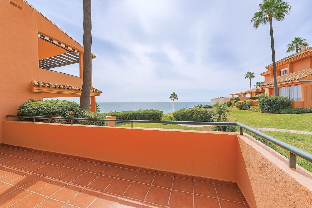 - This is a fantastic property situated in Bermuda Beach, in an enviable front line beach position offering panoramic sea views. The property has been renovated to a high standard including a new kitchen and bathrooms in a modern contemporary style. The resulting effect is stunning and makes a perfect luxurious family home. The views can be appreciated from the moment you enter the property giving the "wow" factor. There is ample space on the terrace which leads off from the living room - enough for sun-beds as well as a large dining table and chairs. Upstairs are the bedrooms with the Master bedroom having an ensuite bathroom and its own spacious balcony with those incredible sea views and two further guest bedrooms sharing a bathroom. There is a private space for the car and there is a supermarket and restaurants within easy walking distance and it is only 10 minutes by car to arrive at the town of Estepona. A great value for money property in an unbeatable location. Short term rentals are permitted.