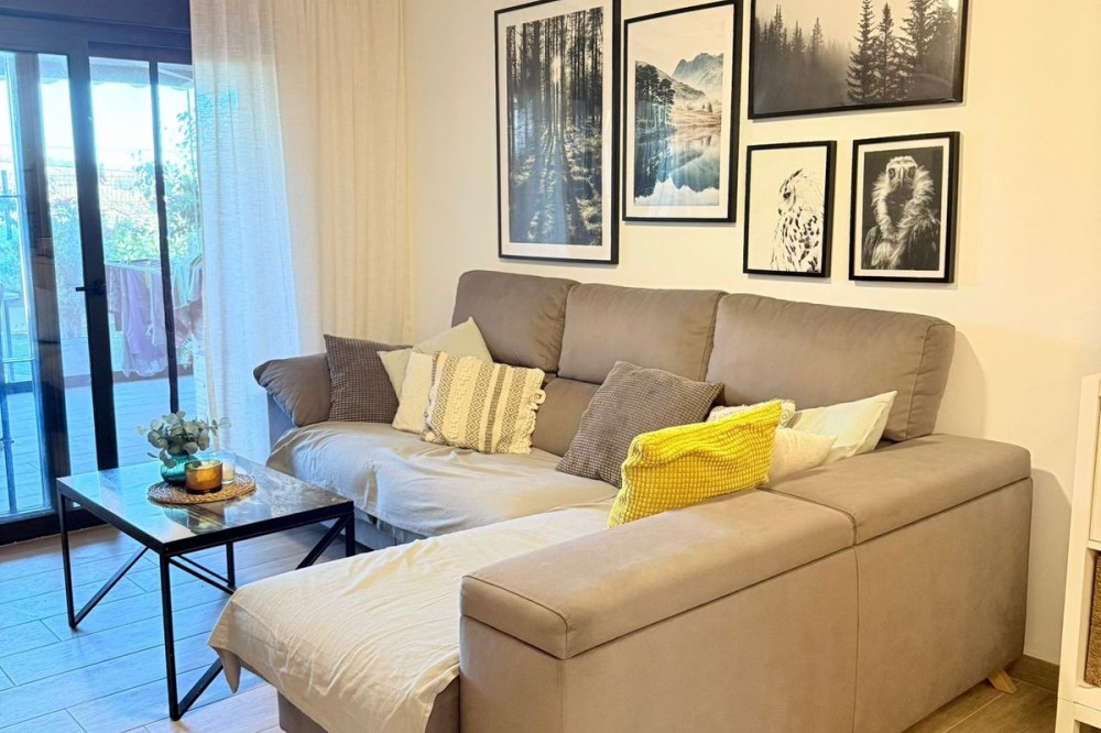 - Discover this charming apartment for sale that combines comfort and style! Located in a quiet area, this ground floor apartment has a large terrace and a private garden, perfect for enjoying outdoor moments. With 117 m² built, it offers two spacious bedrooms with built-in wardrobes and two full bathrooms, ideal for families or couples looking for space. The kitchen has been completely renovated, presenting a modern and functional design that will delight any gastronomy lover. In addition, the new flooring and windows with motorized blinds add a contemporary and practical touch to the home. The glazed terrace is the perfect place to relax throughout the year, while direct access to the countryside turns this home into a true oasis. It includes a parking space and a storage room, which adds extra value to the property. The community has a large pool and another for children, as well as large green garden areas for walking and enjoying nature. This apartment is an excellent option for those seeking quality of life in a peaceful environment. You have the possibility of acquiring another parking space for €15,000 additional. Don't miss this opportunity!
