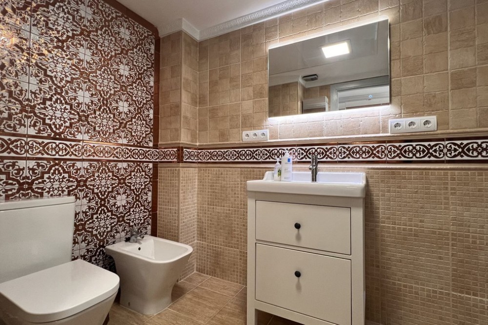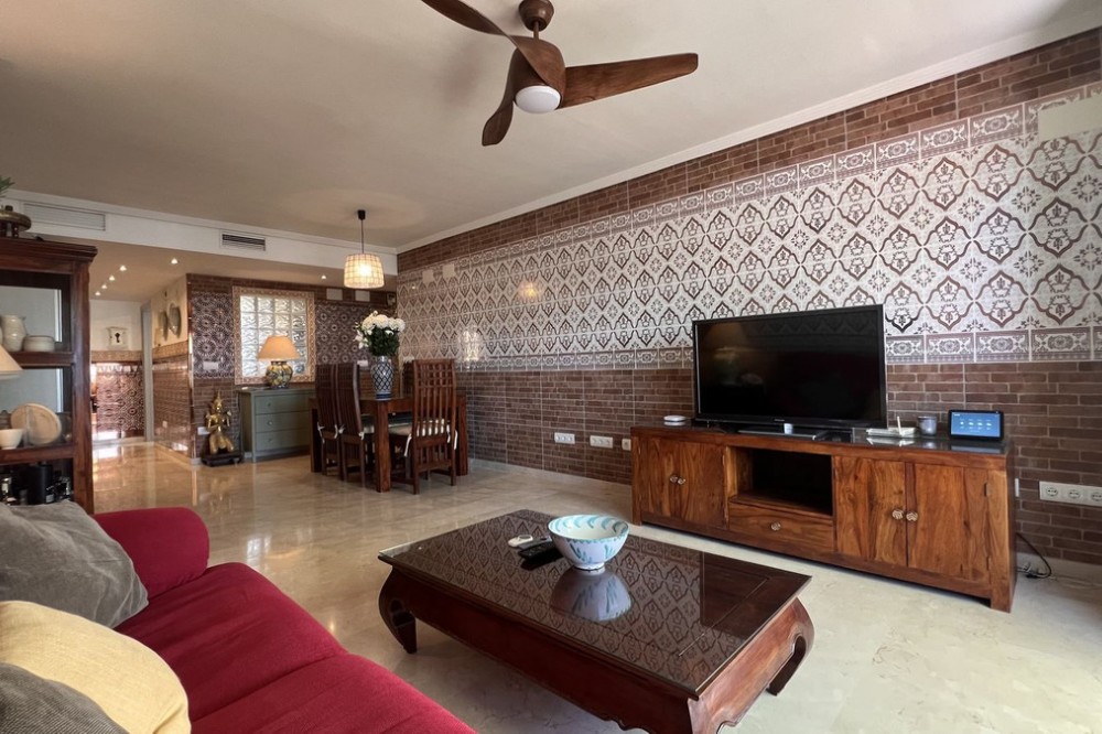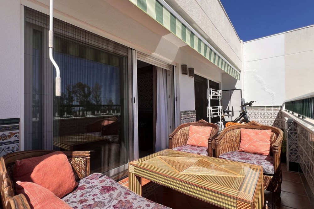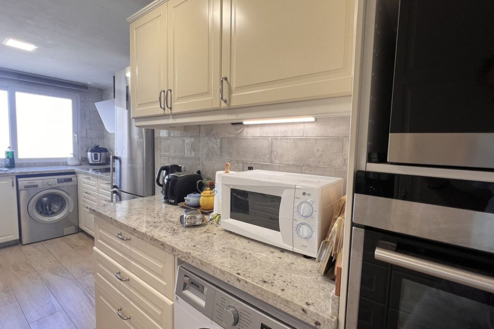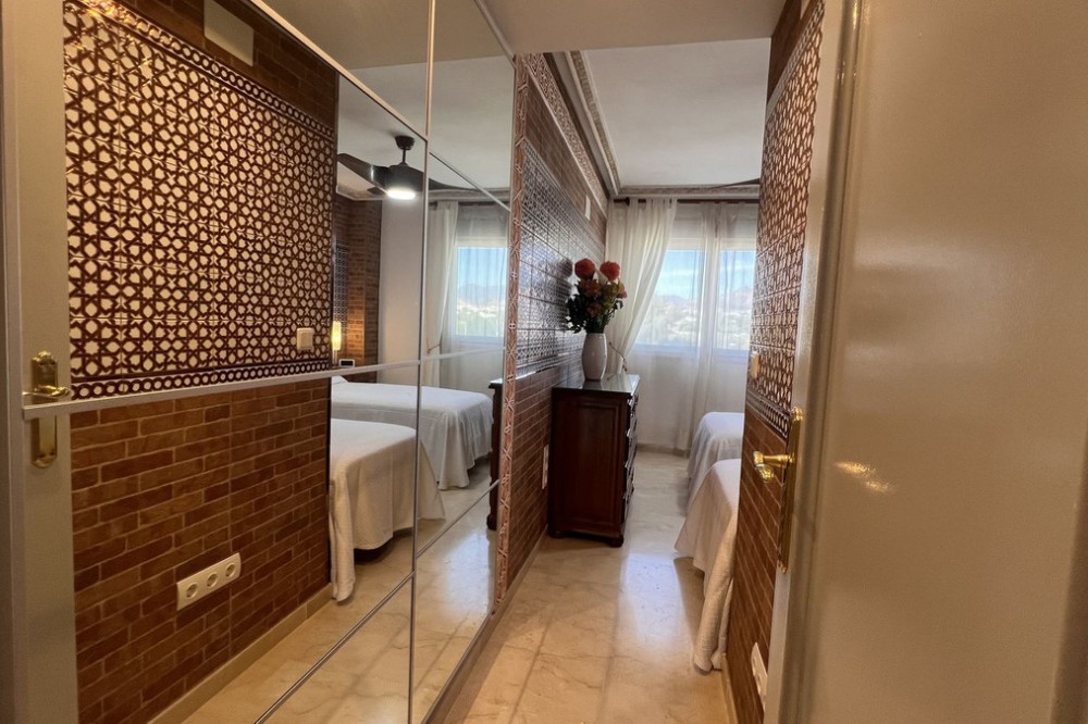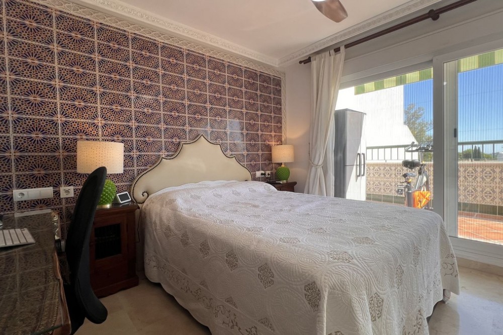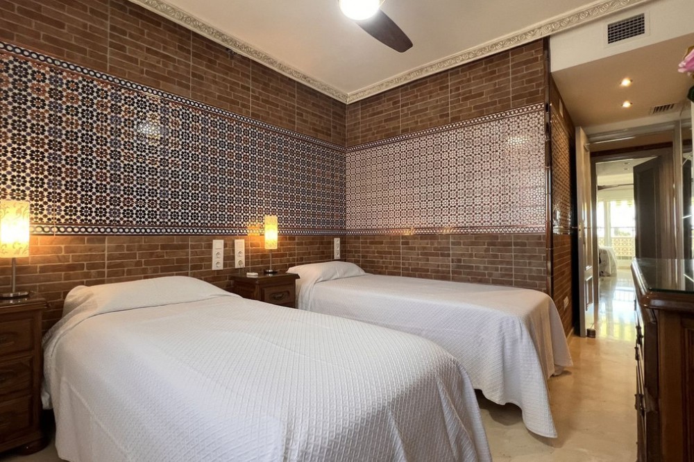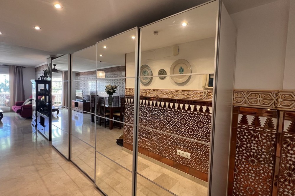 - This charming top-floor apartment, located in the sought-after Guadalmina Baja, offers a comfortable and modern living experience. The apartment features two spacious bedrooms and two renovated bathrooms. The open-concept layout creates a seamless flow between the living area and a newly updated kitchen, perfect for cooking and entertaining. Sustainable living is prioritized with solar panels providing hot water, adding both energy efficiency and eco-consciousness to the property. The apartment also boasts new air conditioning, ensuring comfort year-round. From the large windows, you'll enjoy open views of the beautifully landscaped garden and sparkling pool, with additional glimpses of the sea, creating a serene backdrop to your daily life. Included in the price is an underground parking space and storage room. The location is unbeatable, within walking distance to the vibrant commercial area of Guadalmina, offering an array of shops and restaurants. Plus, the beachside is just a short stroll away, allowing you to easily enjoy the Mediterranean coastline.