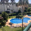 - This charming top-floor apartment, located in the sought-after Guadalmina Baja, offers a comfortable and modern living experience. The apartment features two spacious bedrooms and two renovated bathrooms. The open-concept layout creates a seamless flow between the living area and a newly updated kitchen, perfect for cooking and entertaining. Sustainable living is prioritized with solar panels providing hot water, adding both energy efficiency and eco-consciousness to the property. The apartment also boasts new air conditioning, ensuring comfort year-round. From the large windows, you'll enjoy open views of the beautifully landscaped garden and sparkling pool, with additional glimpses of the sea, creating a serene backdrop to your daily life. Included in the price is an underground parking space and storage room. The location is unbeatable, within walking distance to the vibrant commercial area of Guadalmina, offering an array of shops and restaurants. Plus, the beachside is just a short stroll away, allowing you to easily enjoy the Mediterranean coastline.