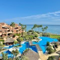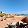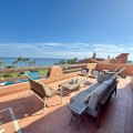 - Presenting a sophisticated penthouse situated in the exclusive Mar Azul development, East of Estepona town. This 1 bedroom, 1 bathroom property spans 80m² of meticulously maintained living space, complemented by an expansive 100m² private terrace with panoramic views to the sea and surroundings. Ideally positioned on the front line of the beach, the residence enjoys stunning panoramic, sea, garden, and pool views, offering a rare opportunity to embrace the quintessential Costa del Sol lifestyle. The penthouse is offered fully furnished and features a fully fitted and equipped kitchen, marble floors, and a spacious living and dining area that seamlessly connects to the terrace. Modern comforts include air conditioning, underfloor heating in the bathrooms, double glazing, and security shutters, ensuring a pleasant living environment year-round. There is a garage space and store room included. Residents of Mar Azul enjoy access to a wealth of communal facilities, including a heated indoor pool, gym, beautifully landscaped gardens, and a solarium. Security is paramount, with a gated community, 24-hour security service, surveillance cameras, video entrance, and a doorman. The building is equipped with a lift, and a private garage space is included, alongside ample visitor parking. The property is maintained in excellent condition, with a dedicated 24-hour service available for residents. The location is second to none, with amenities, transport links, shops, schools, restaurants, and leisure facilities all within easy reach. Golf courses, playgrounds, and the vibrant hubs of Puerto Banús, Marbella Centre, and Estepona Centre are nearby, making this penthouse an exceptional choice for those seeking a refined beachfront residence with unparalleled convenience and comfort.