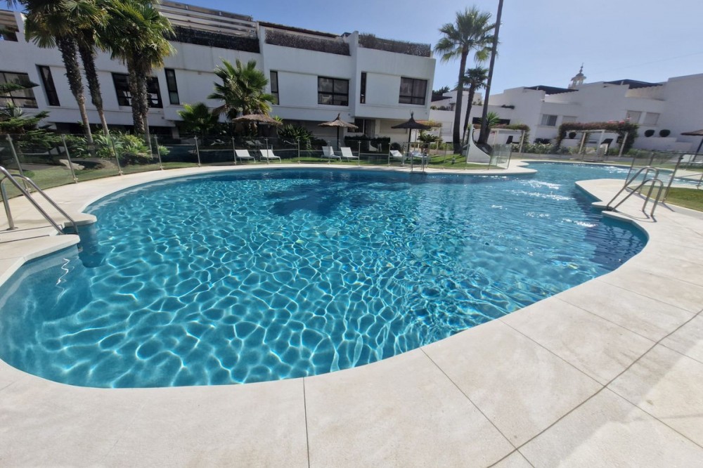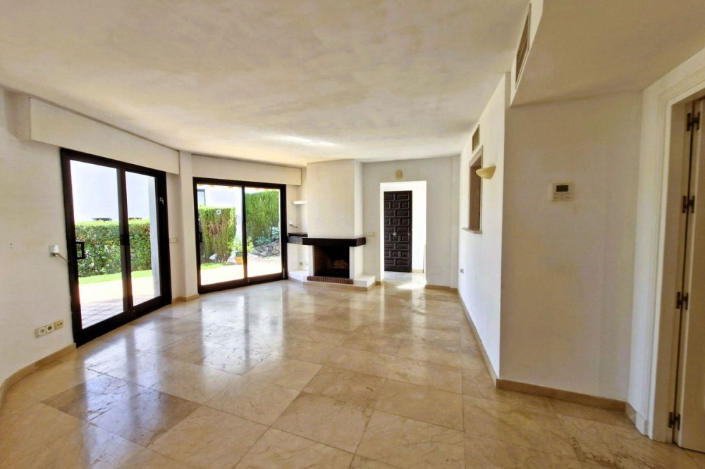 - Charming Garden Apartment in the Exclusive Coto Real – Las Lomas del Marbella Club This bright and welcoming garden apartment is located in the prestigious gated community of Coto Real, in Las Lomas del Marbella Club — one of Marbella’s most sought-after areas. Just minutes away from the iconic Puente Romano resort and its beautiful beaches, the property offers a privileged lifestyle in a peaceful and secure setting. The apartment features a spacious living-dining room with a fireplace, an independent kitchen with a utility room, two bedrooms, and two bathrooms, one of them en-suite. The living area, filled with natural light, opens onto a sunny south-facing terrace and private garden — ideal for enjoying the Mediterranean climate all year round. A private parking space and a storage room are also included. The community is a true oasis of tranquility, with 24-hour security, a perimeter surveillance system, and beautifully maintained gardens. Residents can enjoy excellent on-site facilities including swimming pools, a squash court, gym, sauna, and a social club perfect for family gatherings or community events. There is also potential to modernize and enhance the space by opening the kitchen to the living area, updating the carpentry, and renovating the bathrooms — all of which would significantly increase the property’s comfort and value. Please note: Access to the apartment from the parking area involves a short flight of stairs. New photos coming soon, but you can visit now.