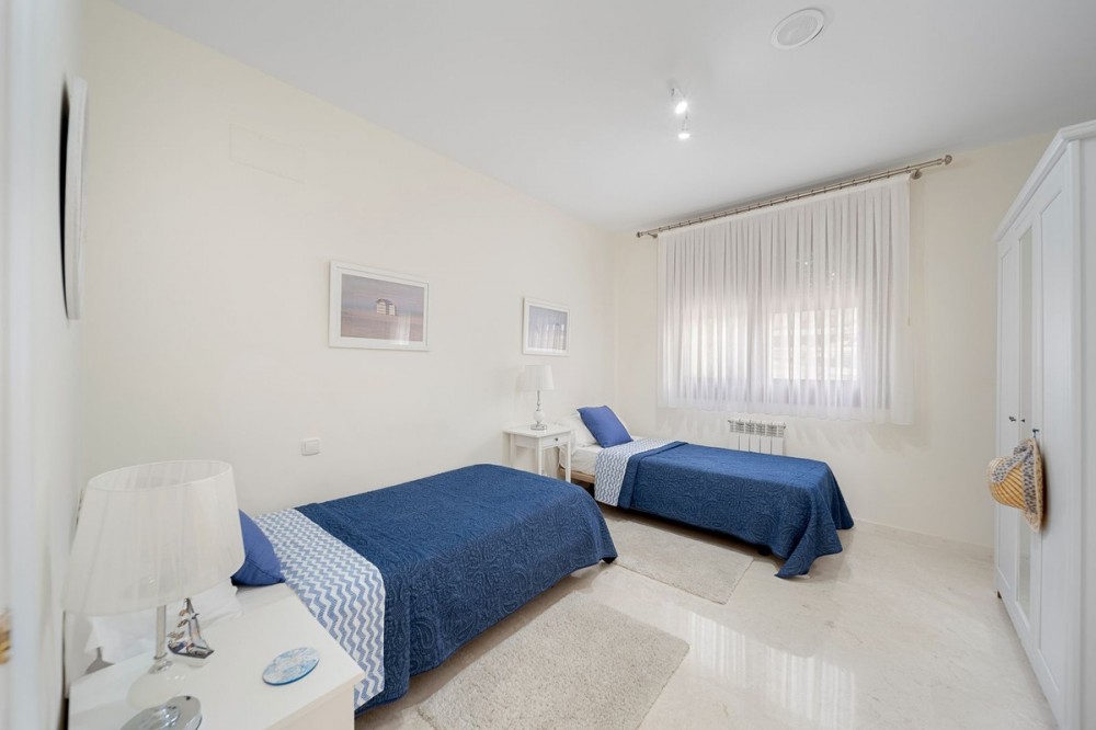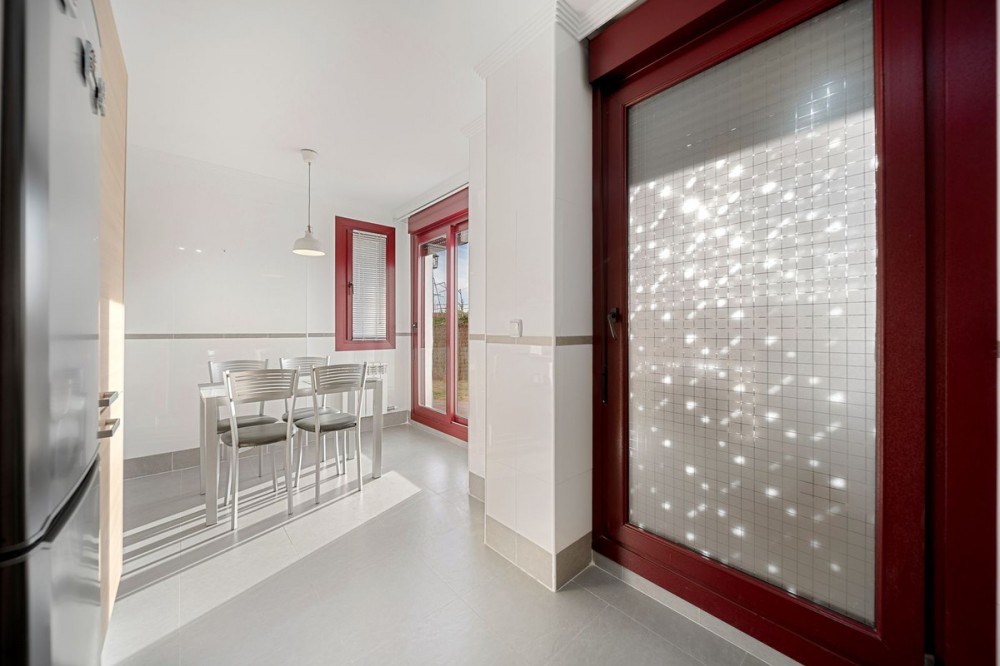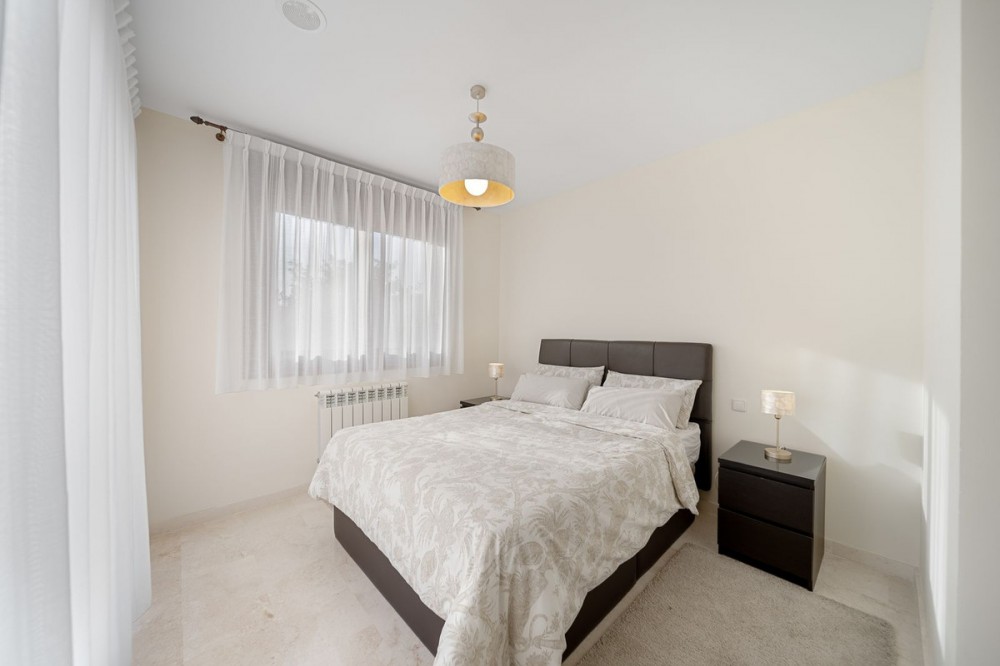 - "SPACIOUS AND ELEGANT GROUNDFLOOR FURNISHED IN CASARES COSTA GOLF" ¡Discover your new home in this spectacular two bedroom apartment, ideal for both vacation and permanent residence! With an interior built area of 127.50 m 2, a porch of 11.50 m2 and a garden of 95 m2, this fully furnished apartment stands out for its excellent distribution, which offers spaciousness and luminosity in every corner. The two large bedrooms have fitted wardrobes, and the two full bathrooms, one with shower and the other with whirlpool tub, provide the comfort you deserve. Enjoy the spacious and bright kitchen, perfect for preparing your favorite dishes. The living-dining room opens onto a charming terrace with porch and garden facing south and west, where you can relax and enjoy the sun. In addition, the property includes a parking space and a storage room, facilitating your day to day. The comforts do not end here. The property has two communal swimming pools surrounded by lush well maintained gardens, 24 hour security and access to a 9 hole golf course. You will also have a gym and restaurant nearby. Located next to the prestigious resort Finca Cortesín and a few minutes from the best beaches and golf courses, this apartment is a unique opportunity that you will not want to miss. ¡ Come see it and fall in love with your new home!