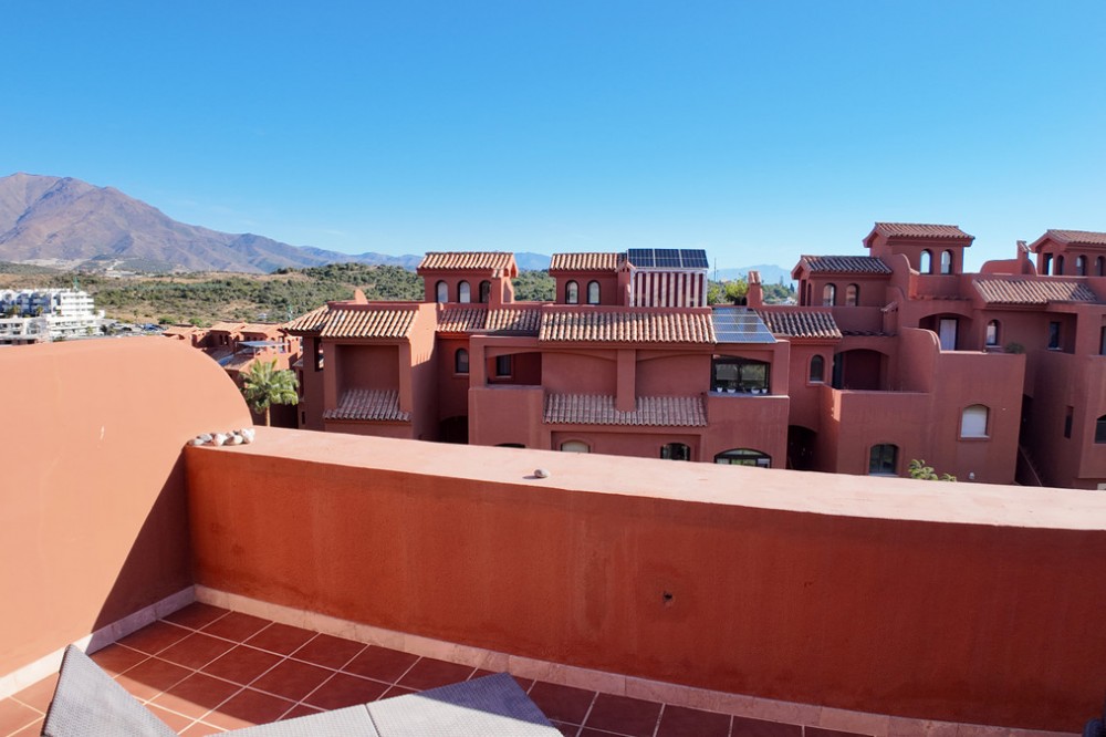 - Bright, furnished triplex apartment located in the Costa Galera development, a quiet area surrounded by greenery, just 10 minutes from Estepona's city center and a 5-minute walk from Playa Galera and the Estepona Coastal Corridor. Your dream location on the Costa del Sol awaits. Distributed over 3 floors: a living-dining room with an open-plan kitchen equipped with all appliances, a laundry room (with a large-capacity electric water heater and dryer), 2 spacious bathrooms (one en suite), two bedrooms, and marble floors. Central air conditioning. It has three terraces, with different orientations, to enjoy the sun at any time of day, and a large solarium on the upper floor, ideal for installing a jacuzzi (three of them with sea and mountain views). Garage and storage room included. Tropical gardens and communal pools. Close to golf courses (Duquesa Golf, Finca Cortesín, Estepona Golf), supermarkets and services 5 minutes away, Estepona Center 10 minutes, Manilva 7 minutes, Sotogrande 15 minutes, and 50 minutes from Malaga Airport.Bright, furnished triplex apartment located in a quiet residential area , Costa Galera Urbanitation, surrounded by greenery, just 10 minutes from the Center of Estepona and a 5-minute walk from the Galera Beach and Coastal Corredor de Estepona.. Your dream on The Costa del Sol await you. Parking and storage included. Well-maintained gardens and communal pools. Close to golf courses, fron 5 minutes fron supermarkets, and services, 10 minutos fron Estepona Center, 10 from Manilva and 50 minutes from Malaga Airport. Ready to move in! The abbreviated information document is available. Fees: taxes (ITP or VAT + AJD) + notary registration fees, COP