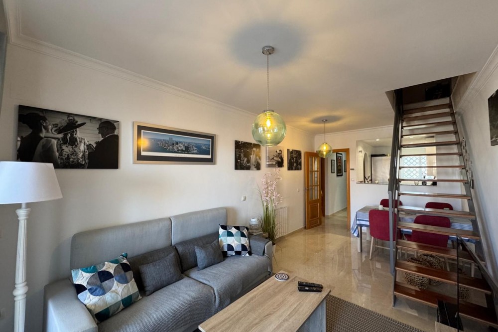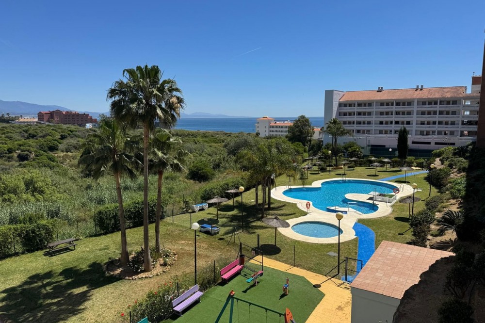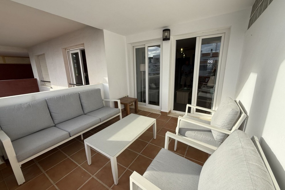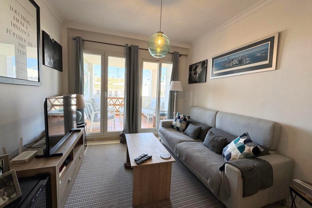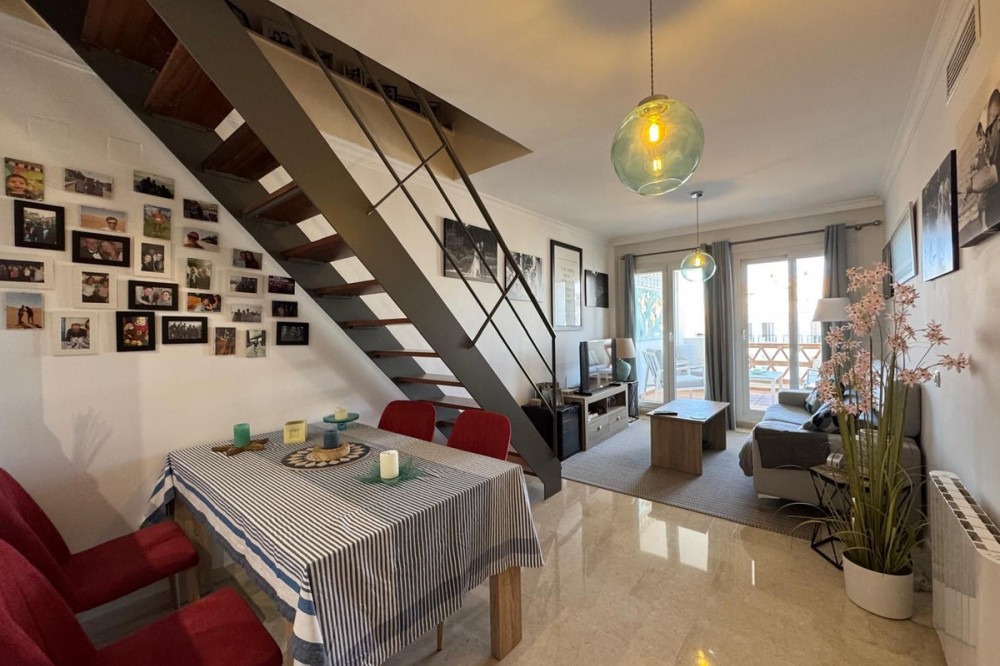 - Exclusive 3-Bedroom Duplex Penthouse in Aldea Hills, Manilva – Walking Distance to Aldea Beach Looking for sun, sea, and space? This stunning duplex penthouse in Aldea Hills (Manilva) is just a 2-minute walk from Aldea Beach. Simply cross the roundabout and you’ll find yourself with your feet in the sand. The property is part of a well-maintained gated community offering lush tropical gardens, two swimming pools (one for children), two tennis/padel courts, and a large, fully equipped playground where kids can play safely all day long. Within the complex, you’ll also find a small supermarket, a restaurant, and even a veterinary clinic – ideal for families with pets or for those who enjoy the convenience of having everything close by. Inside, the home offers 128 m² of built area, a cozy covered terrace of 11 m², and a spacious 21 m² solarium with breathtaking views of the Mediterranean Sea and the Rock of Gibraltar. The layout is practical and welcoming: On the lower floor of the duplex, there are two bedrooms with built-in wardrobes, a recently renovated bathroom, and a guest toilet with a washing machine. The semi-open kitchen connects beautifully to the living area, creating a bright and inviting space. The kitchen is brand new and fully equipped with an induction hob, oven, dishwasher, large fridge, and freezer. The living room is comfortably furnished with a dining table, sofas, and television, and opens directly onto the covered terrace, furnished with outdoor furniture for dining, relaxing, and enjoying the sun. On the upper floor, you’ll find the third bedroom with en-suite bathroom and direct access to the furnished solarium, where you can enjoy the sun and the panoramic views all day long. The property is sold fully furnished and includes a private underground parking space. Another great advantage: the community fee is just €125 per month – exceptionally low for a three-bedroom apartment. Rubbish collection is included in the community fee, keeping running costs very low. Aldea Beach is literally across the street and is famous for its charming chiringuito, delicious Mediterranean cuisine, and comfortable sunbeds. From here, the coastal promenade stretches for kilometres, all the way to Estepona and even Marbella – perfect for a morning stroll or a relaxing bike ride along the sea. Within walking distance, you’ll also find the vibrant marina of La Duquesa, with its numerous restaurants, cozy bars, and live music – the perfect spot to enjoy the Mediterranean atmosphere, day or night. Why Manilva? Manilva is one of the fastest-growing areas on the Costa del Sol. While Estepona and Marbella are already well established, Manilva still offers affordable prices, strong investment potential, and a relaxed Mediterranean lifestyle. Prime location – between Málaga and Gibraltar, with excellent connections via highway and coastal road. Authentic charm – surrounded by vineyards, beaches, and picturesque marinas. Smart investment – rising property values thanks to new developments and growing international demand. Life by the sea – 7.8 km of coastline, countless chiringuitos, and a promenade stretching to Estepona and Marbella. In short: this duplex penthouse in Aldea Hills combines sun, sea, luxury, and comfort – and represents an excellent investment in an area with great future potential. Highly recommended!