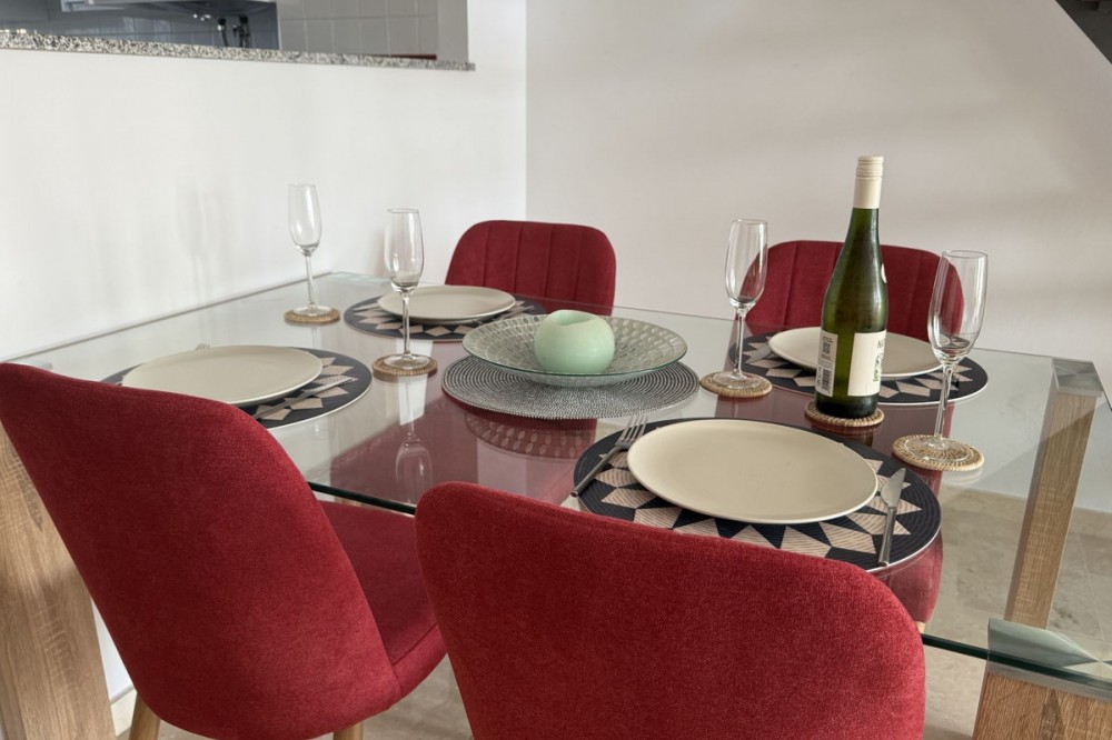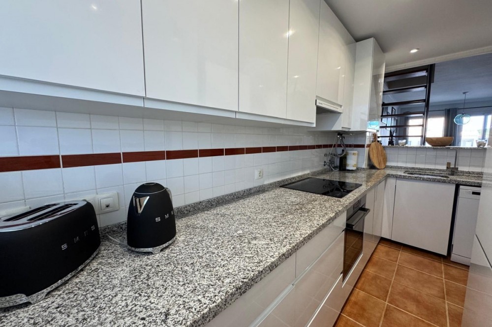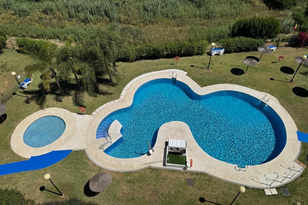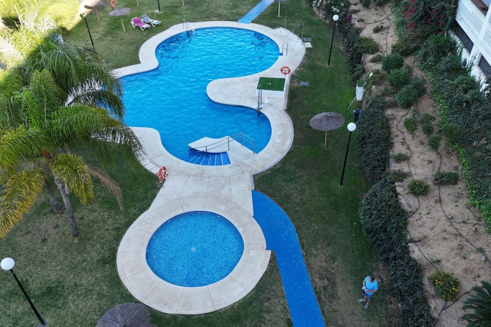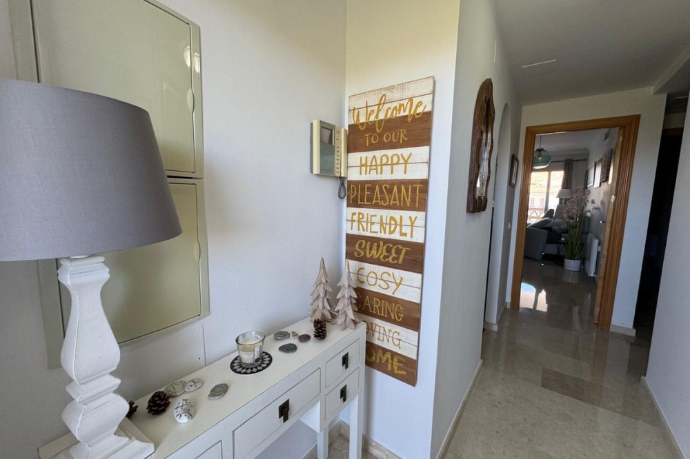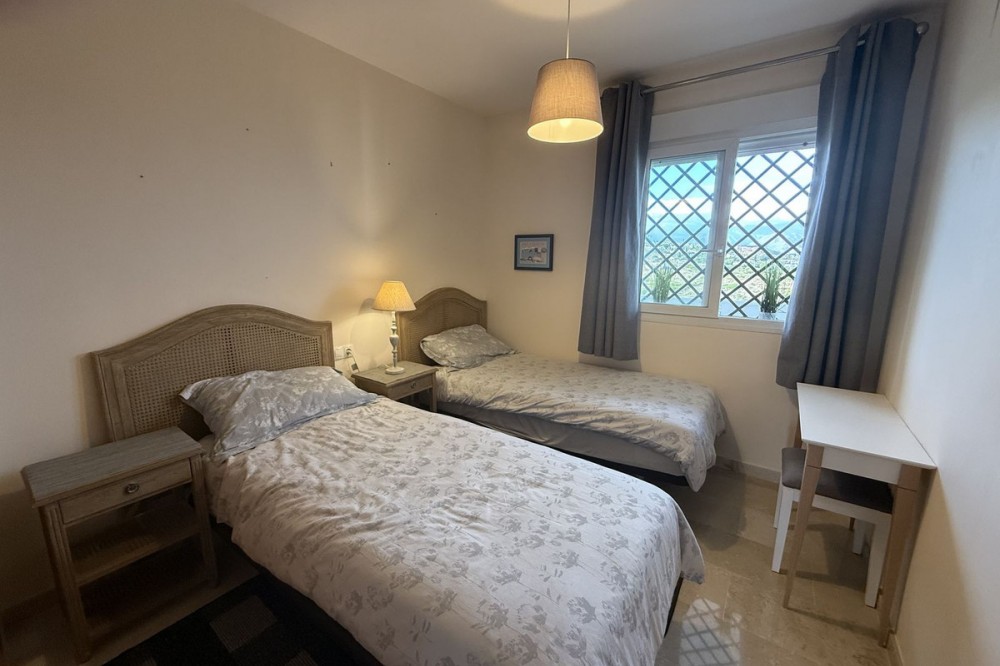 - Exclusive 3-Bedroom Duplex Penthouse in Aldea Hills, Manilva – Walking Distance to Aldea Beach Looking for sun, sea, and space? This stunning duplex penthouse in Aldea Hills (Manilva) is just a 2-minute walk from Aldea Beach. Simply cross the roundabout and you’ll find yourself with your feet in the sand. The property is part of a well-maintained gated community offering lush tropical gardens, two swimming pools (one for children), two tennis/padel courts, and a large, fully equipped playground where kids can play safely all day long. Within the complex, you’ll also find a small supermarket, a restaurant, and even a veterinary clinic – ideal for families with pets or for those who enjoy the convenience of having everything close by. Inside, the home offers 128 m² of built area, a cozy covered terrace of 11 m², and a spacious 21 m² solarium with breathtaking views of the Mediterranean Sea and the Rock of Gibraltar. The layout is practical and welcoming: On the lower floor of the duplex, there are two bedrooms with built-in wardrobes, a recently renovated bathroom, and a guest toilet with a washing machine. The semi-open kitchen connects beautifully to the living area, creating a bright and inviting space. The kitchen is brand new and fully equipped with an induction hob, oven, dishwasher, large fridge, and freezer. The living room is comfortably furnished with a dining table, sofas, and television, and opens directly onto the covered terrace, furnished with outdoor furniture for dining, relaxing, and enjoying the sun. On the upper floor, you’ll find the third bedroom with en-suite bathroom and direct access to the furnished solarium, where you can enjoy the sun and the panoramic views all day long. The property is sold fully furnished and includes a private underground parking space. Another great advantage: the community fee is just €125 per month – exceptionally low for a three-bedroom apartment. Rubbish collection is included in the community fee, keeping running costs very low. Aldea Beach is literally across the street and is famous for its charming chiringuito, delicious Mediterranean cuisine, and comfortable sunbeds. From here, the coastal promenade stretches for kilometres, all the way to Estepona and even Marbella – perfect for a morning stroll or a relaxing bike ride along the sea. Within walking distance, you’ll also find the vibrant marina of La Duquesa, with its numerous restaurants, cozy bars, and live music – the perfect spot to enjoy the Mediterranean atmosphere, day or night. Why Manilva? Manilva is one of the fastest-growing areas on the Costa del Sol. While Estepona and Marbella are already well established, Manilva still offers affordable prices, strong investment potential, and a relaxed Mediterranean lifestyle. Prime location – between Málaga and Gibraltar, with excellent connections via highway and coastal road. Authentic charm – surrounded by vineyards, beaches, and picturesque marinas. Smart investment – rising property values thanks to new developments and growing international demand. Life by the sea – 7.8 km of coastline, countless chiringuitos, and a promenade stretching to Estepona and Marbella. In short: this duplex penthouse in Aldea Hills combines sun, sea, luxury, and comfort – and represents an excellent investment in an area with great future potential. Highly recommended!