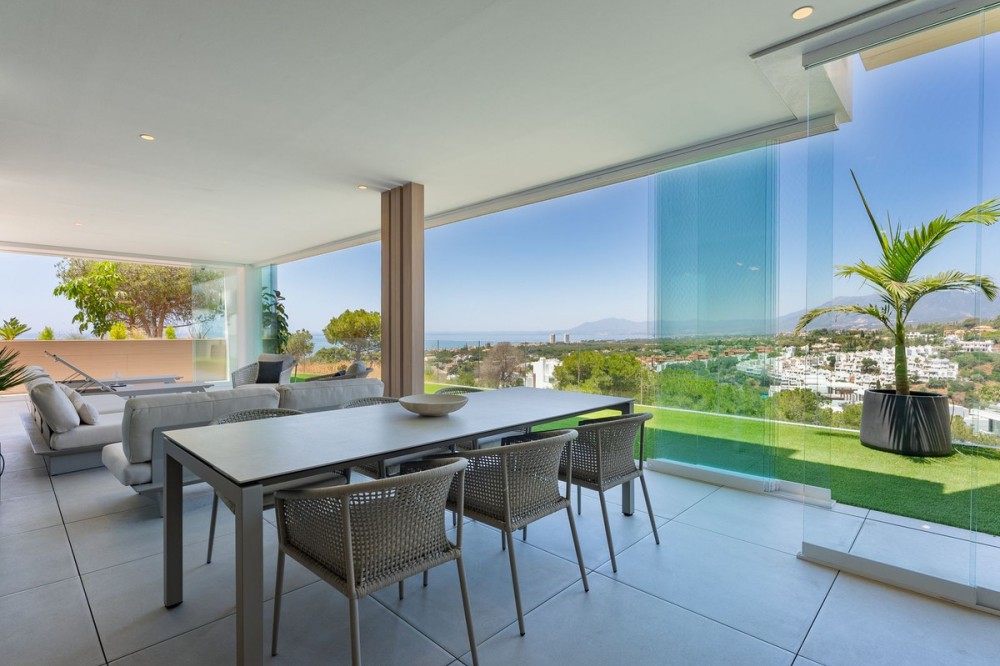 - Unique property located in one of the most exclusive Boutique complexes in Marbella East, Marbella Sunset, right above the UNESCO protected Artola sand dunes and just a few steps from the golf course. Closed residential complex consisting of only 14 homes of which this one has a privileged position as it is located on the best corner offering unparalleled privacy and enviable views. It has been customized from the beginning of construction with strict supervision of improvement works. It has a very practical distribution emphasizing comfort, residents' privacy, and the use of Mediterranean light. The connection of interior spaces with its spacious terraces is also possible thanks to the high-quality floor-to-ceiling windows. The stunning views of the Mediterranean Sea will follow you around every corner of the spacious apartment. It consists of 3 bedrooms, 2 bathrooms, and an elegant guest toilet. The master bedroom has direct access to a very private part of the terrace and garden. Part of the terrace is glazed with tinted safety glass panels, giving it an even more special touch. Fully equipped kitchen with all high-end appliances from the Siemens brand, including a wine cellar and ice machine. The finishes in noble materials such as stone and wood have all been chosen as an extra touch by the property, there is no comparison with the standard of the original promoter. Underfloor heating, individualized air conditioning by rooms, designer LED lighting, built-in wardrobes, and ample storage space are just examples of features that will satisfy the most demanding customer. The property offers the advantages of being part of a closed residential complex with Mediterranean pools and gardens, while at the same time conveying the feeling of a villa with a private garden, very spacious terraces in a privileged natural environment, and the best sunsets in Marbella. It includes two parking spaces in the underground garage and a storage room. 10-minute drive from Marbella city center. A few steps from Cabopino golf course. A few minutes from the best beaches of the Costa del Sol and the Cabopino harbor with its restaurants, cafes, shops, and sports and leisure facilities. 30 minutes from Malaga International Airport and the capital of the Costa del Sol with all its historical, cultural, and gastronomic offerings.
