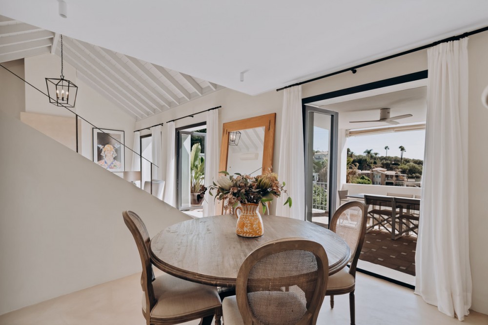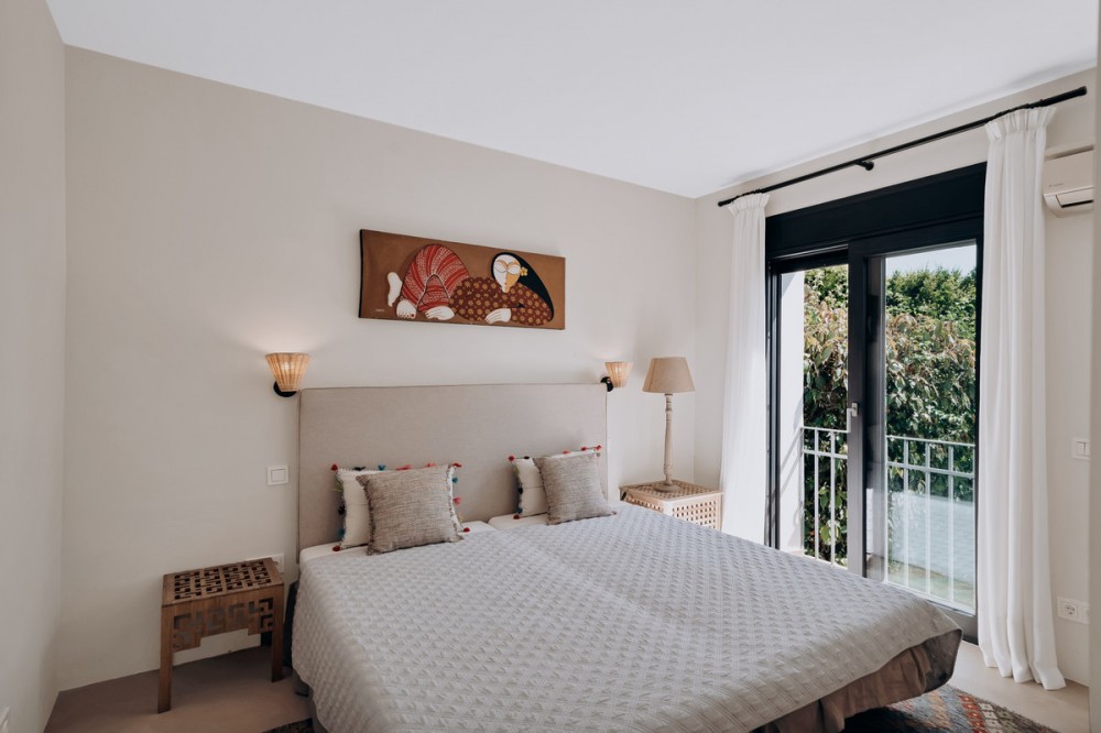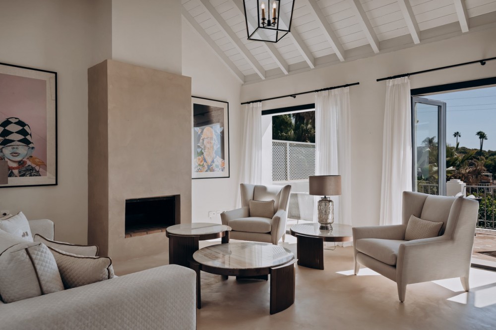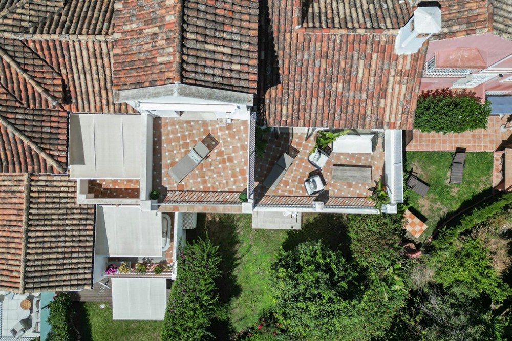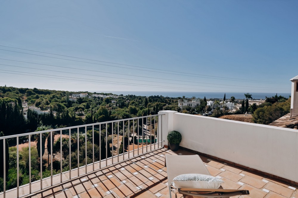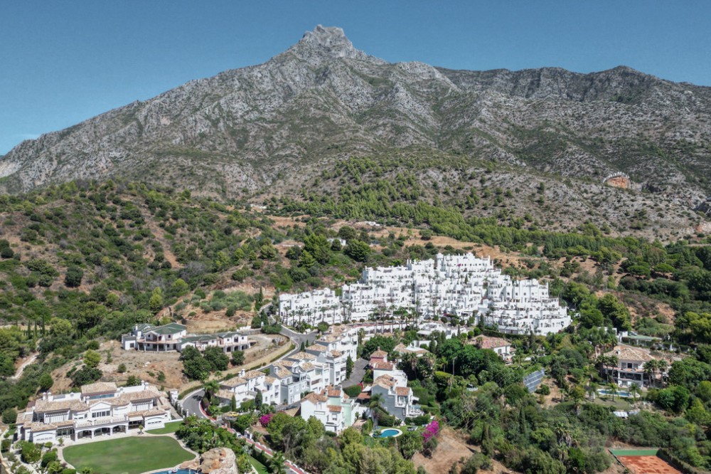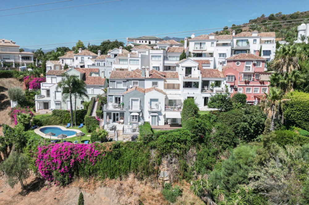 - Located in the exclusive Marbella Hill Village, within the prestigious gated Marbella Hill Club, this elegant townhouse offers a rare combination of charm, privacy, and panoramic views. Just five minutes from Marbella Club, Puente Romano, and the Golden Mile, it enjoys one of the most privileged addresses on the Costa del Sol, nestled between the Mediterranean Sea and La Concha mountain. The entrance sets the tone with a private patio shaded by orange trees and flowering plants, creating a welcoming Mediterranean atmosphere. Inside, the main living area impresses with high ceilings, a real fireplace, and uninterrupted sea views from every window and even from the sofa. The modern kitchen, fitted with premium international brands, connects seamlessly to the dining room and opens onto a south-facing terrace with remote-controlled shades – ideal for enjoying Marbella’s mild climate year-round. Upstairs, the master suite features a stylish ensuite bathroom, a spacious walk-in closet, and a large terrace with stunning sea views. On the garden level, three additional bedrooms and two bathrooms open to a private garden also overlooking the Mediterranean. This floor is completed by a cinema room, storage space, and a laundry room – ensuring both comfort and practicality. With approximately 148 m² of interior space, 40 m² of terraces, and a 150 m² private garden, the property is perfectly oriented to the south-southeast, guaranteeing abundant natural light, sunny mornings, and mild winters. The home is offered ready to move into, with the flexibility to purchase furnished or unfurnished. As part of Marbella Hill Club, residents benefit from 24-hour private security and controlled access, ensuring peace of mind in one of Marbella’s most desirable enclaves. World-class golf courses, exclusive beaches, fine dining, luxury shopping, and the vibrant nightlife of Puerto Banús are all just a short drive away. Whether as a permanent residence, a holiday retreat, or a secure investment, this townhouse offers the best of Marbella living: elegance, comfort, and the perfect balance between sea and mountain.