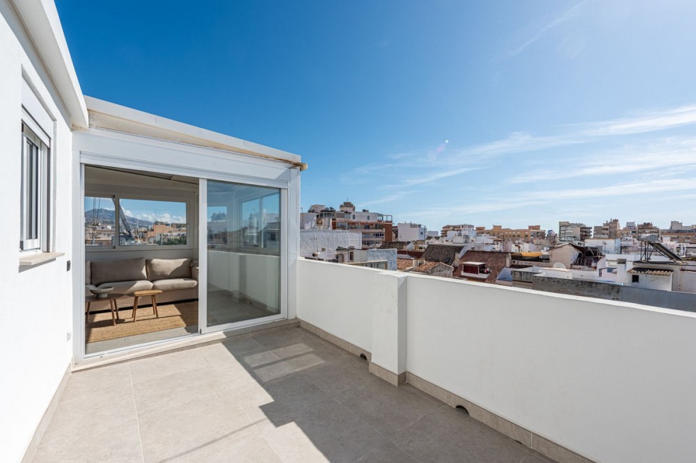 - Outstanding 1-Bed, 1-Bath Penthouse in the Heart of Fuengirola Discover this exceptional top-floor penthouse, perfectly situated in the vibrant heart of Fuengirola. Boasting 1 spacious bedroom and 1 modern bathroom, this charming property offers stunning views over the town's rooftops and is just 200 meters from the beach. Step outside and you'll find some of the best restaurants right at your doorstep, along with all the city's conveniences within easy walking distance — including supermarkets, cozy cafés, and the train station. Whether you're looking for a stylish holiday retreat, a rental investment, or a permanent home in one of Costa del Sol’s most sought-after locations, this penthouse offers the perfect blend of comfort, convenience, and coastal living.