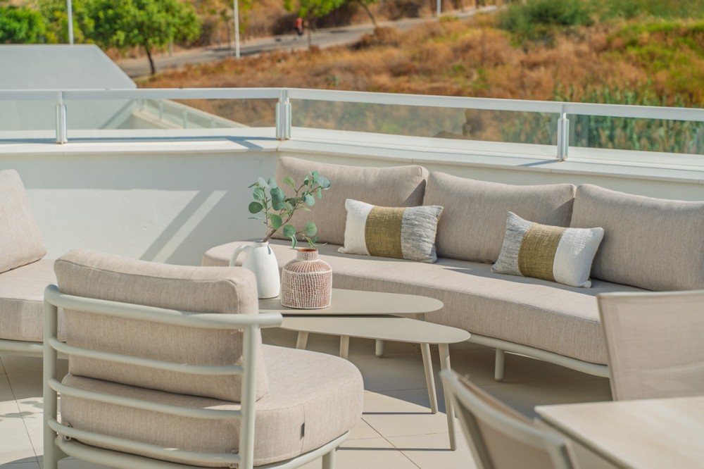 - Discover this stunning second-floor duplex penthouse, offering breathtaking panoramic views of the sea and mountains. The home features a spacious living room terrace and a rooftop terrace with a private solarium and elegant white pergola, perfect for enjoying the Mediterranean sun in complete privacy. The penthouse includes three bedrooms and three bathrooms, a private parking space, and a storage room, ensuring comfort and convenience for the whole family. Residents can enjoy a beautiful communal pool to relax and soak up the sun. The exclusive La Familia clubhouse provides access to a restaurant, indoor swimming pool, and gym. The complex itself also offers a gym and coworking space, combining luxury living with modern lifestyle amenities. Centrally located in Estepona, the property is just 5 minutes by car from the beach and nearby beach clubs. For nature and family fun, the Selwo Aventura wildlife park is a short drive away. Estepona is 10 minutes, Marbella 15 minutes, and Malaga Airport approximately 50 minutes. This penthouse offers the perfect combination of privacy, elegance, space, and a Mediterranean lifestyle with spectacular views.