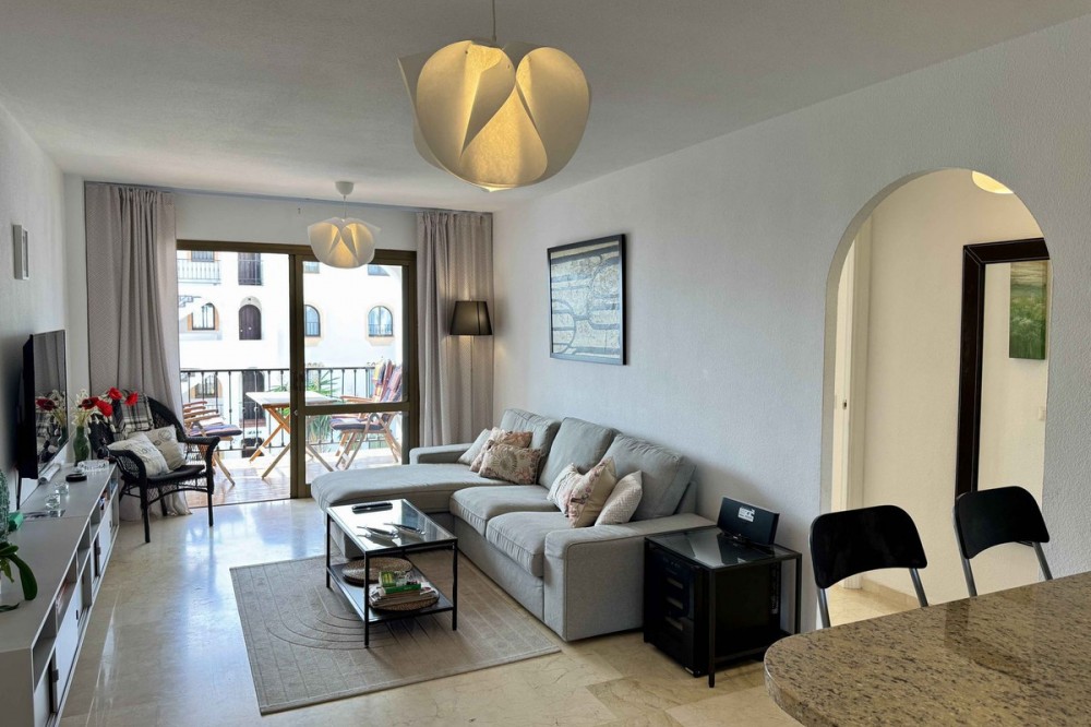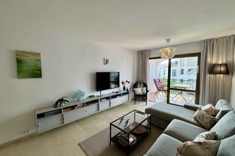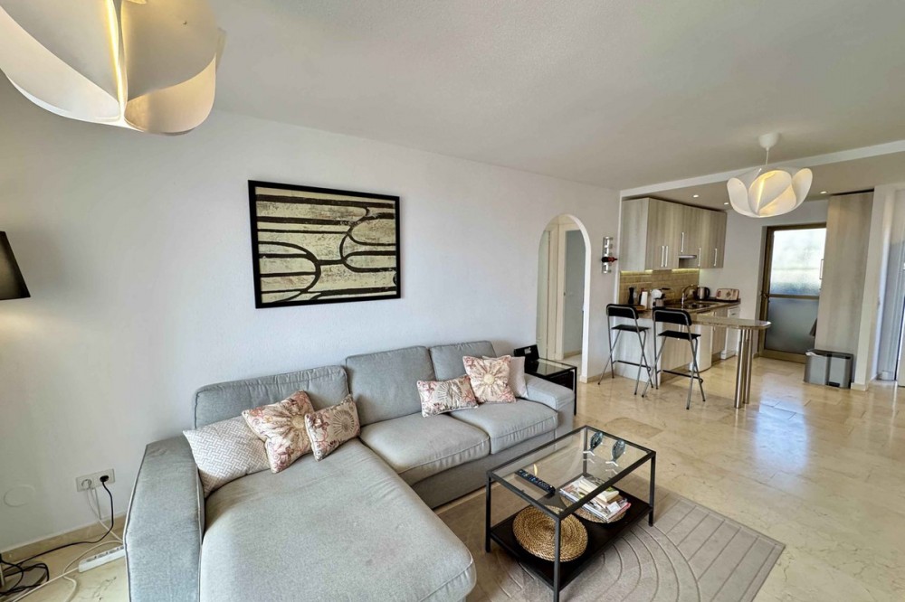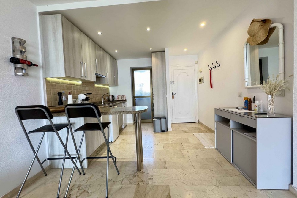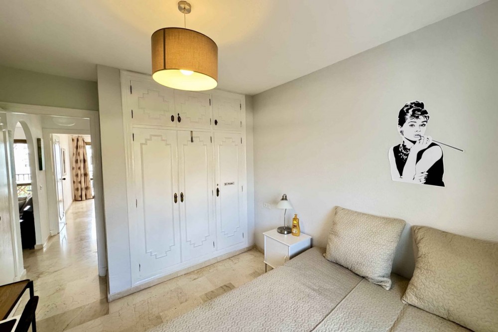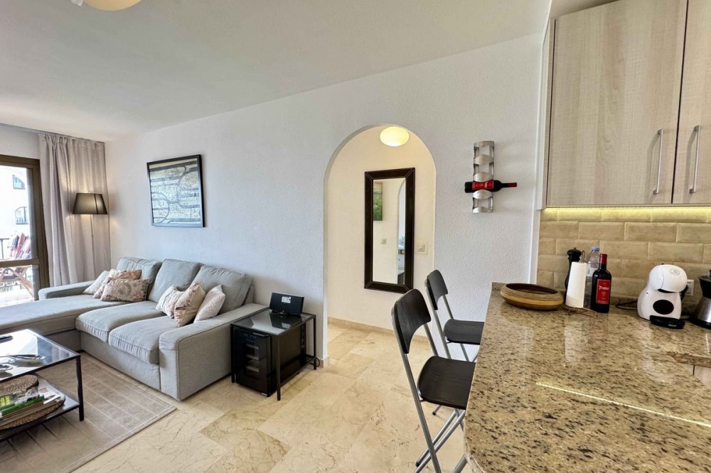 - LOCATION LOCATION LOCATION !!!! Only a 4 minute walk to the beach; super markets; restaurants and shops of Riviera Del Sol you can find this beautifully presented 2 bedroom 1 bathroom apartment ! Situated on the first floor - only a few steps up from the ground floor level - no lift- of an established and very well maintained community that just has been repainted in the beginning of this year and 50 meters from the R11 Sport Club that is known for the amazing gym; groups lessons; tennis and paddle facilities . The apartment is very well kept ; has a fully fitted open plan kitchen, air conditioning in the master bedroom and is sold fully furnished. The kitchen and bathroom have been recently renovated. Next to the kitchen there is a utility room with the boiler and washing machine. The terrace has an open view and with its south / west orientation all day sun. The communal gardens and lovely pool are very well maintained and the community fees are low. There is also plenty of parking in the area around the complex. When you’re looking for a sunny holiday home this apartment ticks every box. Don’t miss this opportunity to own a slice of paradise in a top location only 25 min driving from Malaga airport, 10 minutes from Fuengirola and from Marbella centre. Viewings highly recommended – this opportunity won’t stay on the market for long!