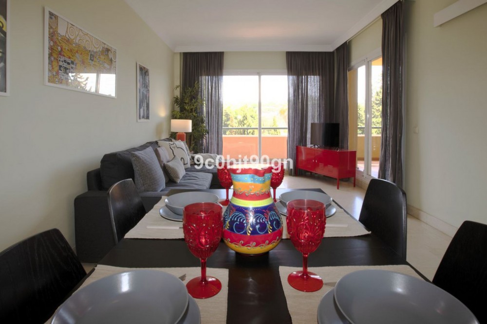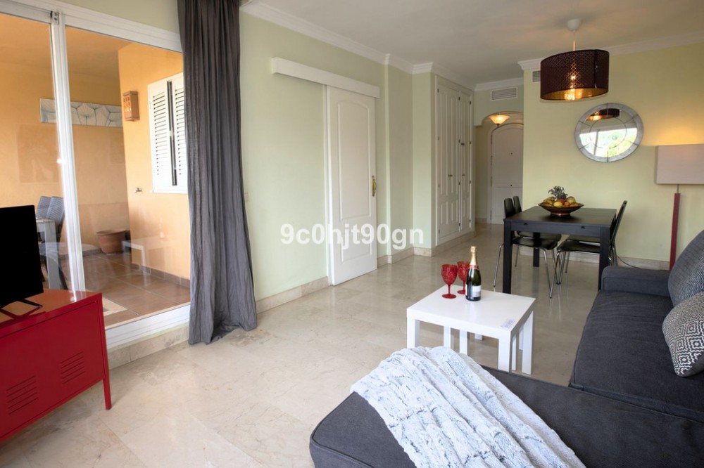 - Charming One-Bedroom Apartment in Los Patios de Santa Maria Golf, Elviria Nestled within the prestigious Los Patios de Santa Maria Golf community in Elviria, this beautifully appointed one-bedroom apartment offers a perfect blend of comfort, style, and tranquility. Ideal for both full-time living and as a holiday retreat, this property is set within a sought-after location with breathtaking views over the lush golf course and surrounding landscapes. Spacious Living Area: The open-plan living room is filled with natural light, offering a relaxing space that seamlessly connects with the dining area and a fully equipped kitchen. Bright Bedroom: The generously sized bedroom is a peaceful sanctuary, complete with built-in wardrobes and access to the terrace. Private Terrace: Step outside onto your private terrace and enjoy panoramic views of the well-maintained gardens and the beautiful Santa Maria Golf course. Swimming Pool: The complex has 2 swimming communal pools - one surrounded with grass and another tiled up, both perfect for unwinding on sunny days. Located just a short drive from the sandy beaches of Elviria, this apartment is ideally positioned to enjoy everything the Costa del Sol has to offer. Whether you’re seeking a relaxed beach lifestyle, world-class dining, or nearby shopping and leisure, you’ll find it all within easy reach. Golf Course Access: Direct access to the Santa Maria Golf course, ideal for golf enthusiasts and those who enjoy an active lifestyle.