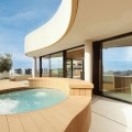 - Discover a unique 3-bedroom middle floor at the corner of the building, where no one lives above you—offering privacy, light, and a peaceful ambiance rarely matched. The living room flows directly into the main bedroom through a sliding glass wall, allowing you to open up the space fully when you choose or close it for intimacy. With an extended living area that stretches to a side terrace framed in full-height glass, you’ll enjoy sweeping Mediterranean views from multiple perspectives. Throughout, rich wooden floors are complemented by real wood accents along the walls and ceilings, adding warmth, texture and natural character to every room. Step outside and sink into your private jacuzzi under the stars in your own outdoor sanctuary. This home combines architectural elegance with resort-level living, all wrapped in a layout that feels expansive, airy, and absolutely exceptional.