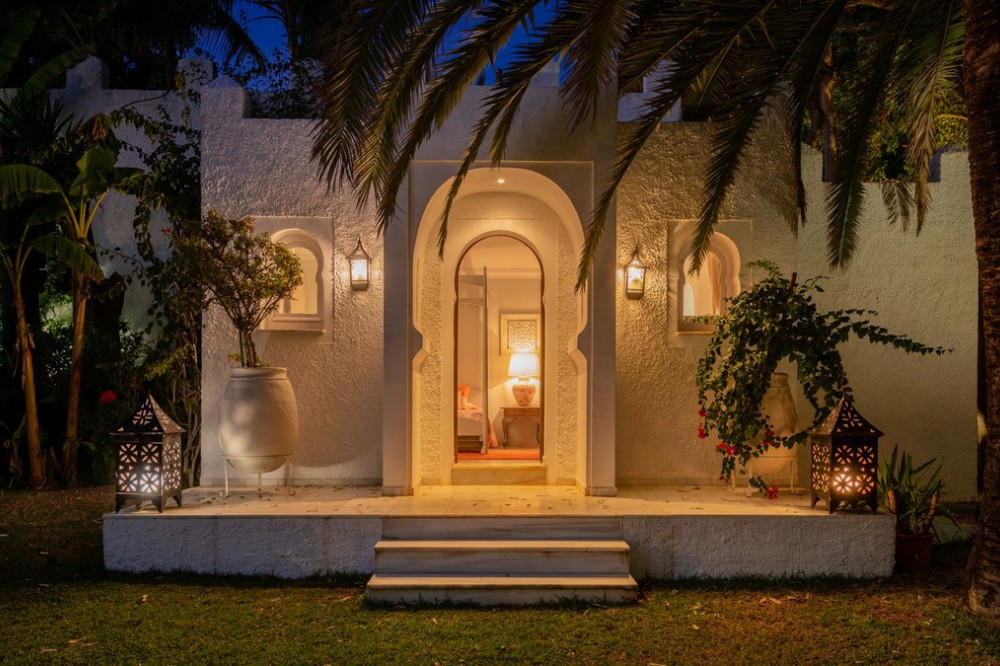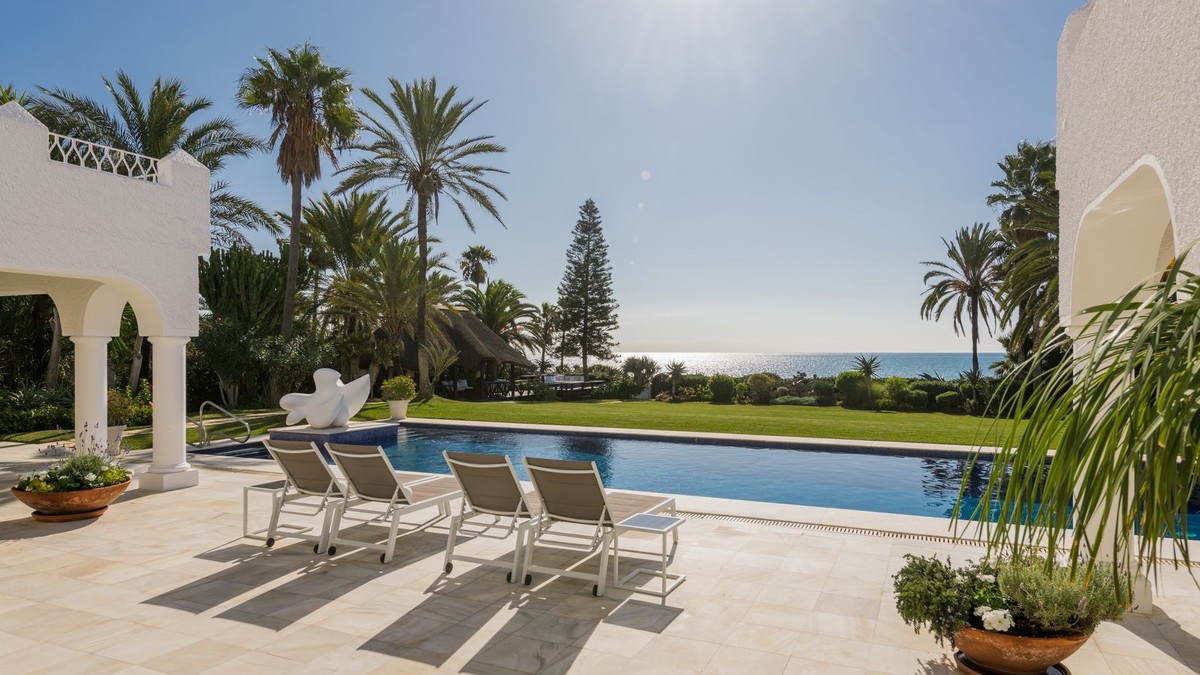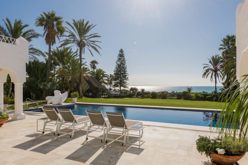 • With its spectacular setting, beautiful mature grounds, luxurious villa and of course unique pedigree, this is truly a unique property in Marbella. There are many impressive villas occupying prime frontline beach locations along the Marbella shoreline, but along the sandy beaches of Los Monteros – the finest address on the east side of town – there is a superb property whose beachfront setting and sea views simply will never be equalled. What’s more, it’s a mansion whose very pedigree is part of the glamorous story of Marbella itself. The former home of American socialite Aline Griffit hand her husband, Luis Figueroa y Pérez de Guzmán el Bueno, Count of Romanones., Villa Annabel was the backdrop to some of Marbella's glitziest parties. She had a circle of high-powered friends that included Jackie Kennedy, Audrey Hepburn and Wallis Simpson, many of whom she hosted at this beach-front house. Marbella is full of exotic-looking villas, but few boast the glitz, mystery and intrigue are woven into the fabric of Villa Annabel, one of the area’s most extraordinary properties.  This opulent villa stands in grounds of a little more than an acre Los Monteros, one of Marbella’s most exclusive addresses. Grand and sophisticated, Villa Annabel is ideal for entertaining — especially because the interiors flow seamlessly into a vast terrace and the mature gardens beyond. Indeed, the house was the backdrop for some of Marbella’s most glamorous parties. The story of this splendid beachside villa leaps off the pages of a novel, for it was originally built for the daughter of a Spanish head of state, who settled here in favour of Madrid in the 1950s, attracted by the benevolent climate and lifestyle of Marbella. Already a burgeoning centre of refinement loved by an international set, the town provided her with the company of many of Europe, and indeed the world’s, most elegant and fascinating personages, from royals and business tycoons to top celebrities. The villa, built in privileged private proximity to the beach – a feat that can no longer be copied – stands alone in offering the most stunning views and personal experience of beach, sea, skies and privacy, surrounded as it is by extensive manicured grounds. Together, they envelop the property in a rich variety of floral and seaside tones, textures and fragrances, accompanied by the soundtrack of the sea. Not only is this a singularly beautiful spot, but it is also very private, bordered only by other large properties with extensive garden.