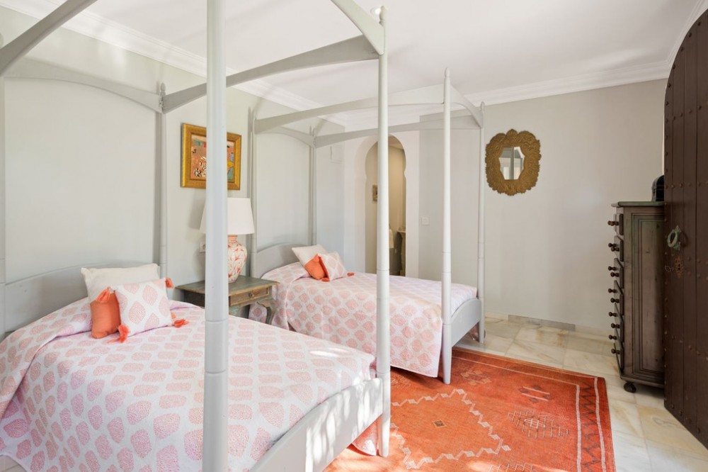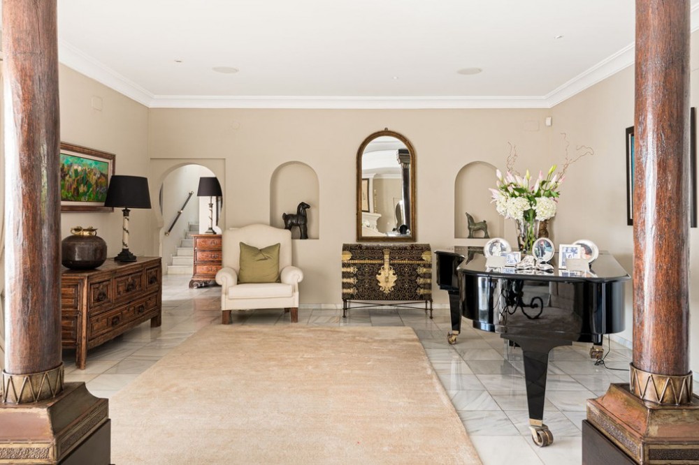 - With its spectacular setting, beautiful mature grounds, luxurious villa and of course unique pedigree, this is truly a unique property in Marbella. There are many impressive villas occupying prime frontline beach locations along the Marbella shoreline, but along the sandy beaches of Los Monteros – the finest address on the east side of town – there is a superb property whose beachfront setting and sea views simply will never be equalled. What’s more, it’s a mansion whose very pedigree is part of the glamorous story of Marbella itself. The former home of American socialite Aline Griffit hand her husband, Luis Figueroa y Pérez de Guzmán el Bueno, Count of Romanones., Villa Annabel was the backdrop to some of Marbella's glitziest parties. She had a circle of high-powered friends that included Jackie Kennedy, Audrey Hepburn and Wallis Simpson, many of whom she hosted at this beach-front house. Marbella is full of exotic-looking villas, but few boast the glitz, mystery and intrigue are woven into the fabric of Villa Annabel, one of the area’s most extraordinary properties. This opulent villa stands in grounds of a little more than an acre Los Monteros, one of Marbella’s most exclusive addresses. Grand and sophisticated, Villa Annabel is ideal for entertaining — especially because the interiors flow seamlessly into a vast terrace and the mature gardens beyond. Indeed, the house was the backdrop for some of Marbella’s most glamorous parties. The story of this splendid beachside villa leaps off the pages of a novel, for it was originally built for the daughter of a Spanish head of state, who settled here in favour of Madrid in the 1950s, attracted by the benevolent climate and lifestyle of Marbella. Already a burgeoning centre of refinement loved by an international set, the town provided her with the company of many of Europe, and indeed the world’s, most elegant and fascinating personages, from royals and business tycoons to top celebrities. The villa, built in privileged private proximity to the beach – a feat that can no longer be copied – stands alone in offering the most stunning views and personal experience of beach, sea, skies and privacy, surrounded as it is by extensive manicured grounds. Together, they envelop the property in a rich variety of floral and seaside tones, textures and fragrances, accompanied by the soundtrack of the sea. Not only is this a singularly beautiful spot, but it is also very private, bordered only by other large properties with extensive garden.