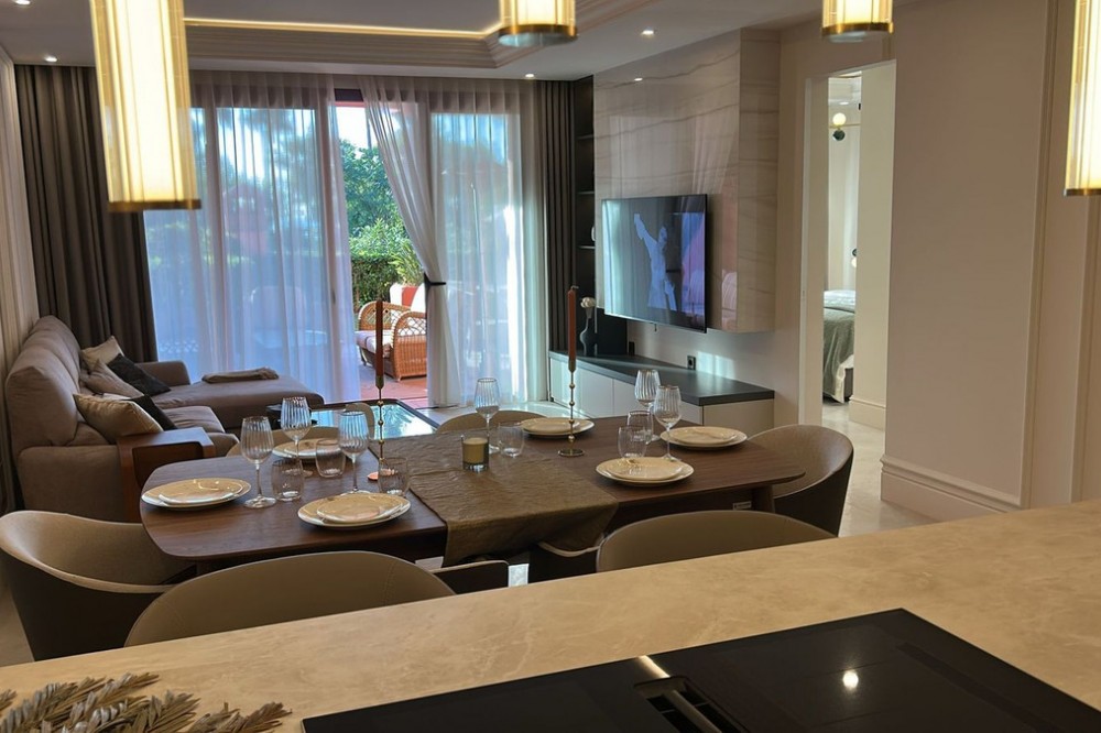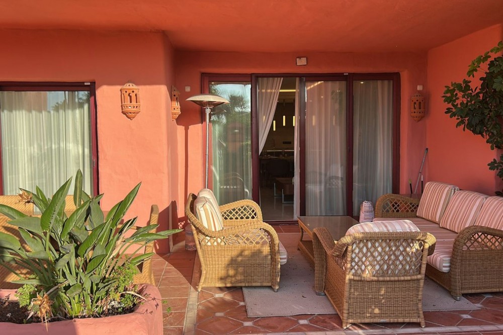- BEACHFRONT 3-BED APARTMENT ON THE NEW GOLDEN MILE This newly renovated 3-bedroom ground floor apartment is move-in ready — fully furnished and equipped with high-end finishes. Apartment boasts three bedrooms and two bathrooms, a newly designed open-plan kitchen and living area with an access to the terrace and private garden. Just steps from pristine beaches, it's located in Cabo Bermejo, a prestigious frontline beach gated community on the New Golden Mile stretching between San Pedro and Estepona. Renowned for its luxurious properties, lush tropical gardens, and stunning sea views, Cabo Bermejo offers residents exclusive amenities, including swimming pools, sauna, gym, and 24-hour security. It combines serene coastal living with proximity to world-class dining, shopping, and golf courses. Furniture, storage room, and underground parking are included.