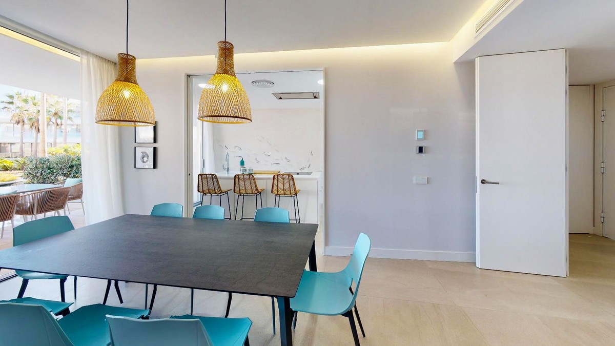 - This charming ground floor flat is located in an exclusive development in the beautiful coastal town of Estepona, known for its Andalusian charm, golden sandy beaches and relaxed atmosphere. This home features two bedrooms and two bathrooms, a spacious living room and a generous terrace. The bedrooms open onto a beautiful private garden. The integration of indoor and outdoor spaces allows you to enjoy the Mediterranean climate and views over the lush gardens of the urbanisation. Equipped with the latest amenities, the flat features state-of-the-art home automation systems and aerothermal technology to ensure energy efficiency and comfort. The kitchen is equipped with Gaggenau appliances, offering a high quality culinary experience. The materials used throughout the property are first class, which is reflected in every corner. Furthermore, this flat comes with two parking spaces and a storage room to provide additional storage space and convenience. The development offers a wide range of luxurious amenities such as a spa for total relaxation, a first class gym to keep you active, an indoor swimming pool for your all-season enjoyment and a communal pool for socialising with other residents. The coworking area is perfect for those looking for a quiet and productive workspace. Security is a priority, with a 24-hour security team available, providing peace of mind for residents and their belongings. In addition, direct access to the beach from the development allows you to enjoy the Mediterranean Sea in a matter of seconds, providing the seaside living experience you have always dreamed of. This ground floor flat in Estepona is the perfect combination of luxury, comfort and an exceptional location in a coastal town with a unique and charming atmosphere. Don't miss the opportunity to live life by the sea at its best in this privileged enclave on the Costa del Sol.