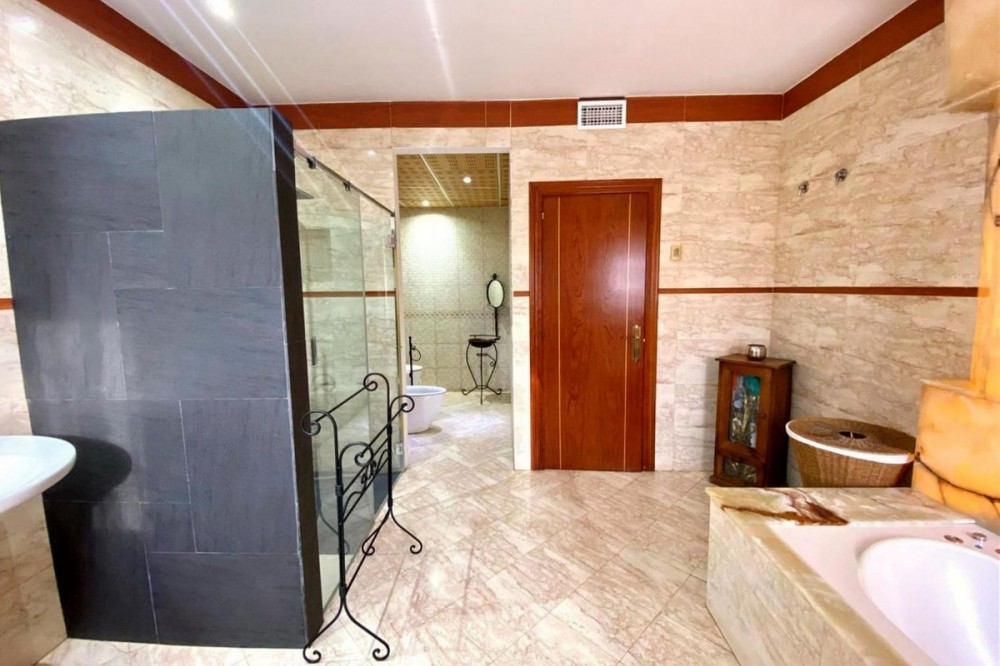 - Exclusive Villa with Panoramic Views in Benalmádena We present a spectacular detached villa located in one of the most sought-after residential areas of the Costa del Sol. This property perfectly combines elegance, spaciousness, and comfort, offering an unparalleled lifestyle in a privileged natural environment, just steps from the prestigious golf course, international schools, supermarkets, and only a few minutes from the beach. Built on a large plot of 2,238 m², the villa enjoys complete privacy, excellent orientation, and open panoramic views of the mountains and surrounding natural landscape. Exclusive Design and Bright Spaces With over 800 m² of built area, the house is spread over three levels designed to offer comfort, functionality, and quality of life: Main floor: Spacious entrance hall with large windows that fill the house with natural light. Generously sized living-dining room with fireplace and direct access to a terrace with barbecue area. Fully equipped kitchen with central island and access to the outside, ideal for outdoor dining. This floor also features three bedrooms, all with terrace access, two full bathrooms, and a guest toilet. Upper floor: Rest area consisting of a double bedroom and a master suite with walk-in closet, full bathroom with Jacuzzi, shower, double sink, and access to a private terrace with stunning panoramic views. Lower floor: Large closed garage with capacity for more than 5 vehicles, laundry room, and two multipurpose rooms. One of them has an en-suite bathroom and independent entrance, perfect for a guest apartment or office. The second is ideal for creating a gym, home cinema, or additional apartment. Private Outdoors and Chill-Out Area The outdoor area is designed to enjoy the Mediterranean climate all year round. The property offers mature gardens, large terraces, chill-out areas, space for social gatherings, and a large private pool, all surrounded by vegetation providing privacy and tranquility. Main Features: Plot: 2,238 m² 6 bedrooms and 5 bathrooms Closed garage of 343 m² for more than 5 cars Private pool and spacious gardens Marble floors and high ceilings Fully equipped kitchen with island Multiple covered and open terraces Built-in wardrobes and storage room Air conditioning Basement with multiple possibilities Panoramic views of the mountains and natural surroundings Additional Information: Year of construction: 2002 Orientation: North, South, East, and West Community fee: €250/quarter Property tax (IBI): €2,100/year Price: €1,595,000 (€1,959/m²) An exceptional property for those seeking a spacious, elegant, and exclusive villa in a privileged location on the Costa del Sol. Perfect as a main residence or high-end second home. Contact us for more information or to arrange a private visit.