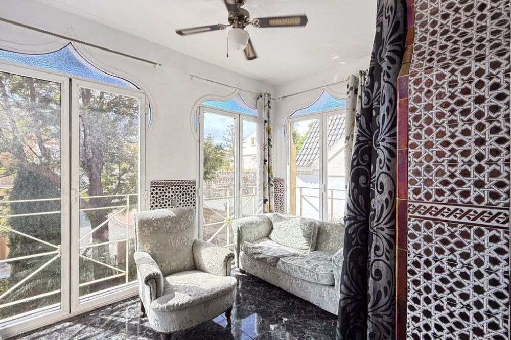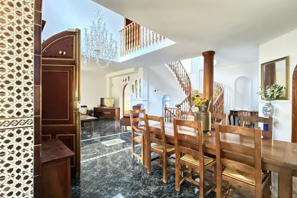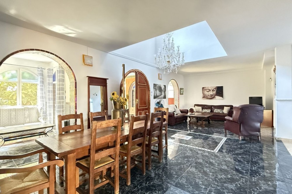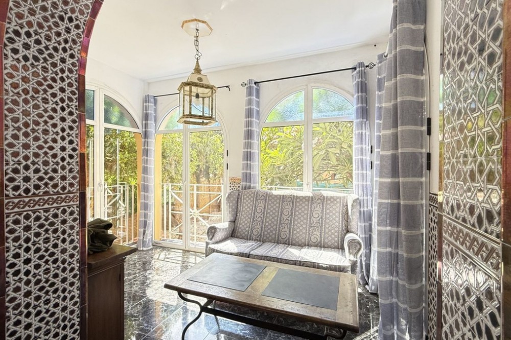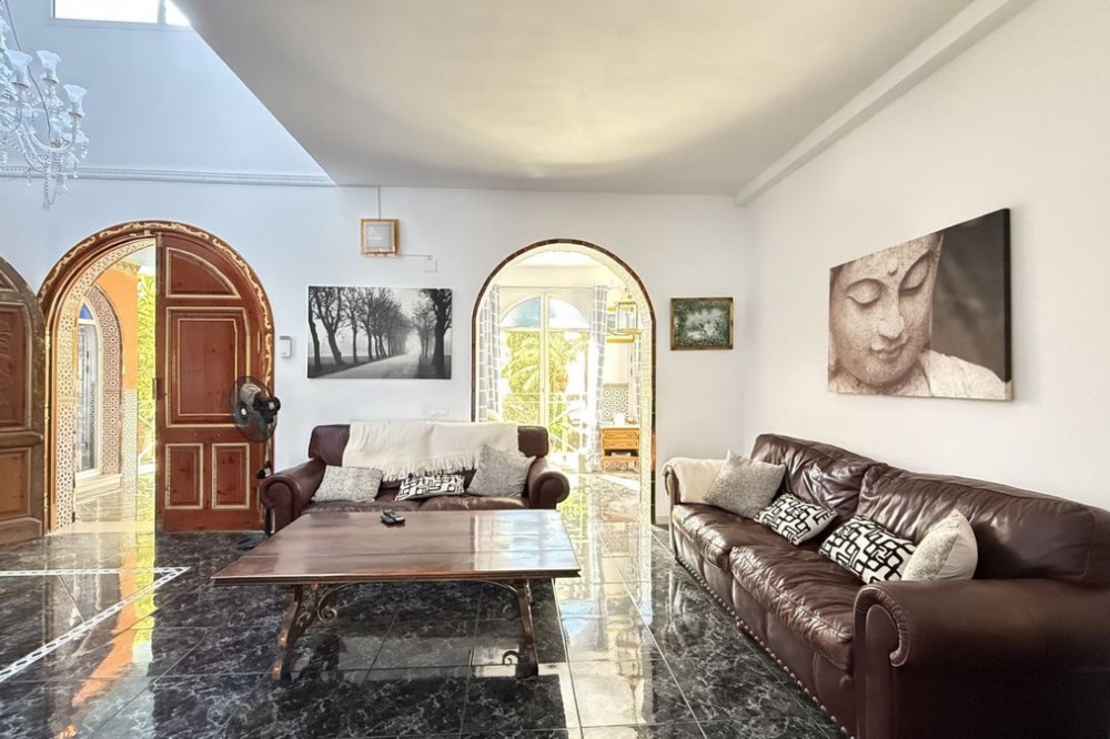 - Unique Moroccan-Style Villa with Charm, Space & Character. A truly rare opportunity to own a one-of-a-kind Moroccan-style villa, beautifully renovated (except the kitchen) with meticulous attention to detail while preserving its authentic charm. Located within walking distance to all amenities, this spacious property offers both timeless elegance and modern comfort. The villa features 5 generous double bedrooms and 4.5 bathrooms, with two of the bedrooms enjoying attached rooms ideal for a home office or study. The top two bedrooms are exceptionally large, perfect as private retreats. There is a private swimming pool, mature fruit trees. Inside, the air-conditioned villa includes a basement entertainment level with a home cinema, pool table, and table tennis area. While the kitchen awaits a personal touch, the rest of the home has been recently renovated to a high standard. The property also includes a private garage and holds a tourist rental license, adding investment potential to its unique lifestyle offering. A truly special home full of personality, space, and style ready to be enjoyed as a private residence or luxury holiday retreat or rentals.