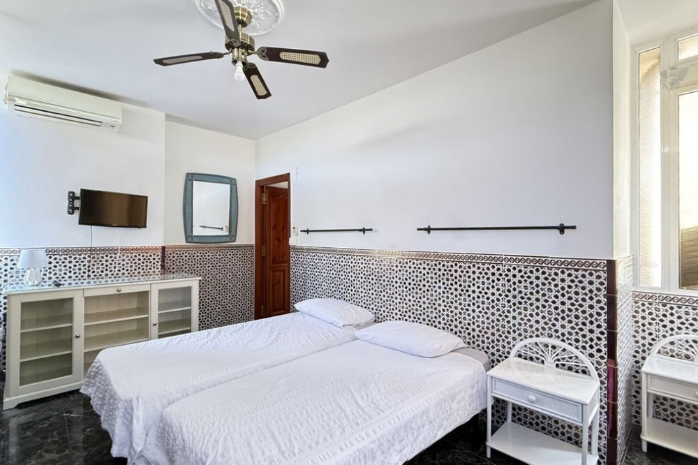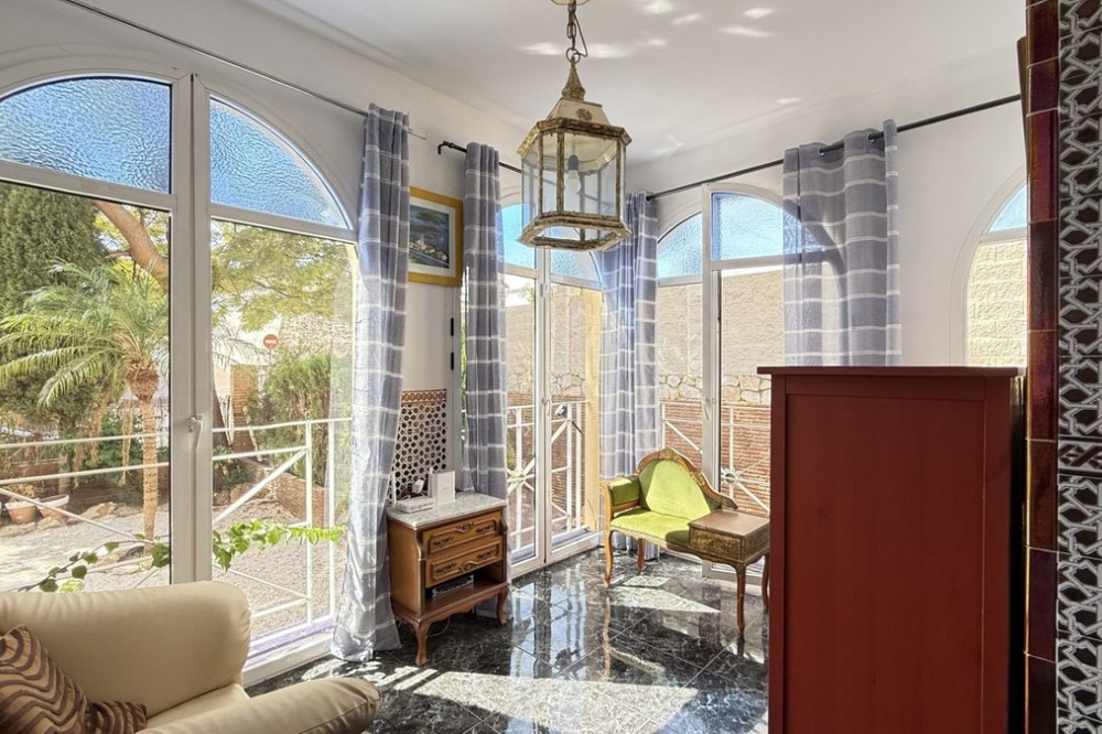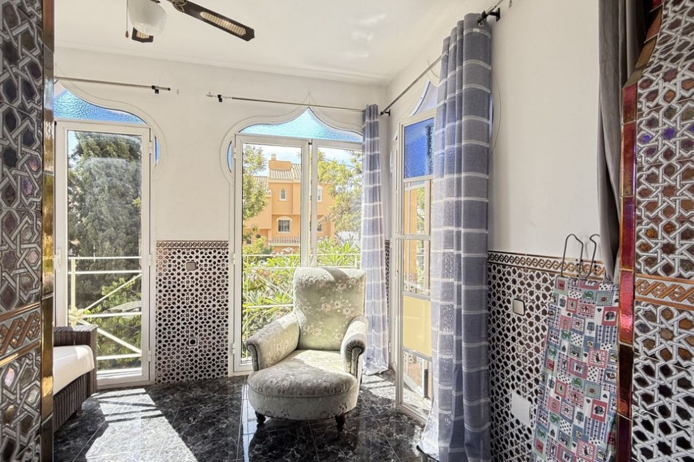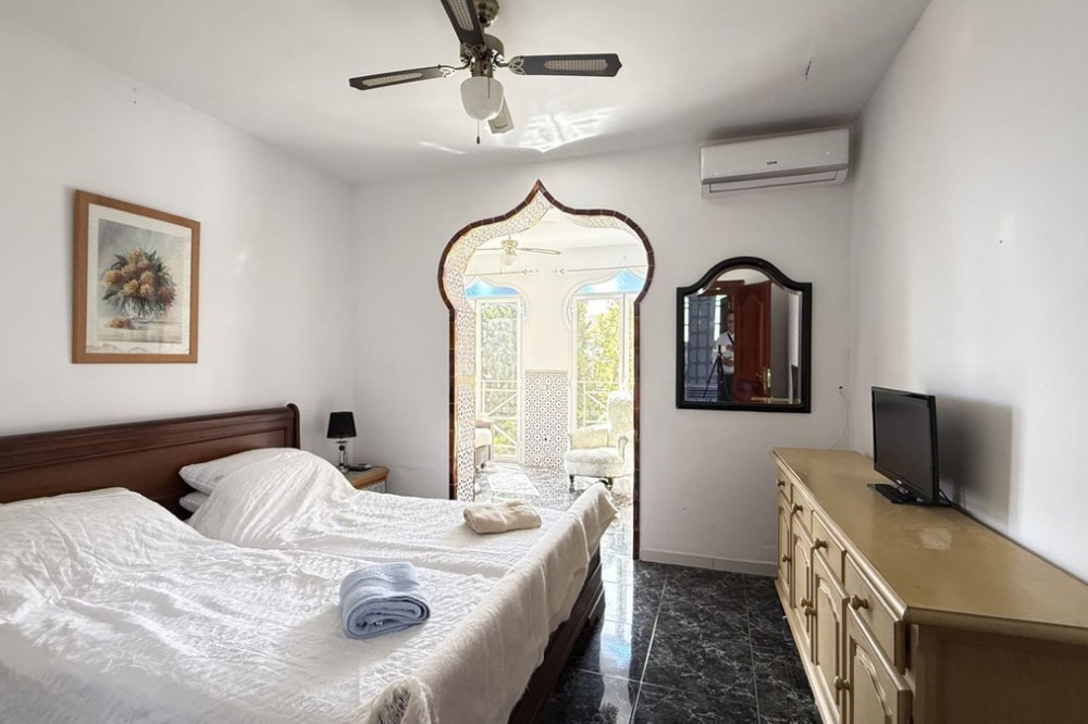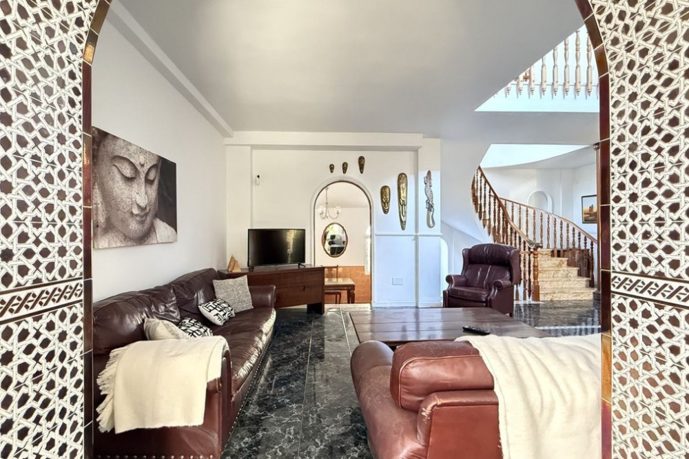 - Unique Moroccan-Style Villa with Charm, Space & Character. A truly rare opportunity to own a one-of-a-kind Moroccan-style villa, beautifully renovated (except the kitchen) with meticulous attention to detail while preserving its authentic charm. Located within walking distance to all amenities, this spacious property offers both timeless elegance and modern comfort. The villa features 5 generous double bedrooms and 4.5 bathrooms, with two of the bedrooms enjoying attached rooms ideal for a home office or study. The top two bedrooms are exceptionally large, perfect as private retreats. There is a private swimming pool, mature fruit trees. Inside, the air-conditioned villa includes a basement entertainment level with a home cinema, pool table, and table tennis area. While the kitchen awaits a personal touch, the rest of the home has been recently renovated to a high standard. The property also includes a private garage and holds a tourist rental license, adding investment potential to its unique lifestyle offering. A truly special home full of personality, space, and style ready to be enjoyed as a private residence or luxury holiday retreat or rentals.