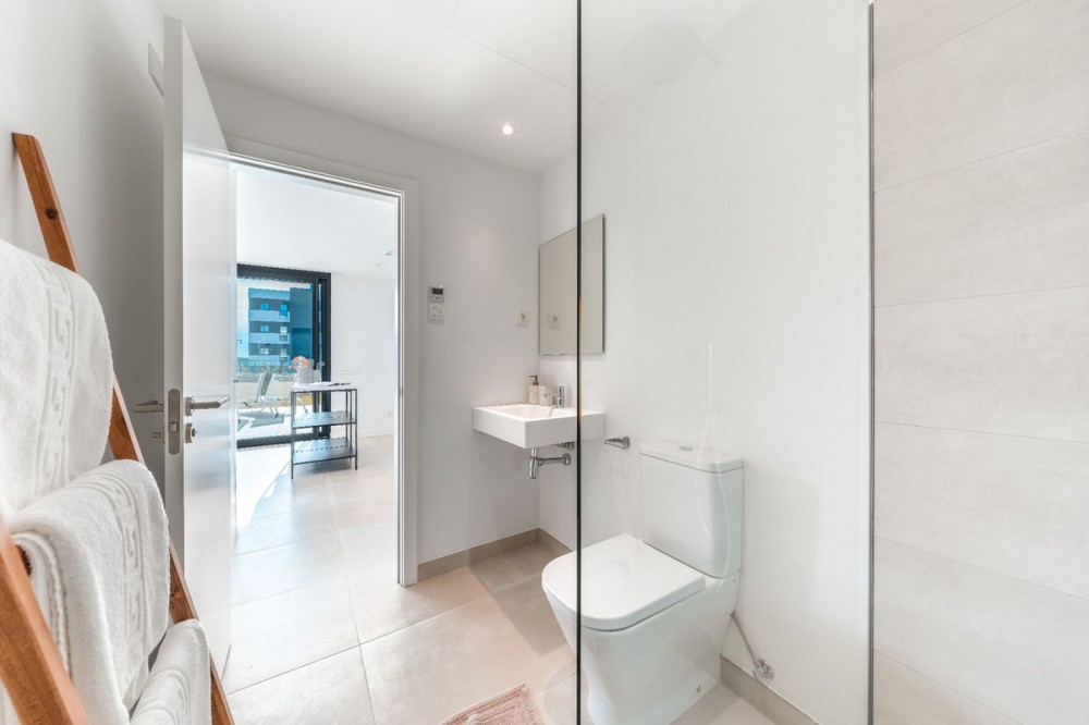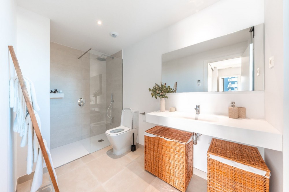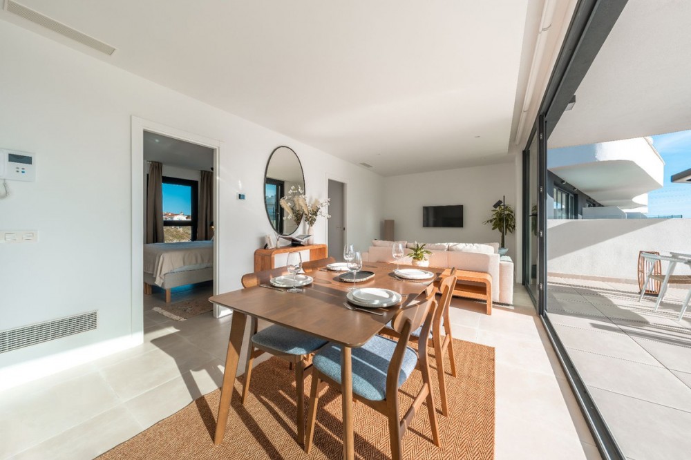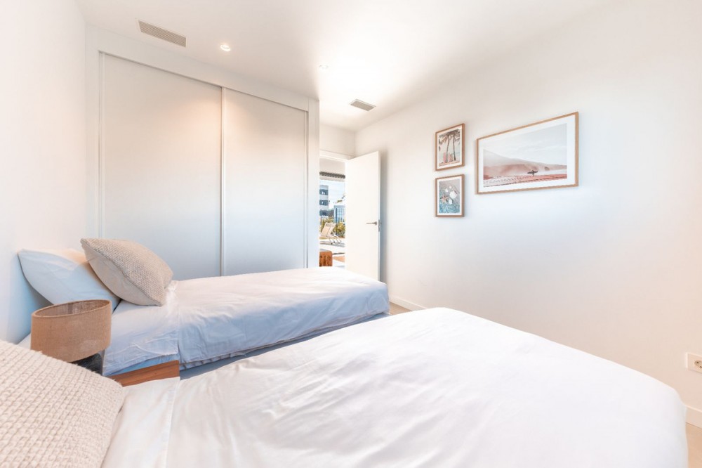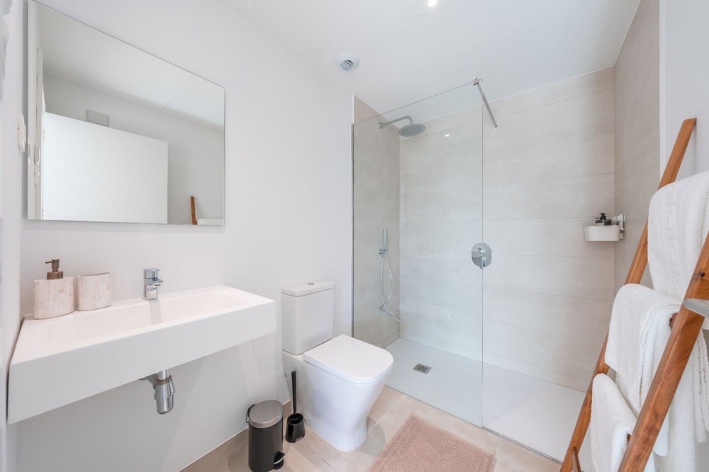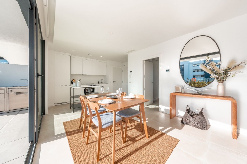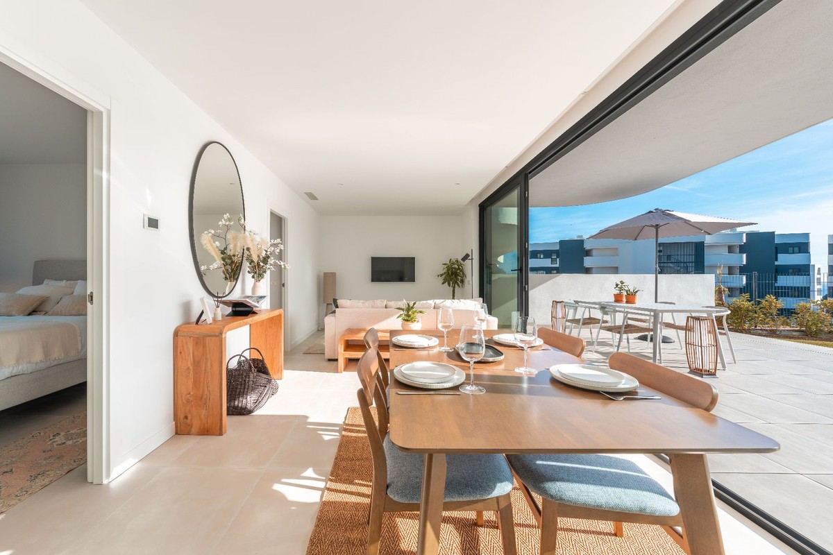 - Welcome to this serene and stylish ground-floor apartment that captures the essence of contemporary Mediterranean living. This beautifully presented two-bedroom, two-bathroom home combines modern design with warm natural tones and abundant light, creating an inviting and relaxing atmosphere from the moment you enter. The open-plan living area connects effortlessly with the spacious west-facing terrace and private garden — together measuring nearly 50 m² — offering the perfect setting for al fresco dining, morning coffee, or relaxing in the sun while overlooking the pool and landscaped gardens. The orientation ensures warm natural light throughout the day and beautiful sunset colors in the evening. Inside, every detail has been thoughtfully designed for comfort and functionality. The fully equipped kitchen includes high-quality appliances such as an oven, fridge-freezer, dishwasher, coffee machine, and more. Both bedrooms are spacious and bright, and the two bathrooms feature sleek finishes and underfloor heating for added comfort year-round. The property offers a total built area of 74.55 m², complemented by a private garden of 45.18 m². Additional features include two private underground parking spaces, a storage room of 6.87 m², air conditioning, high-speed Wi-Fi, and a Smart TV. Located in a secure and well-maintained residential complex with multiple swimming pools and beautifully landscaped common areas, the apartment provides the ideal balance between privacy, comfort, and community living. Its location is highly convenient — just five minutes from the beach, and within easy reach of Málaga Airport, Fuengirola, and Marbella — offering quick access to all major amenities along the coast. The property holds a valid short-term rental license and has been rented out very successfully over the past two years, combining excellent investment potential with the ease of a turn-key holiday home. Offered for €479,000 (furniture optional for an additional €20,000 — BBQ excluded). A refined home that blends design, sunlight, and tranquility — the perfect place to enjoy life under the southern sun.